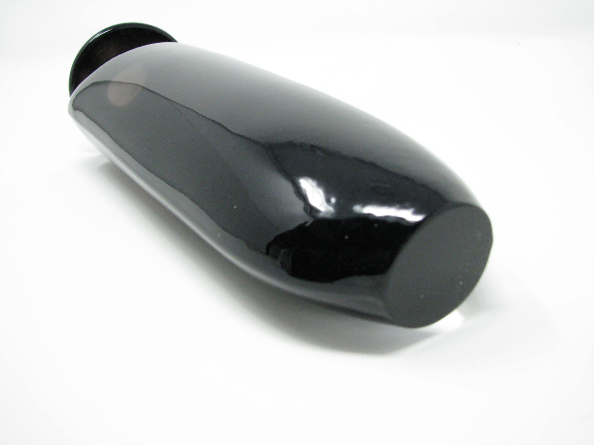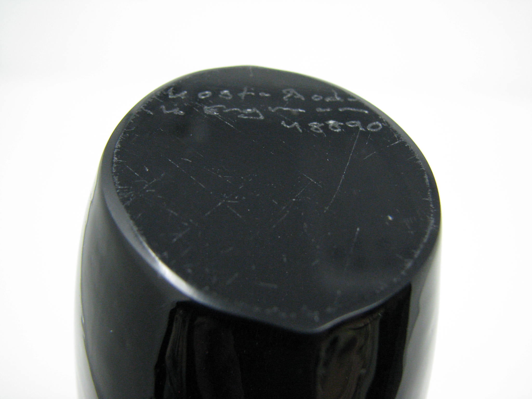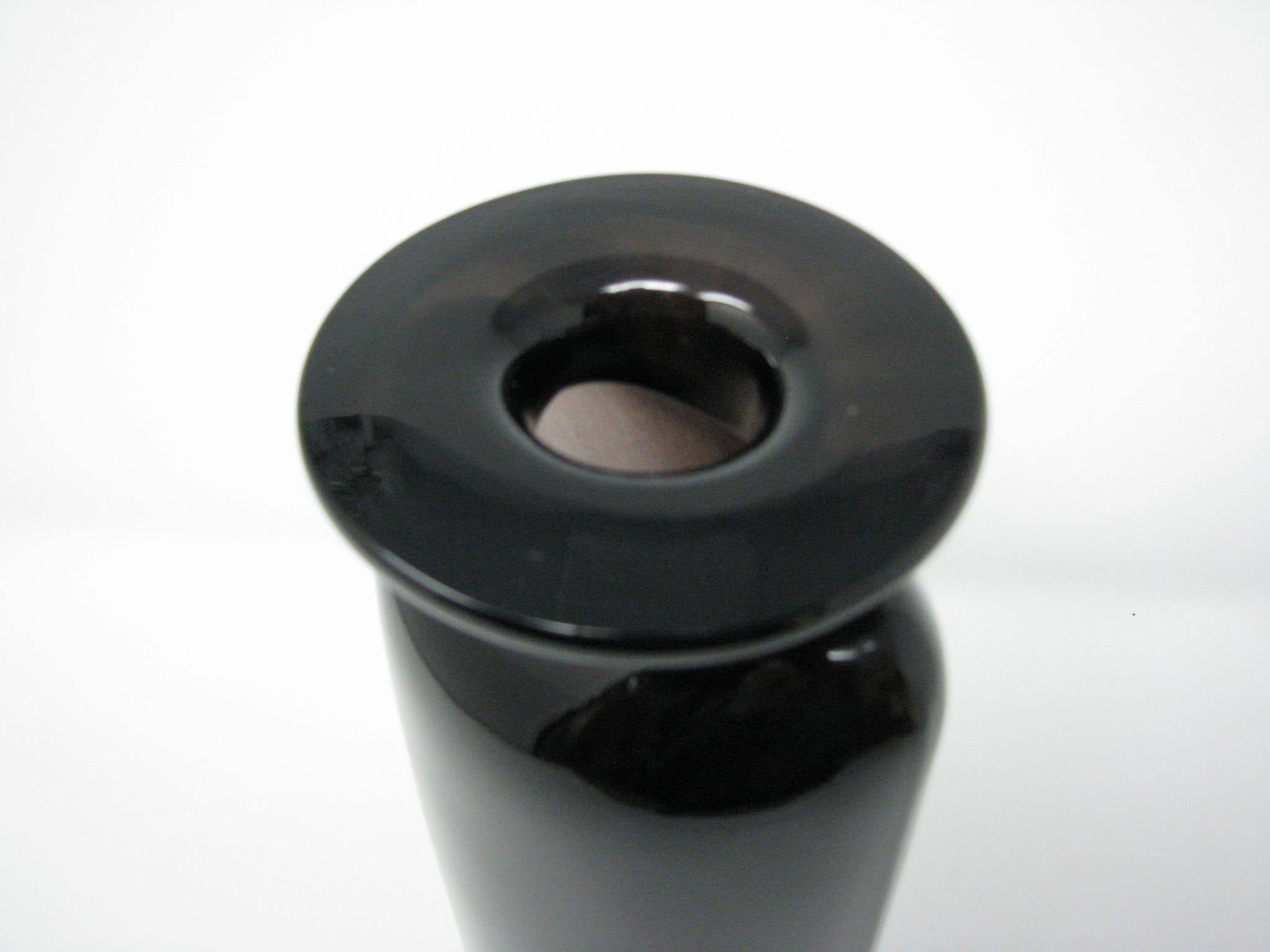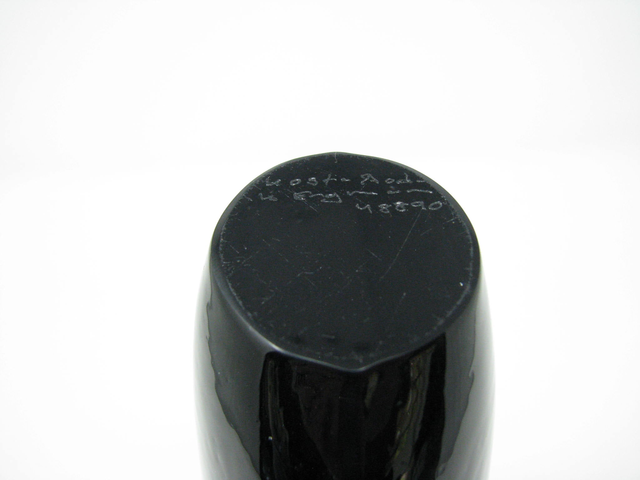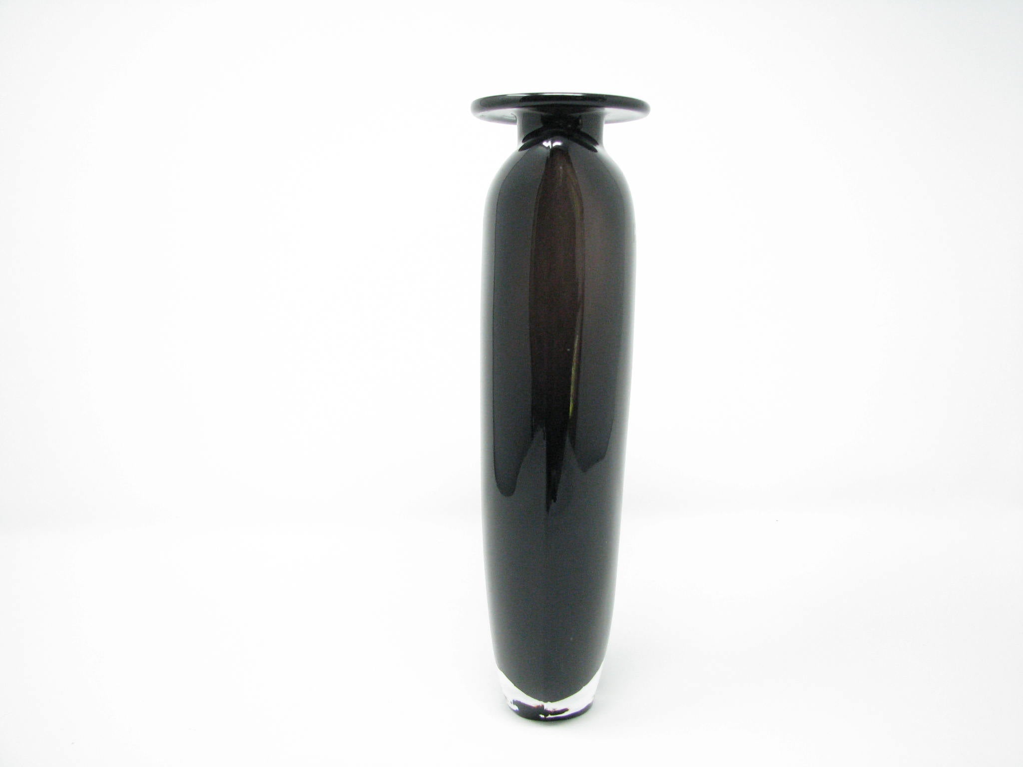 Vintage tall shoulder vase in dark amethyst designed by Kjell Engman for Kosta Boda, Sweden. Original Kosta Boda sticker, signed on bottom by artist.