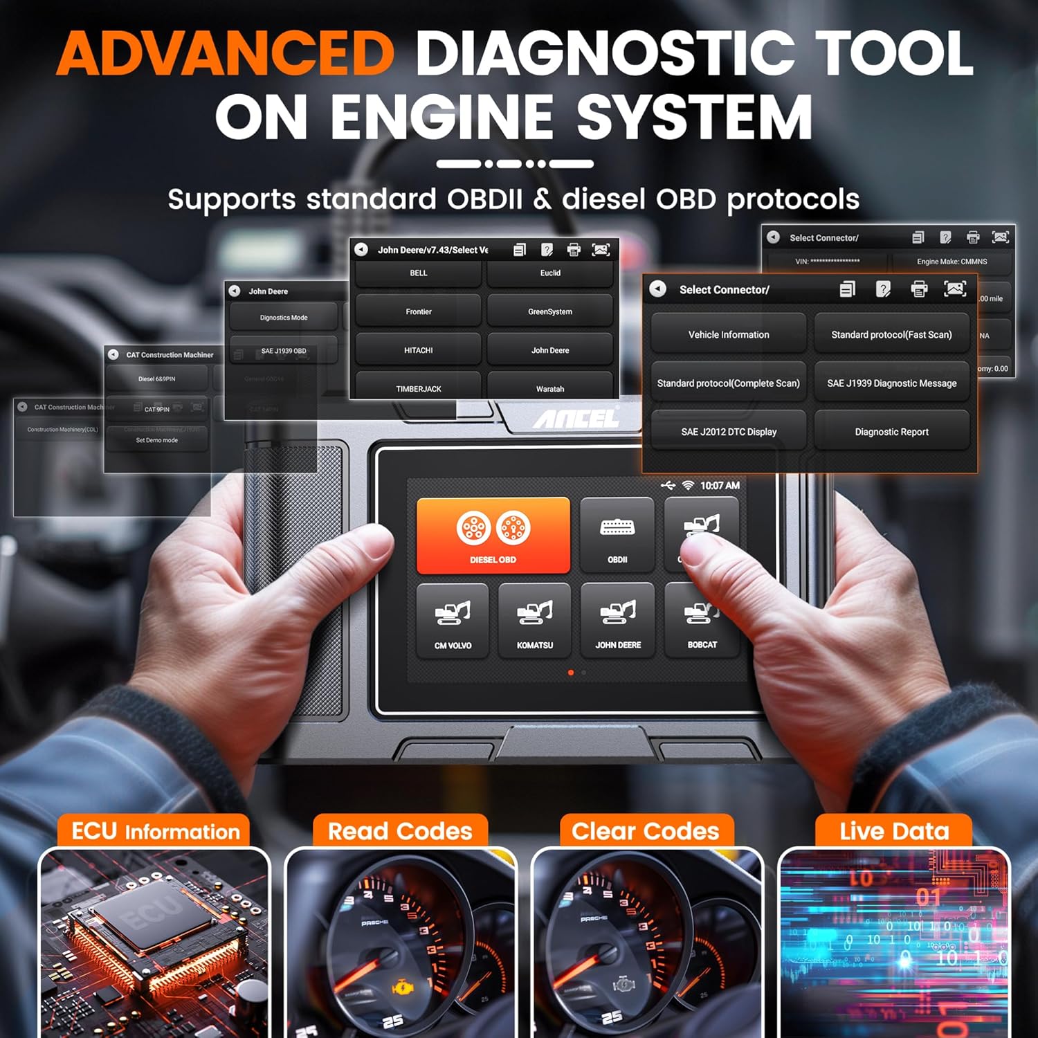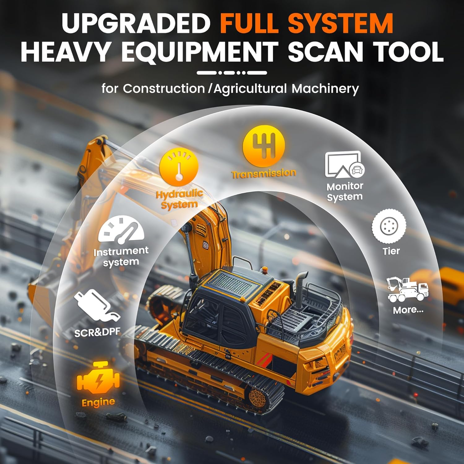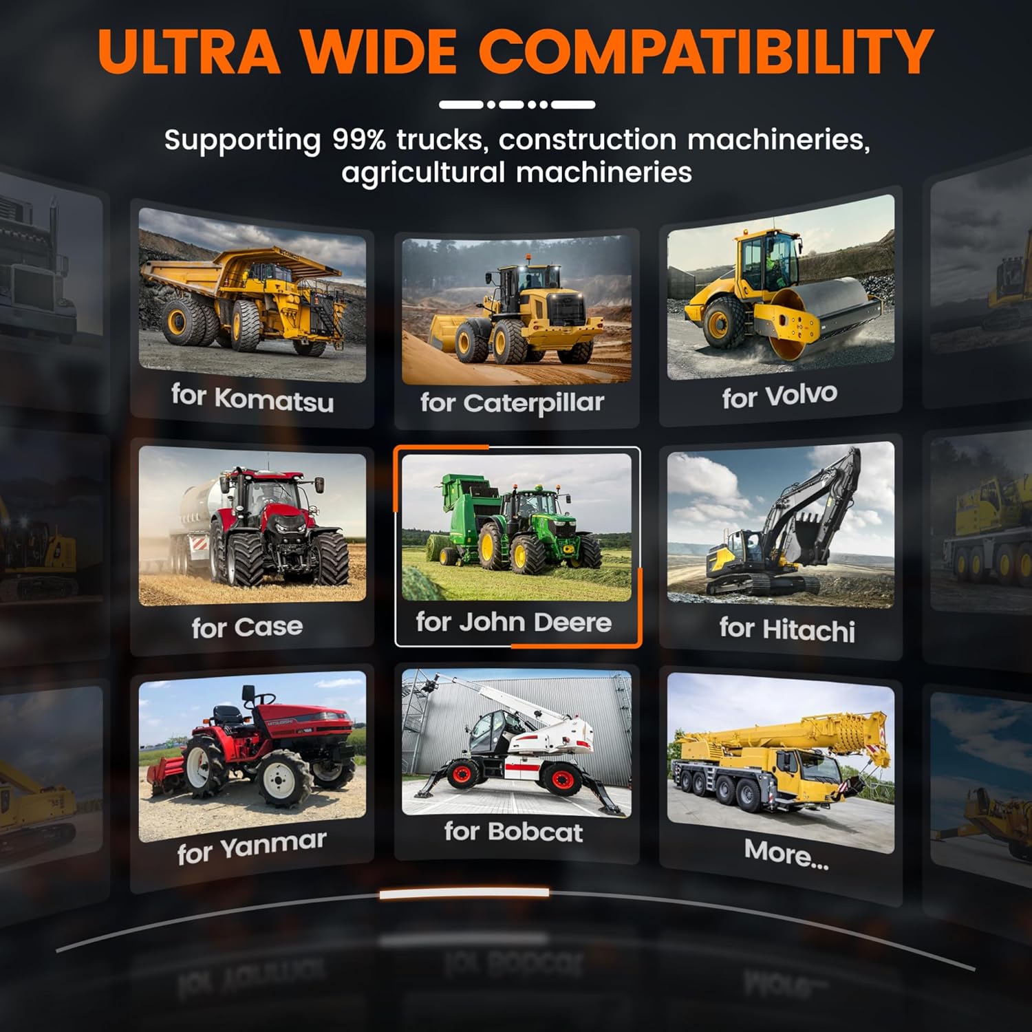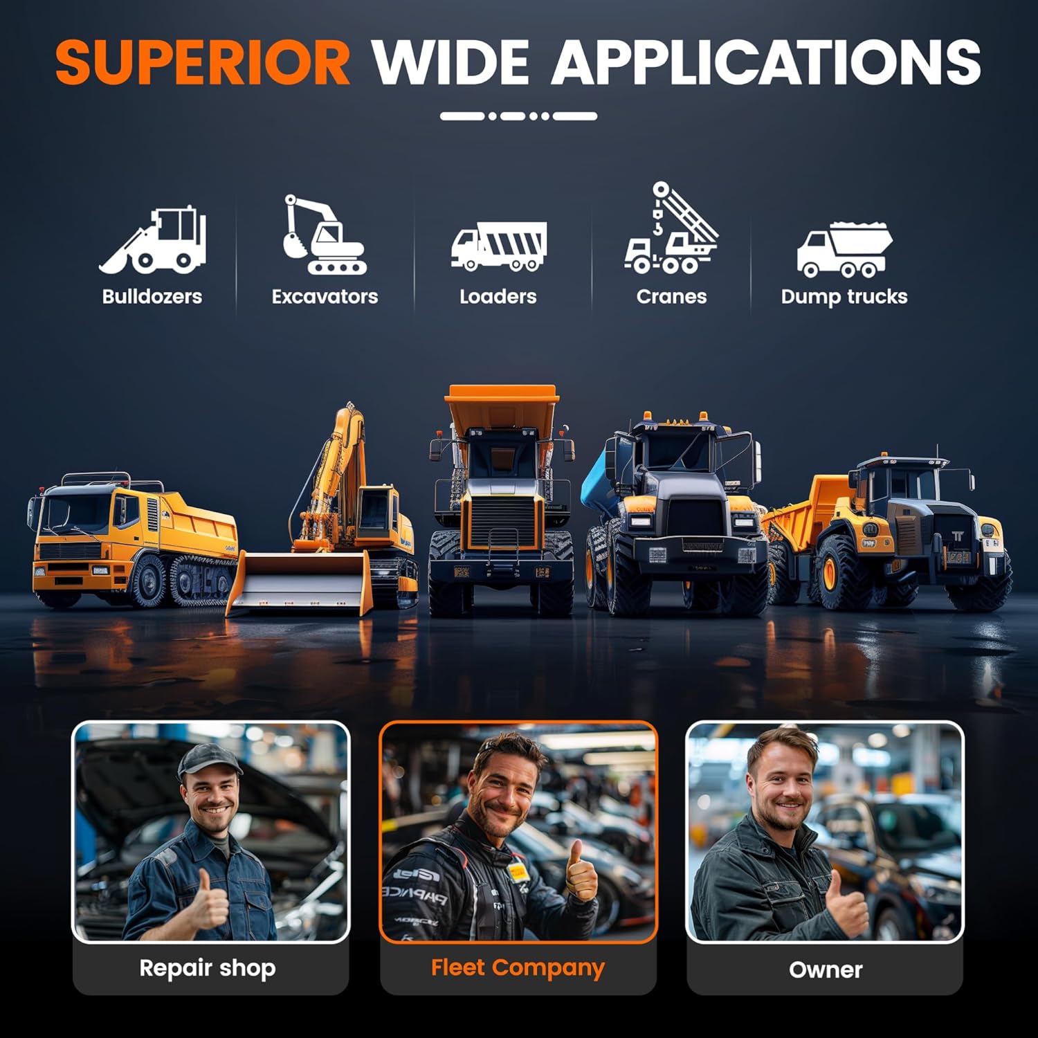 【Ultra Wide Compatibility with Construction Machinery】HD3600 heavy duty truck scanner is specially designed for the North American construction machinery market, fit for Caterpillar, Komatsu, John Deere, Volvo, Hitachi, Bobcat, Yanmar and Case. This diesel code reader handles standard and manufacturer-specific diesel OBD protocols like Caterpillar CDL. With extensive real-world testing, the HD3600 ensures strong compatibility and reliability, making it the ideal choice for 99% construction vehicles