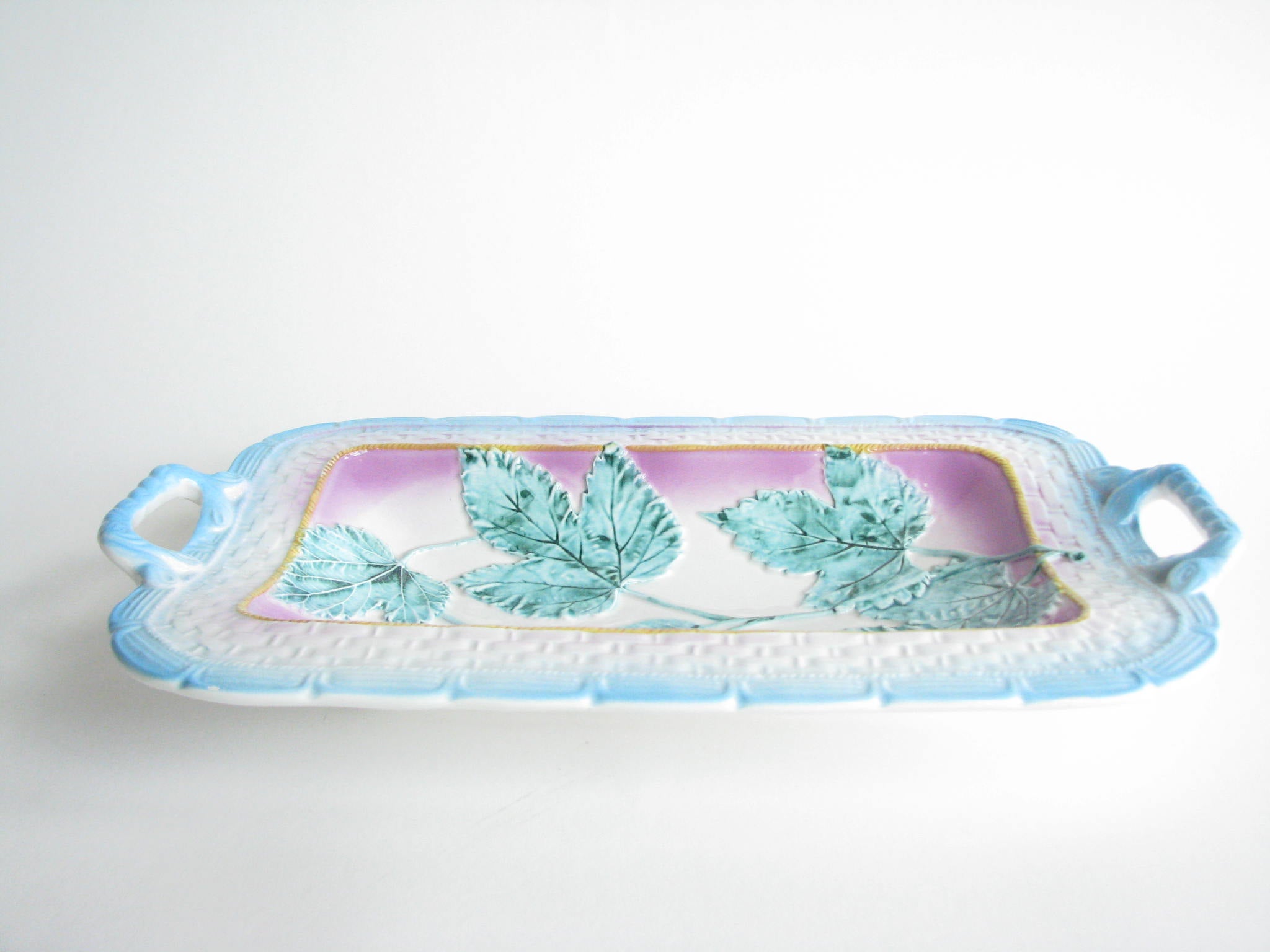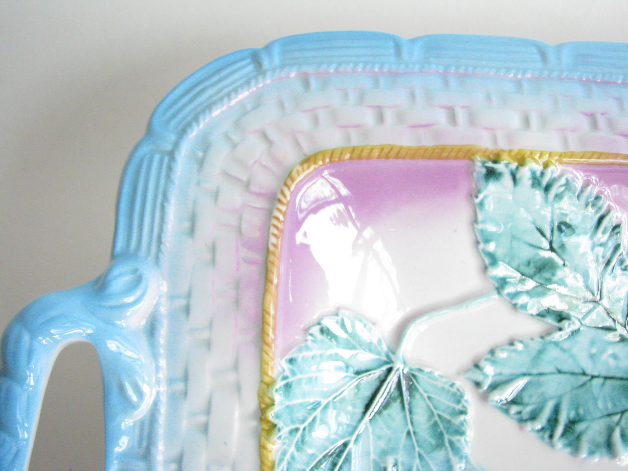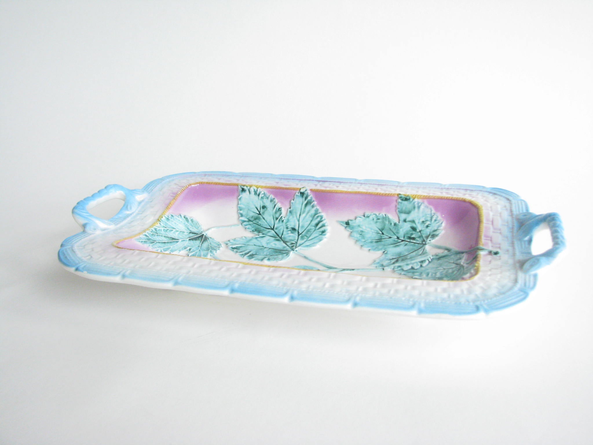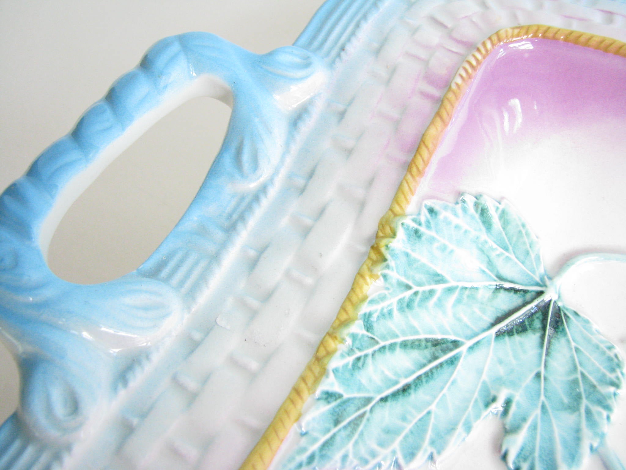 Vintage Ethan Allen Italian majolica / ceramic serving dish or platter with stunning colors and large leaf design.