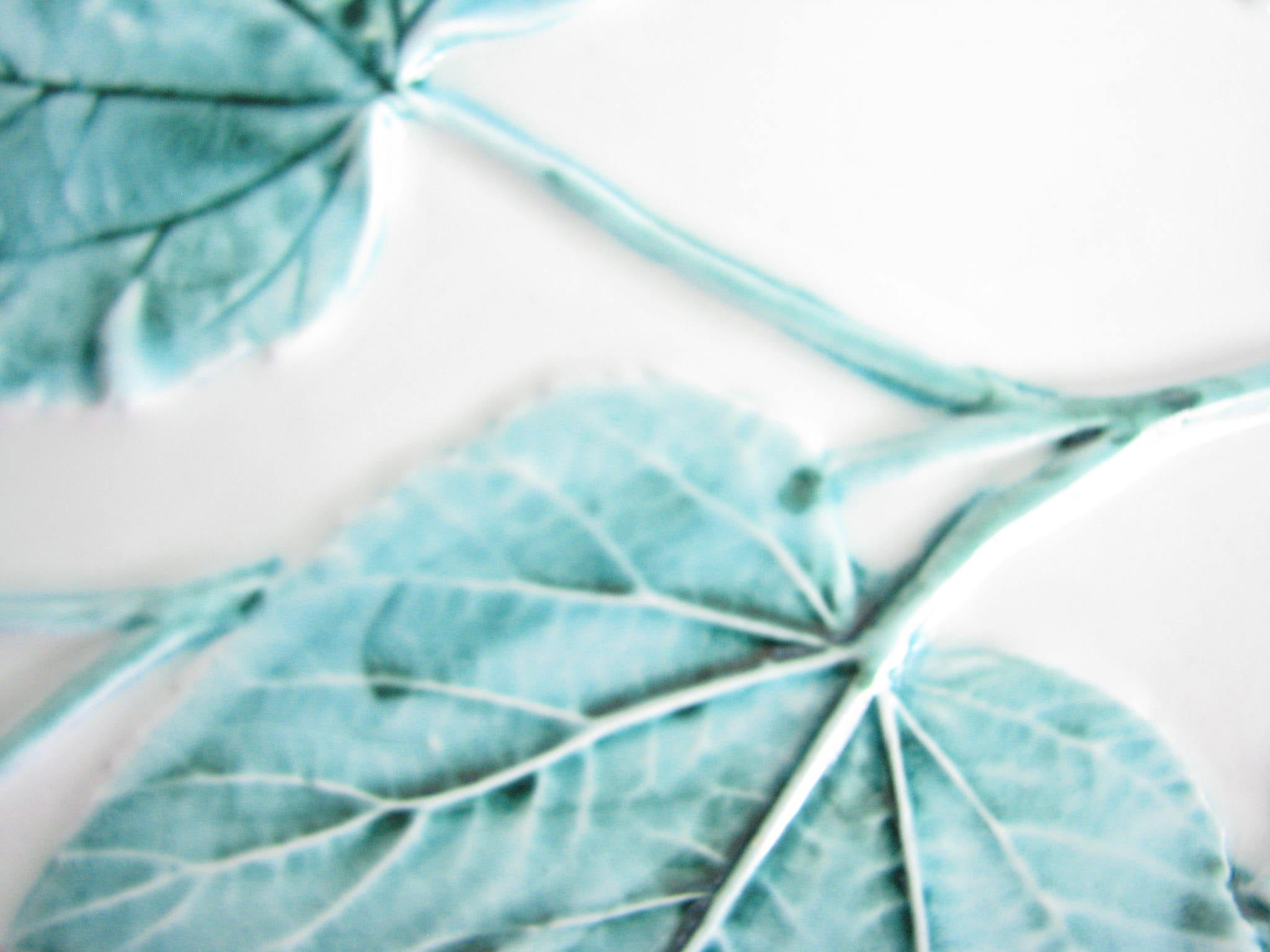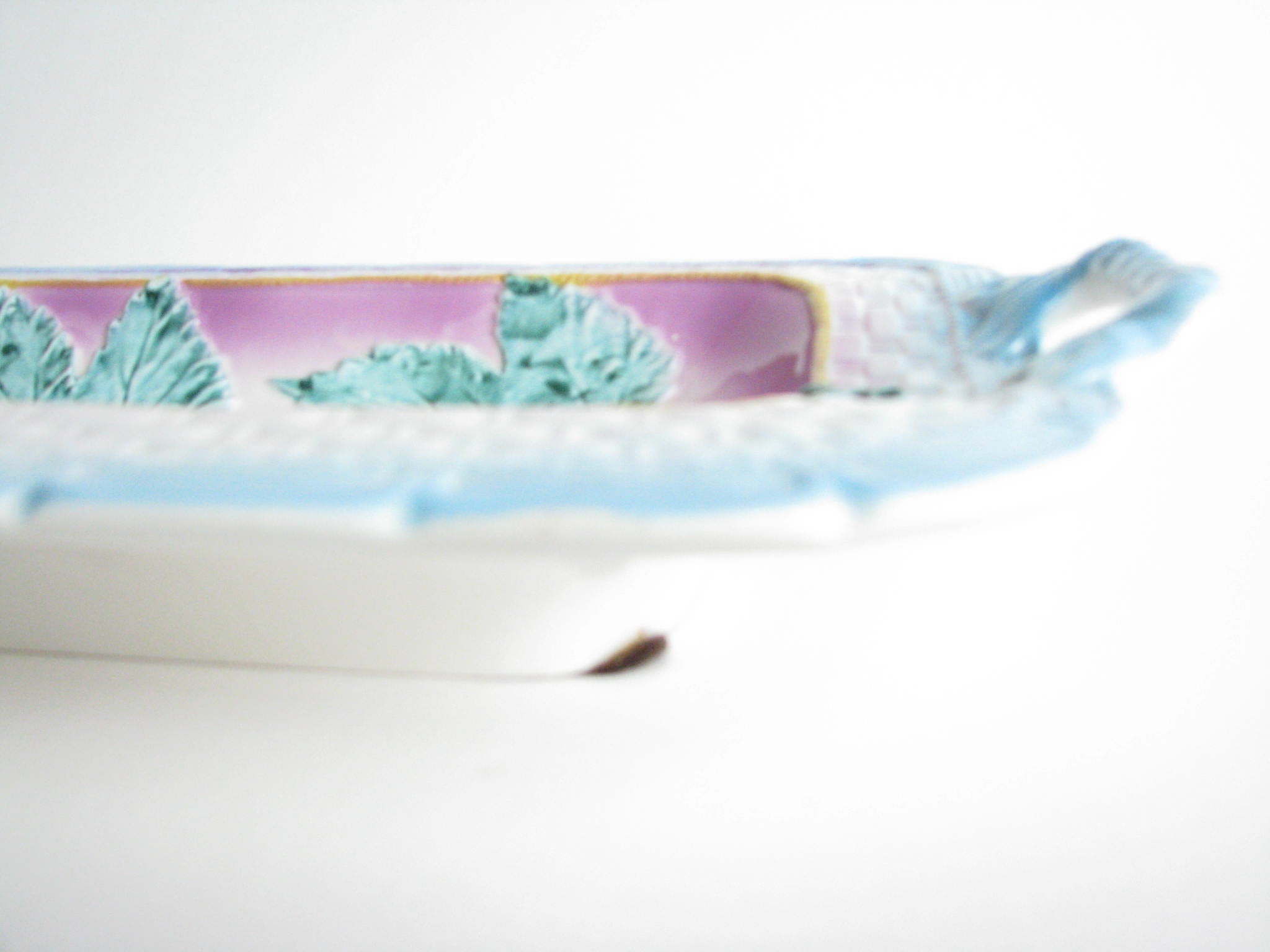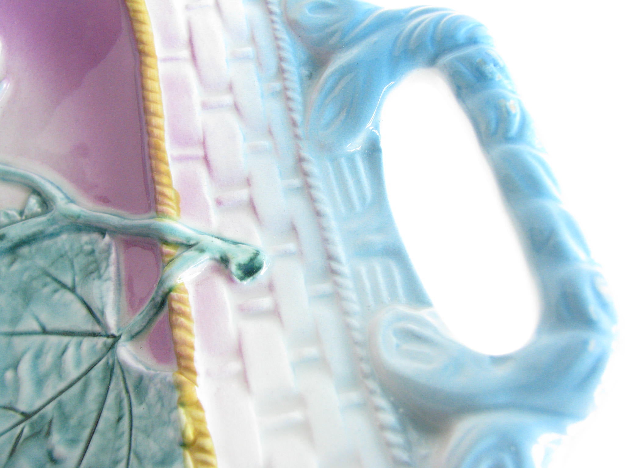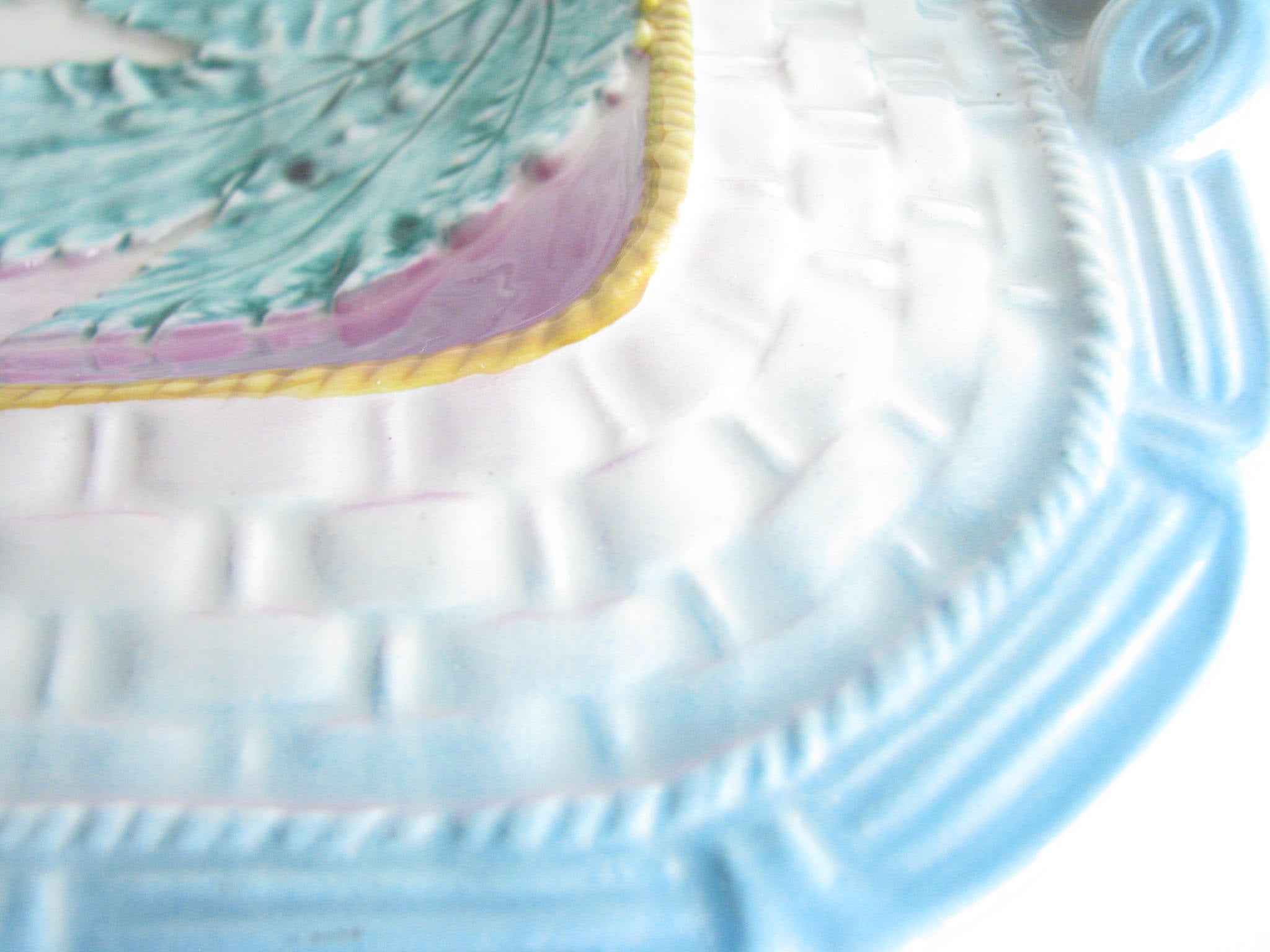 Vintage Ethan Allen Italian majolica / ceramic serving dish or platter with stunning colors and large leaf design.