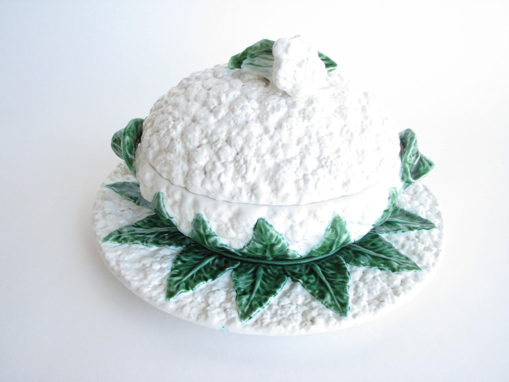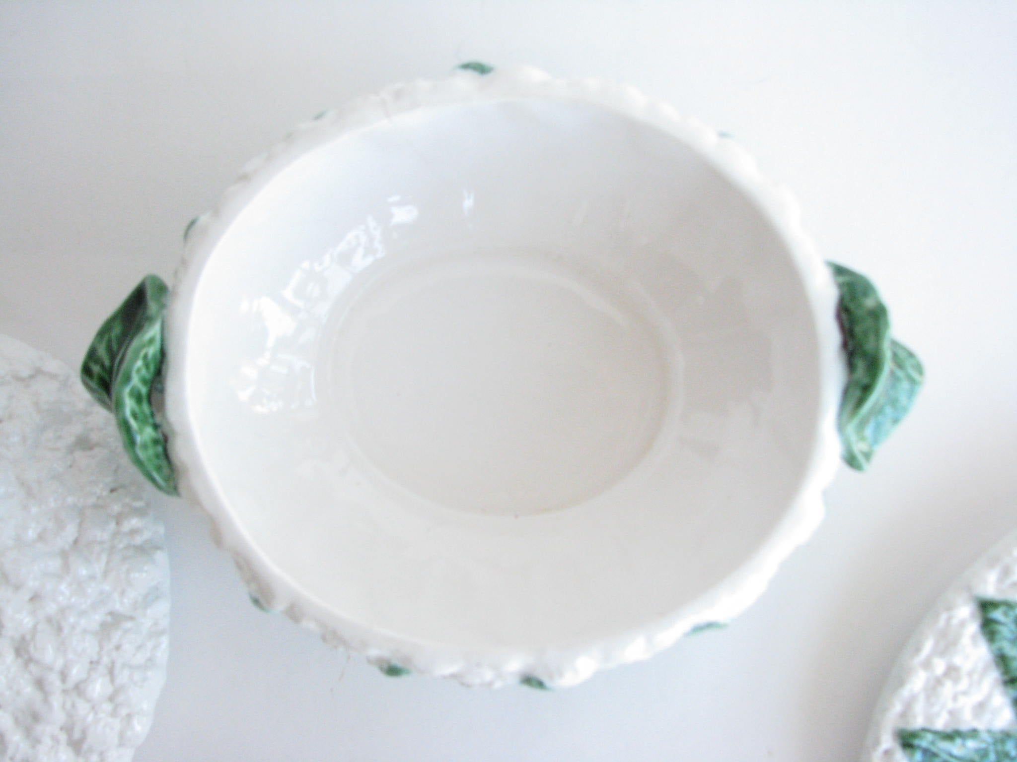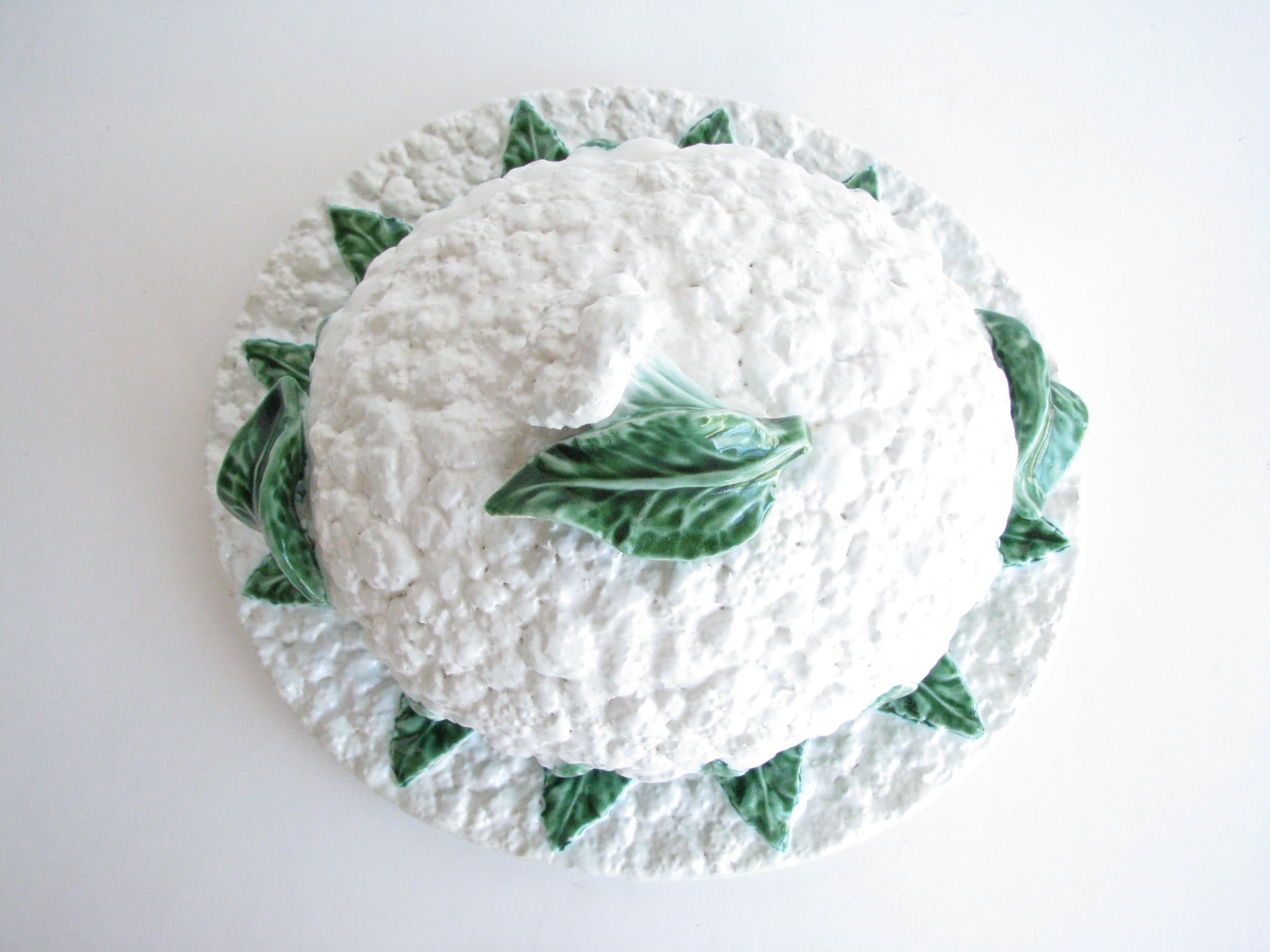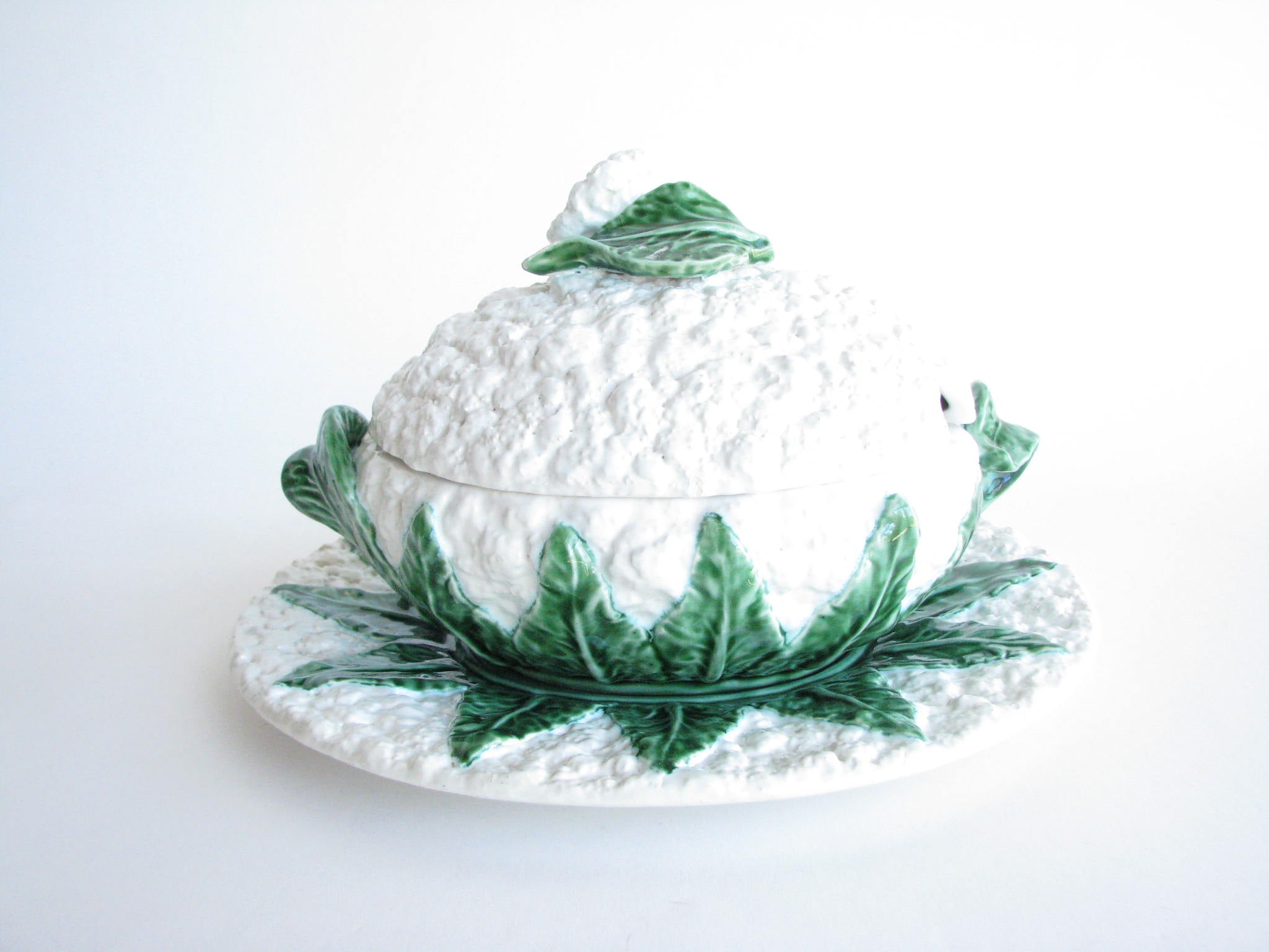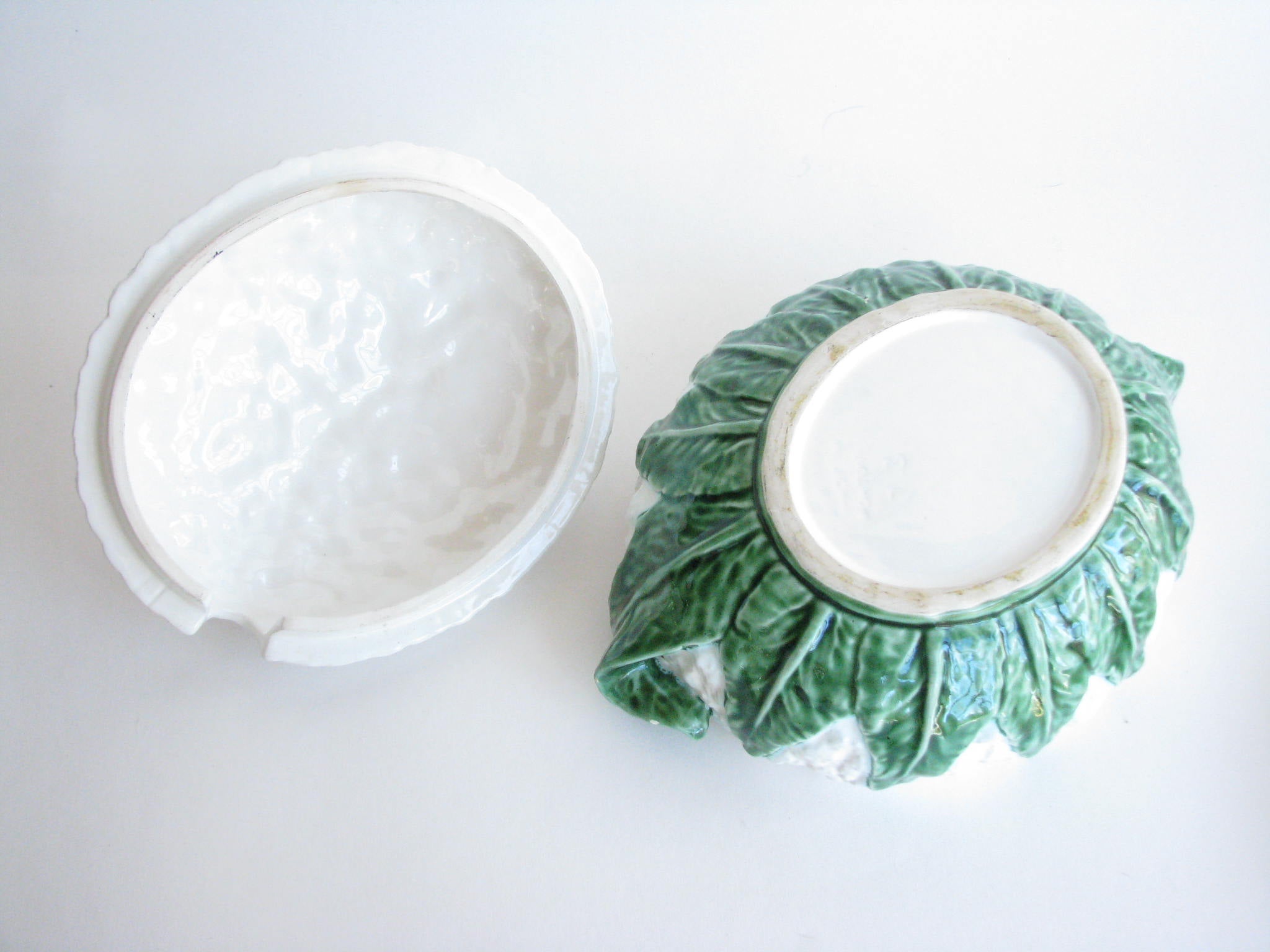 Vintage faience / majolica cauliflower shaped lidded soup tureen or serving dish made in Portugal.
