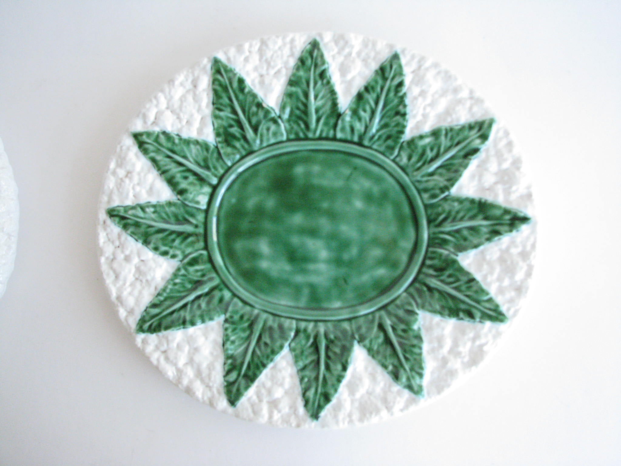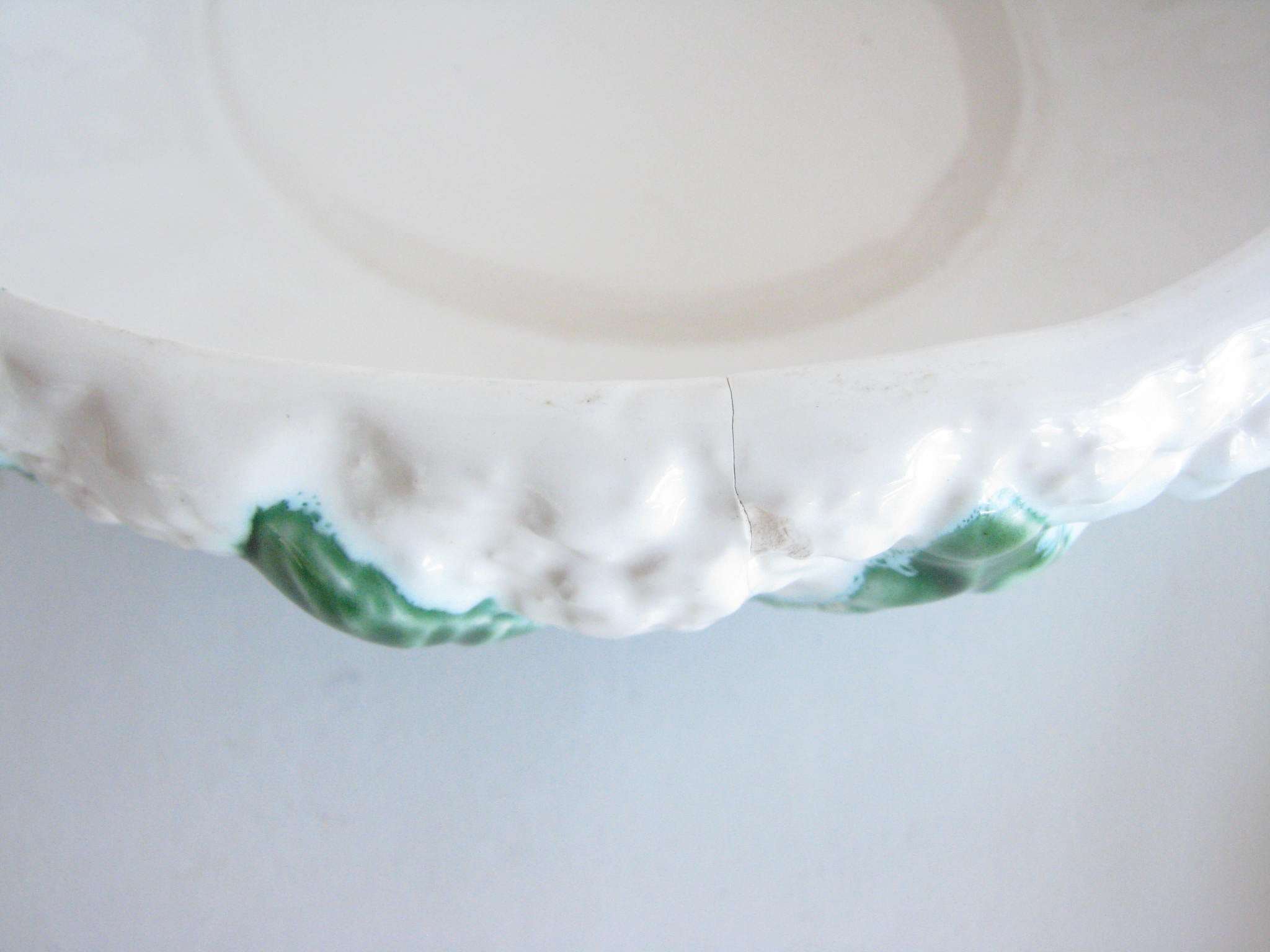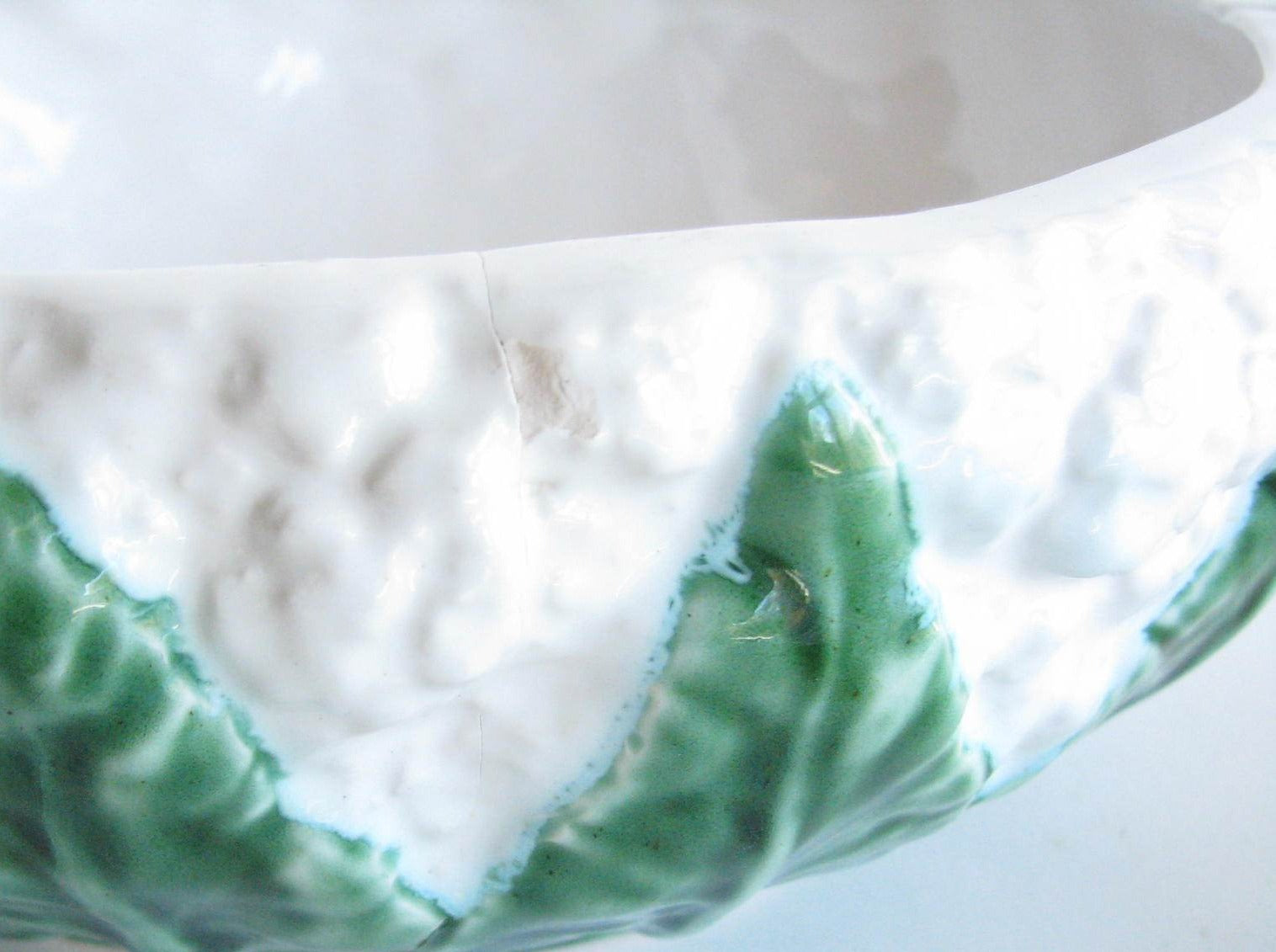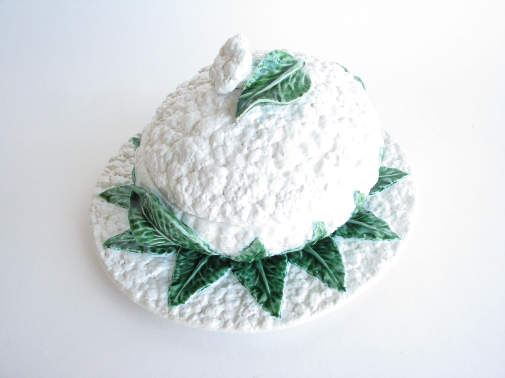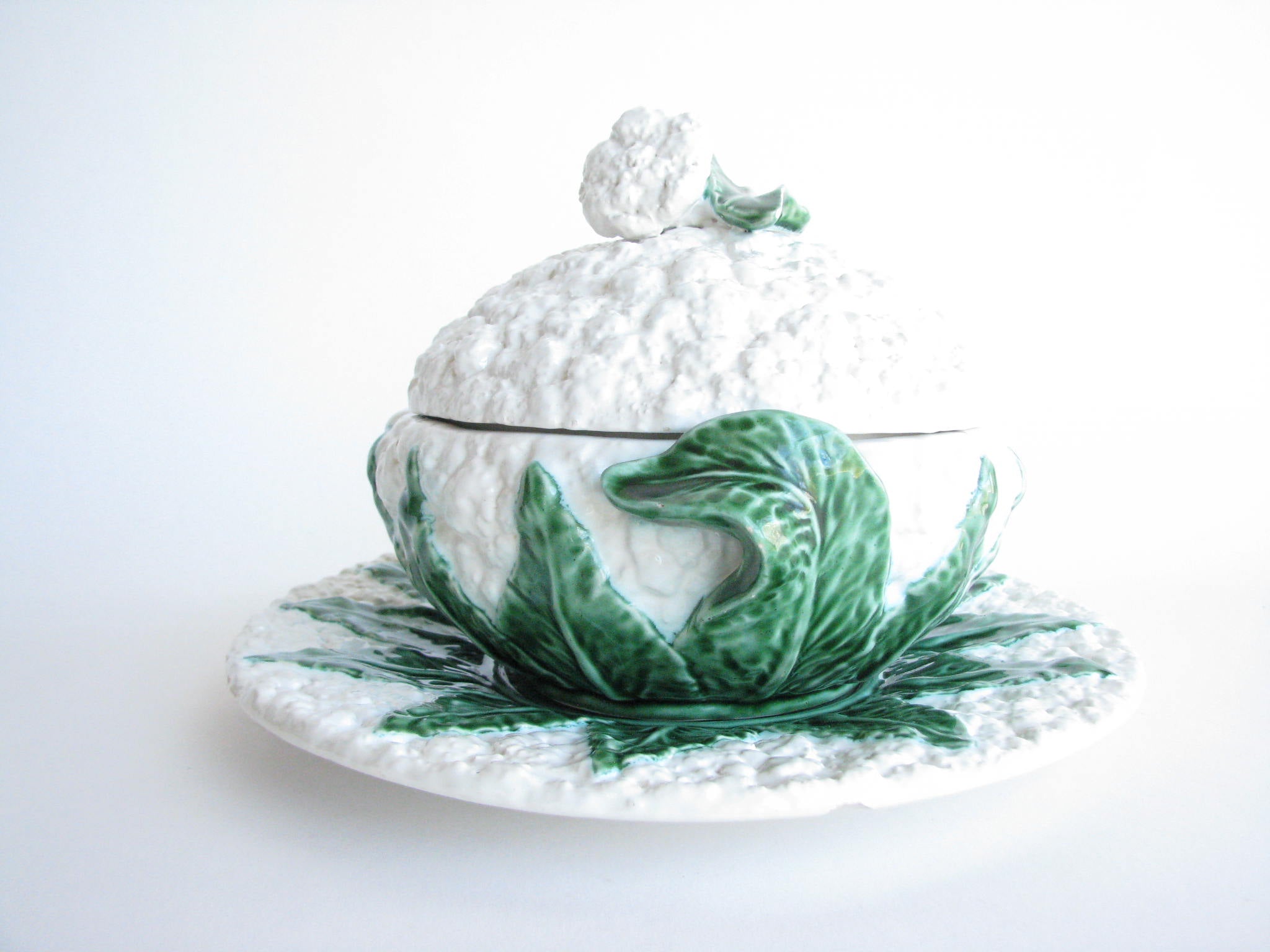 Vintage faience / majolica cauliflower shaped lidded soup tureen or serving dish made in Portugal.