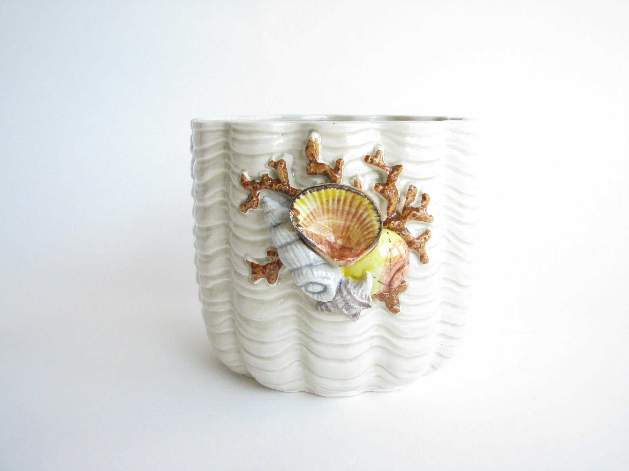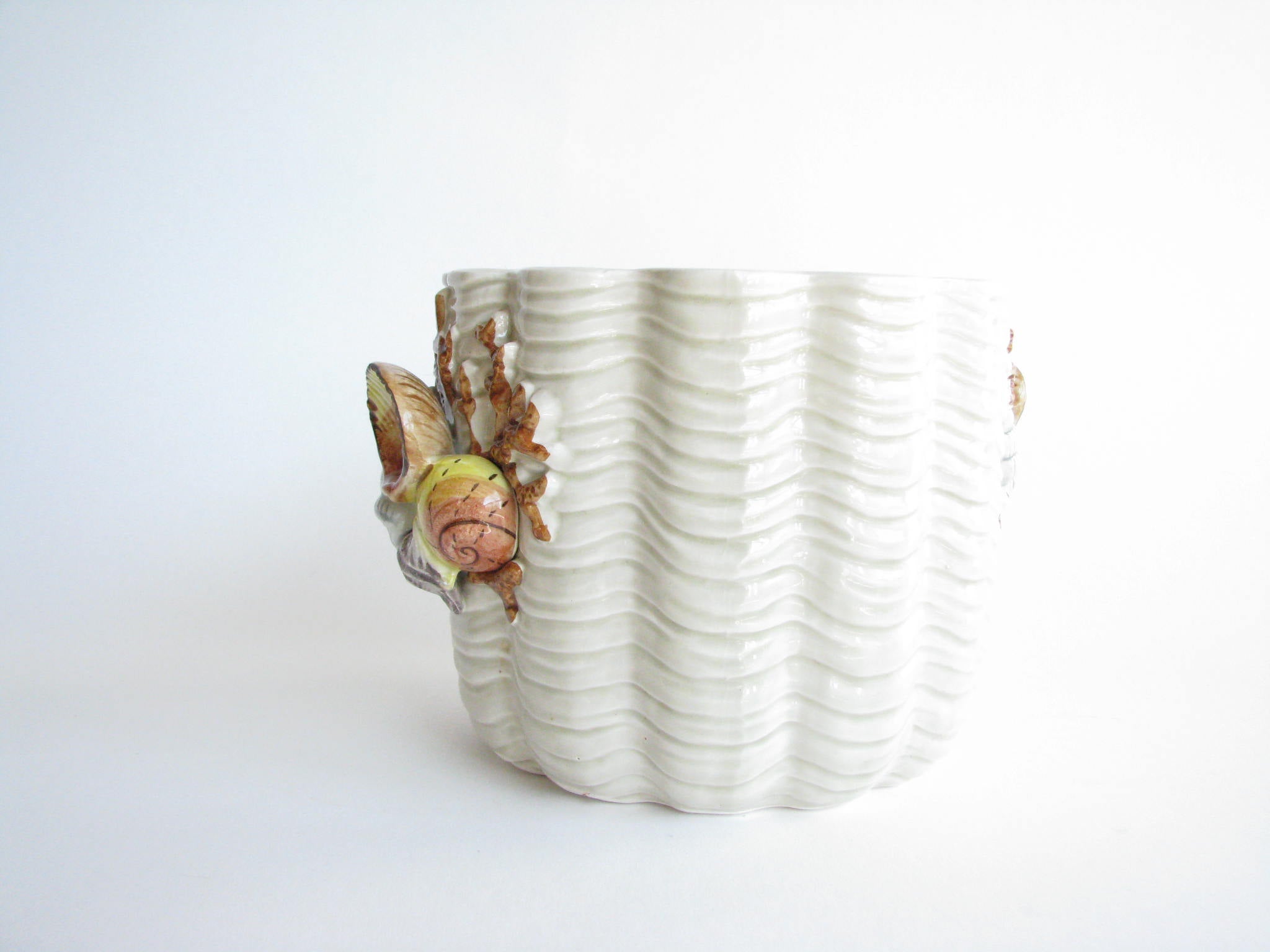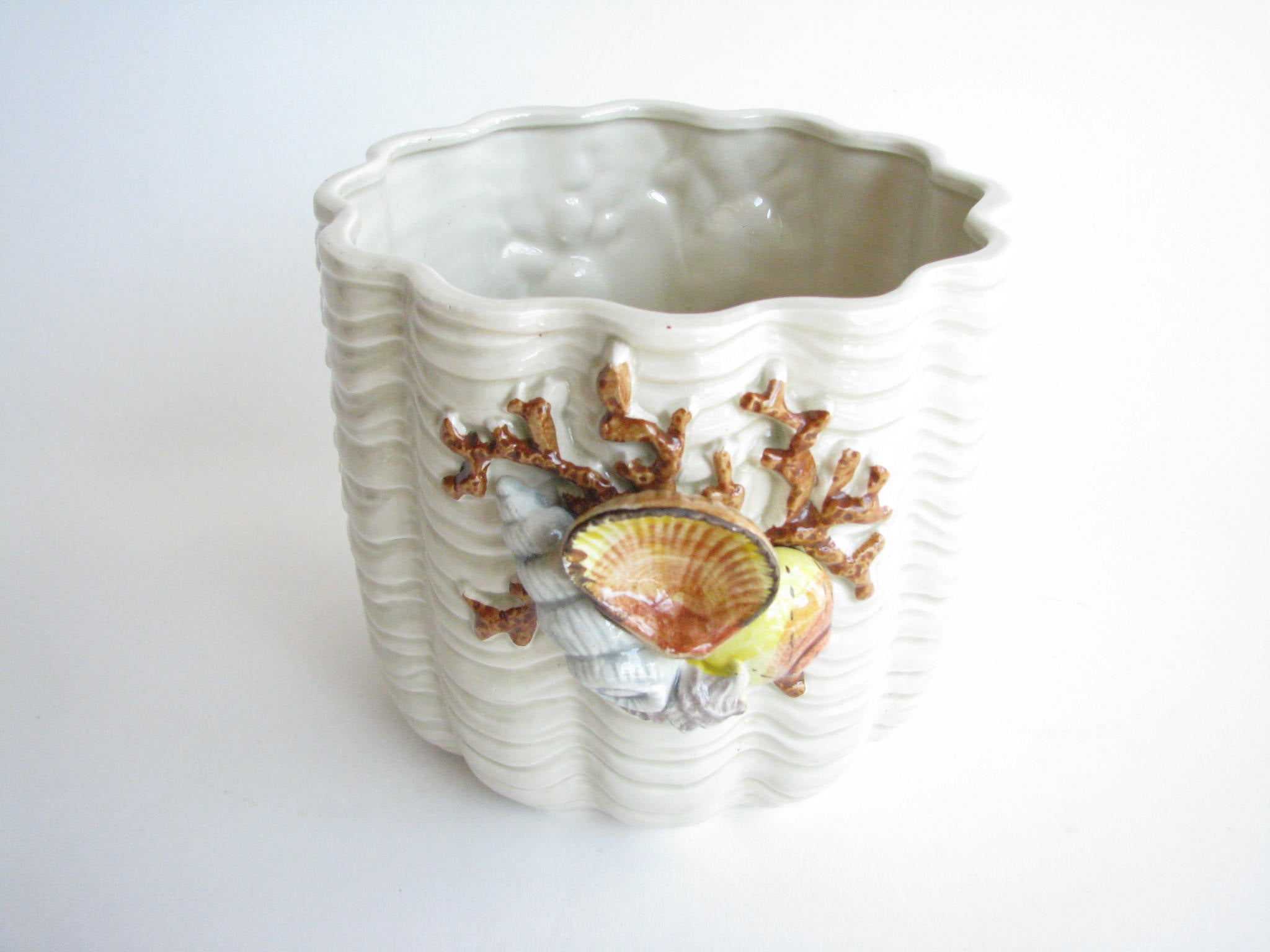 Beautiful vintage Fitz and Floyd ceramic planter with scalloped edge and shell design. Marked on underside; made in Japan.