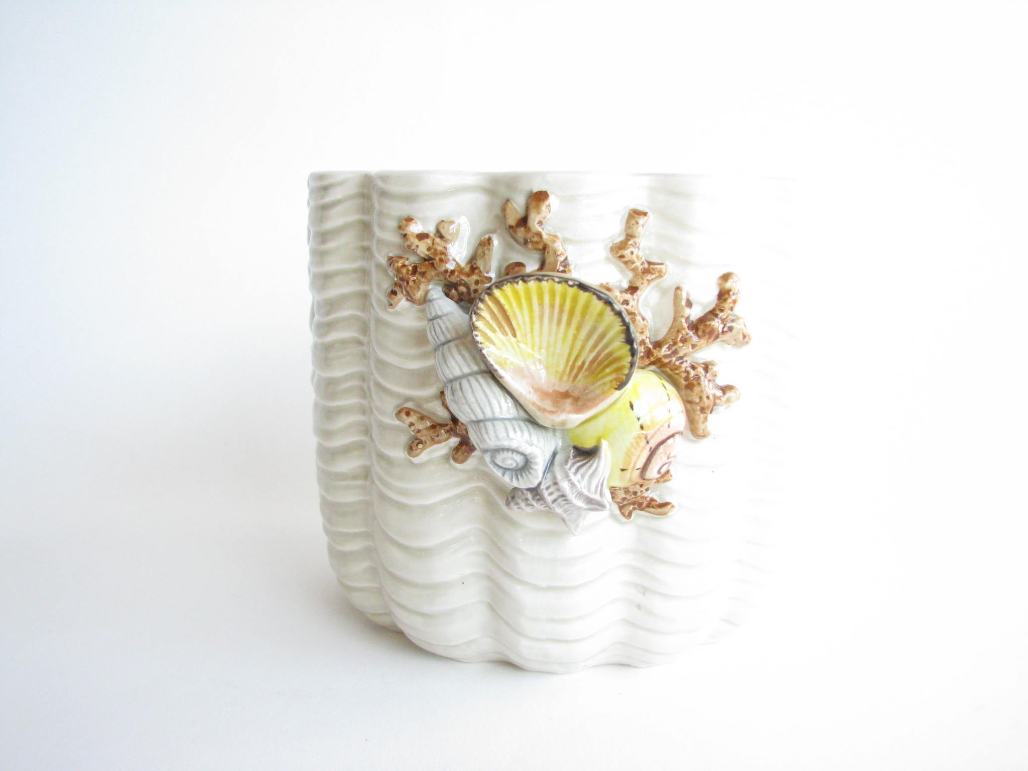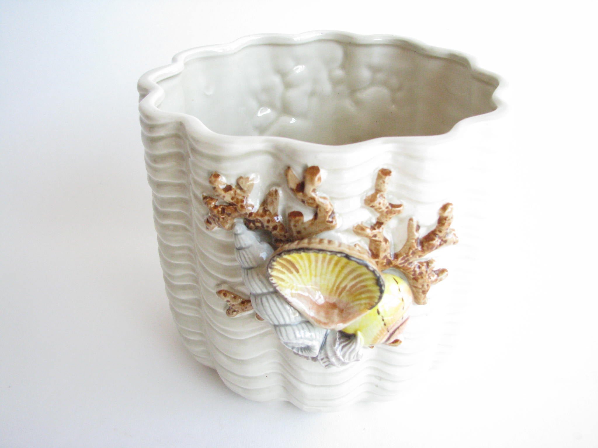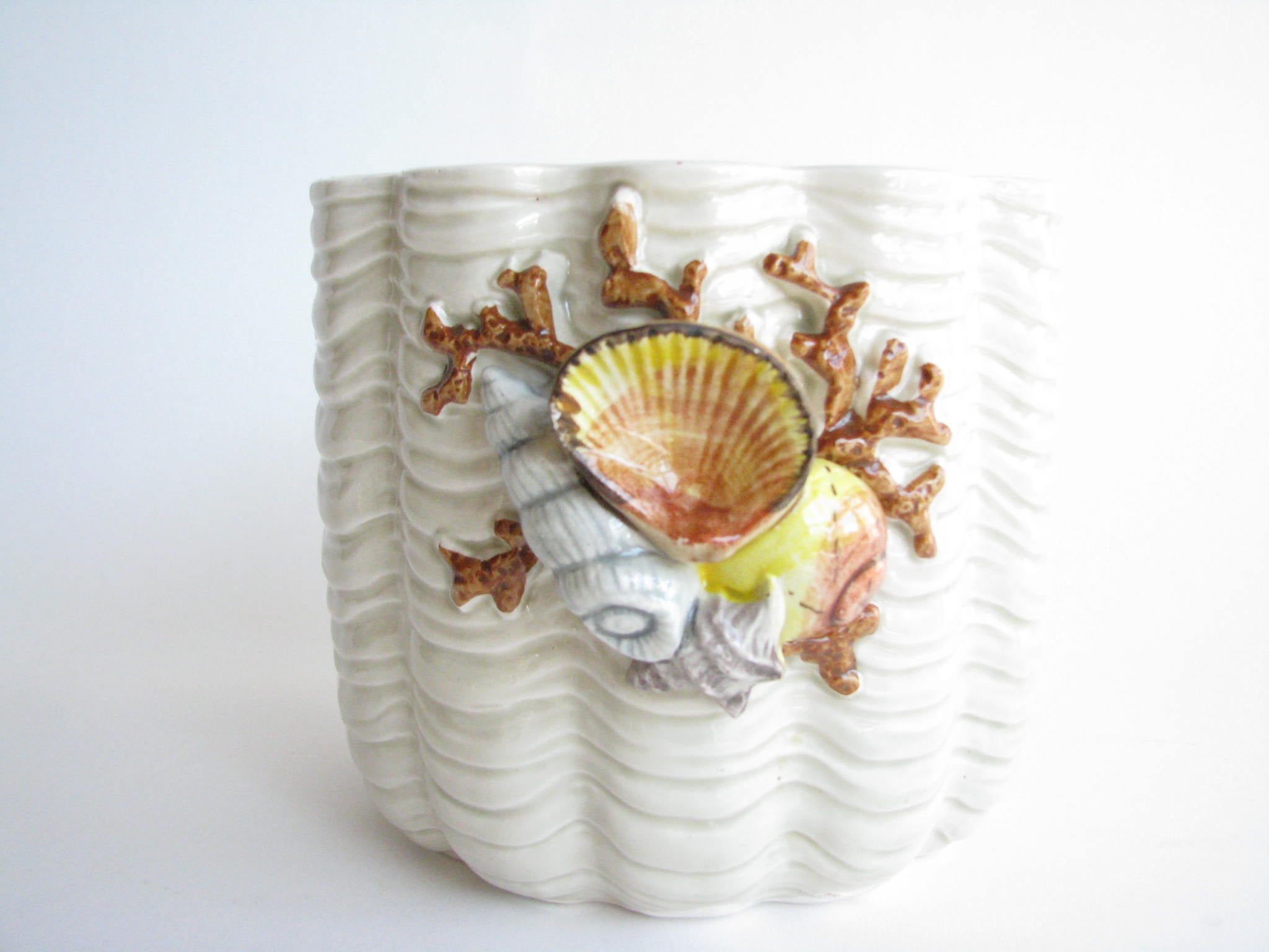 Beautiful vintage Fitz and Floyd ceramic planter with scalloped edge and shell design. Marked on underside; made in Japan.