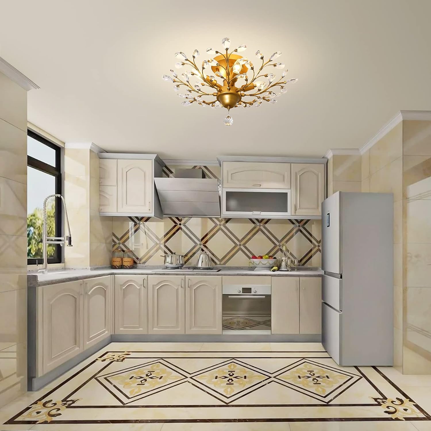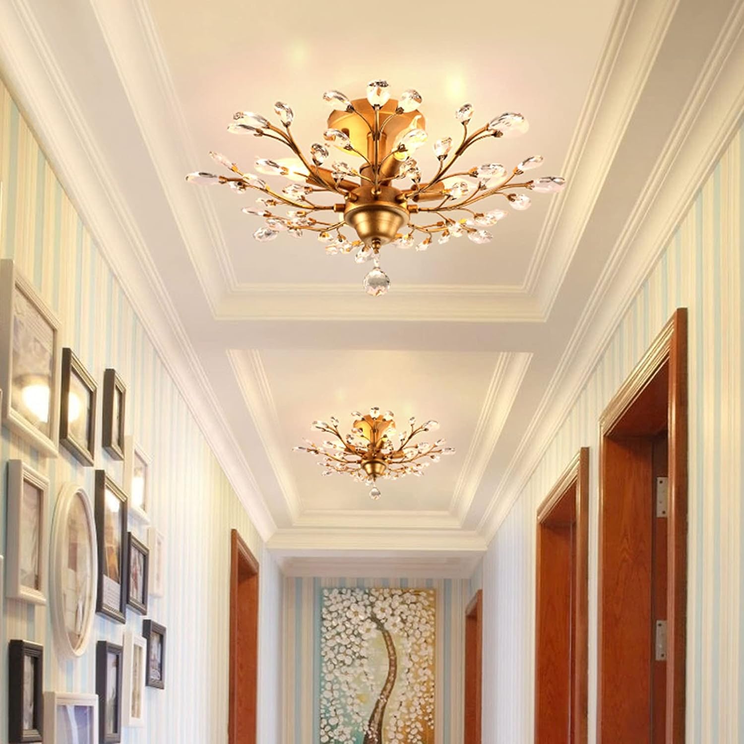 ▶WIDELY USE: Crystal ceiling light has 2 colors for optional,Gold show elegant, black add retro feeling, ideal for Aisle, Hallway, Bedroom, Living Room, Dining Room, Kitchen, Bar, Hotel, Balcony, Stairwells children’s room pass way,kids room,or small space etc.it will be eye catching for your well-appointed space no matter where you use it.