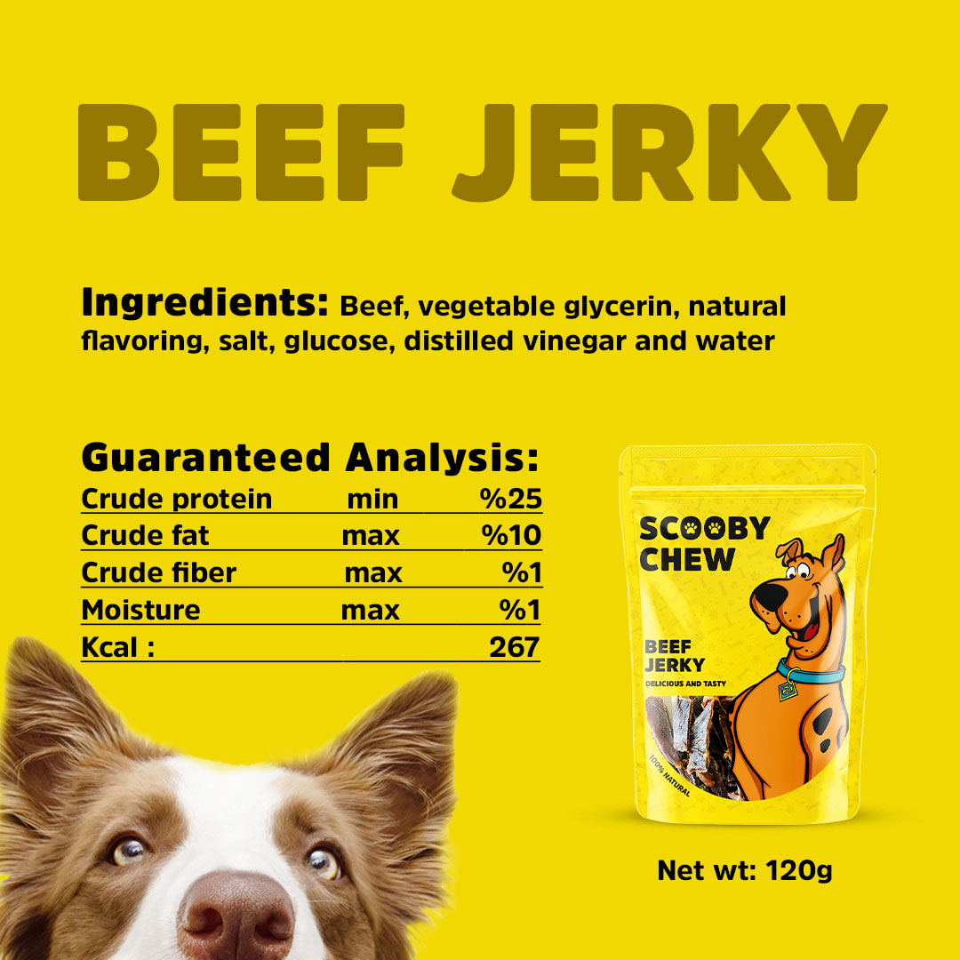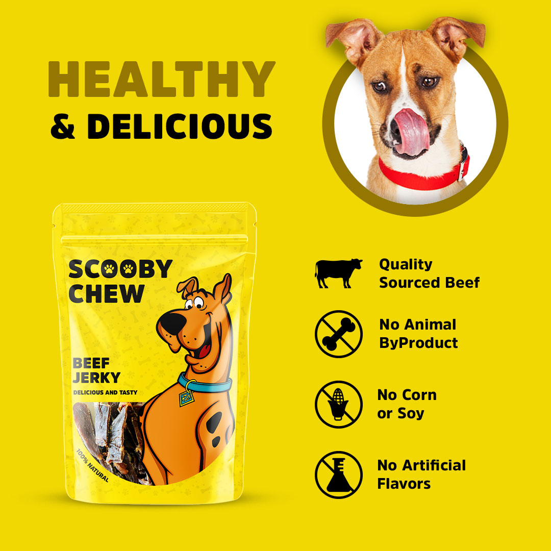 The Scooby Chew beef jerky flavor is made with all-natural ingredients.