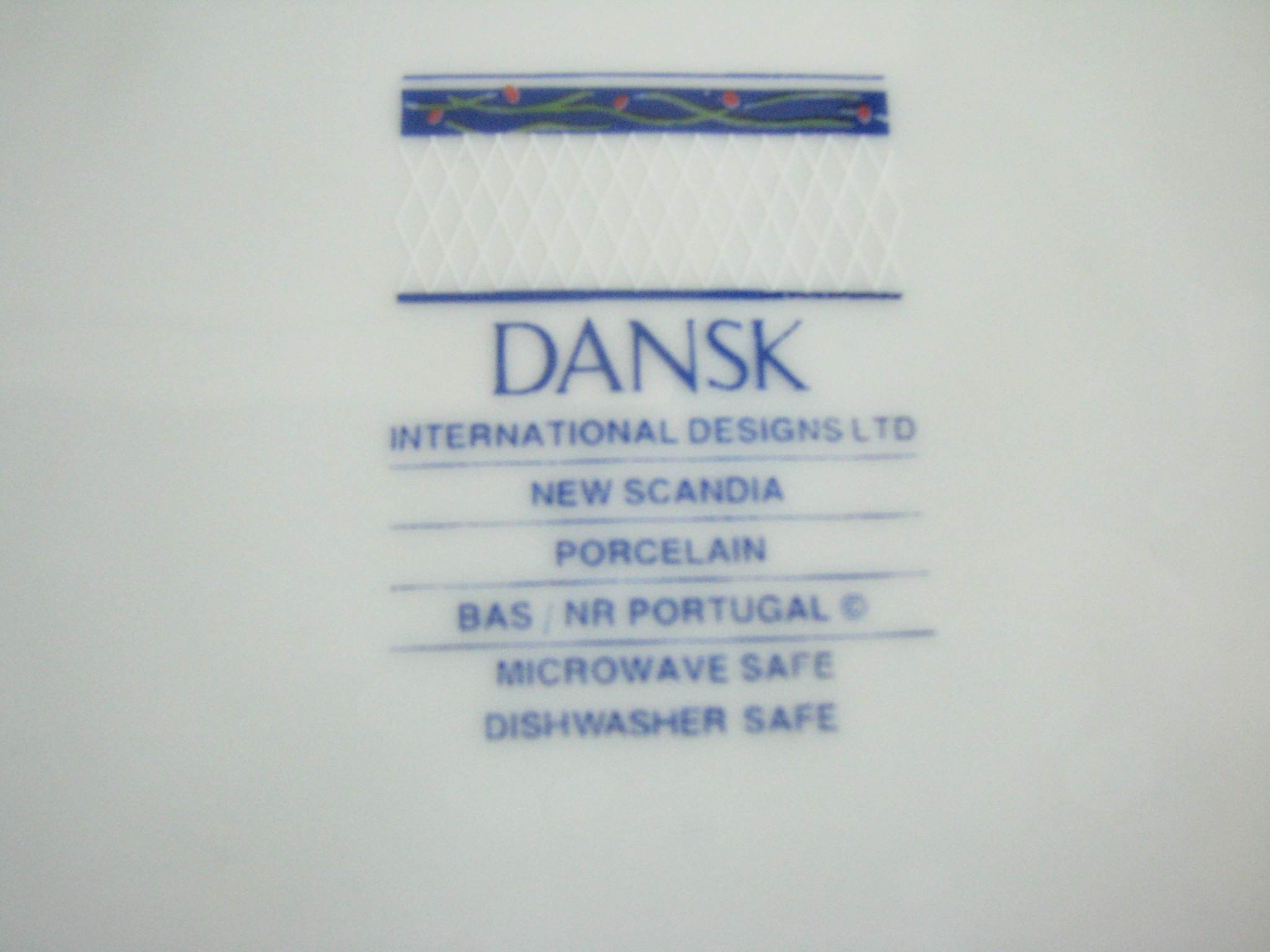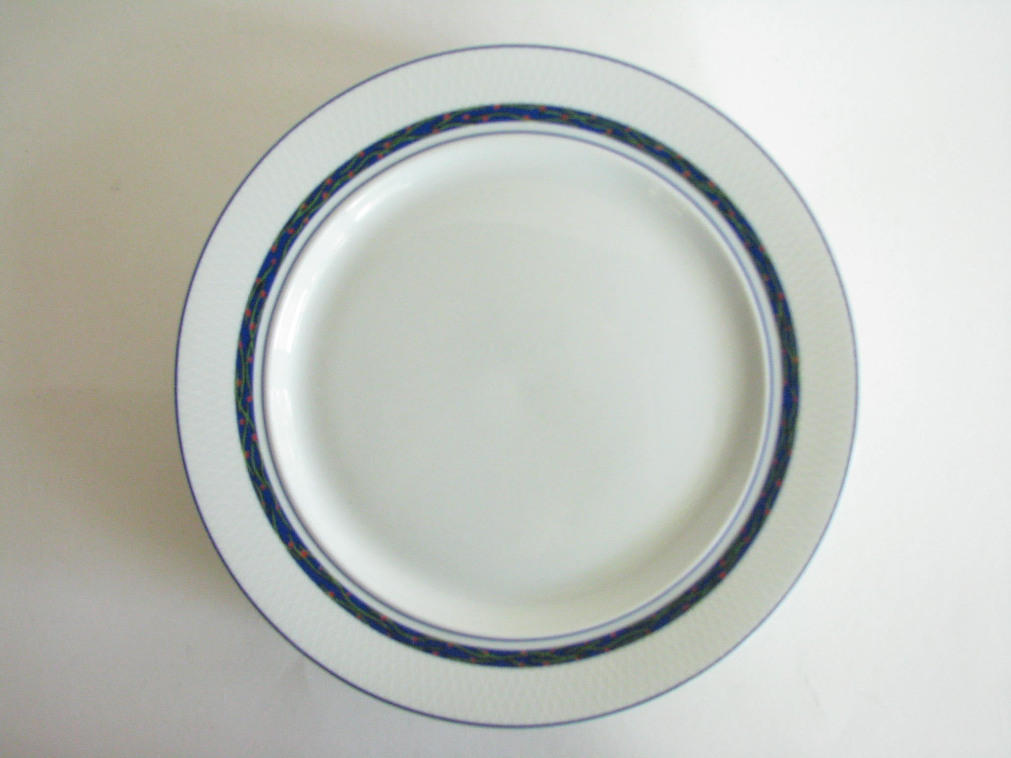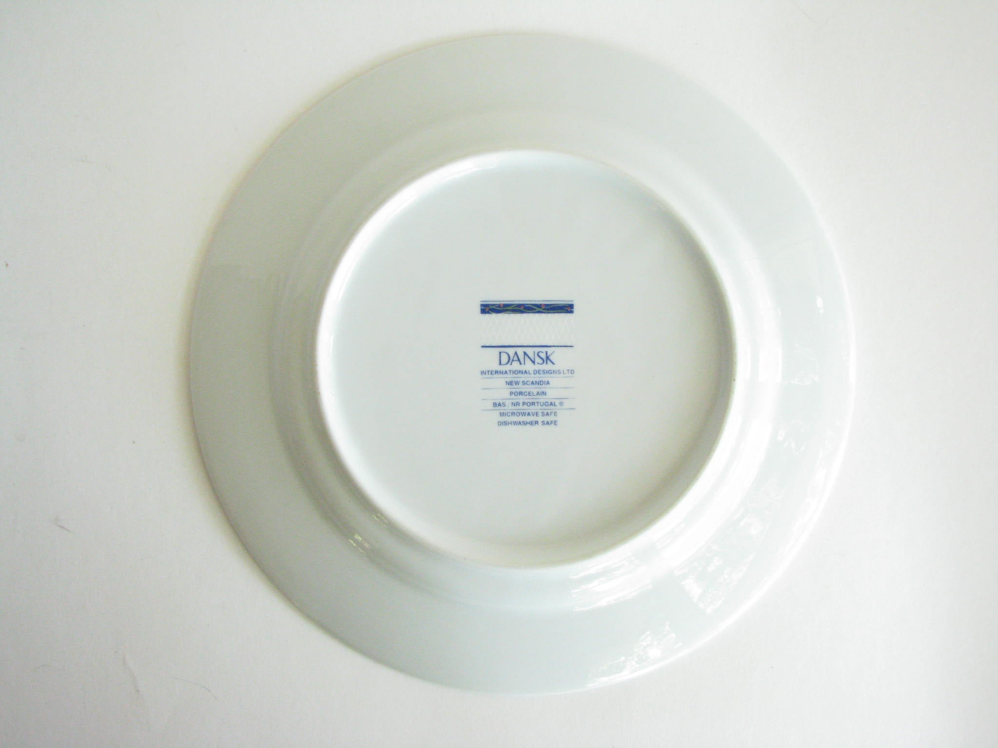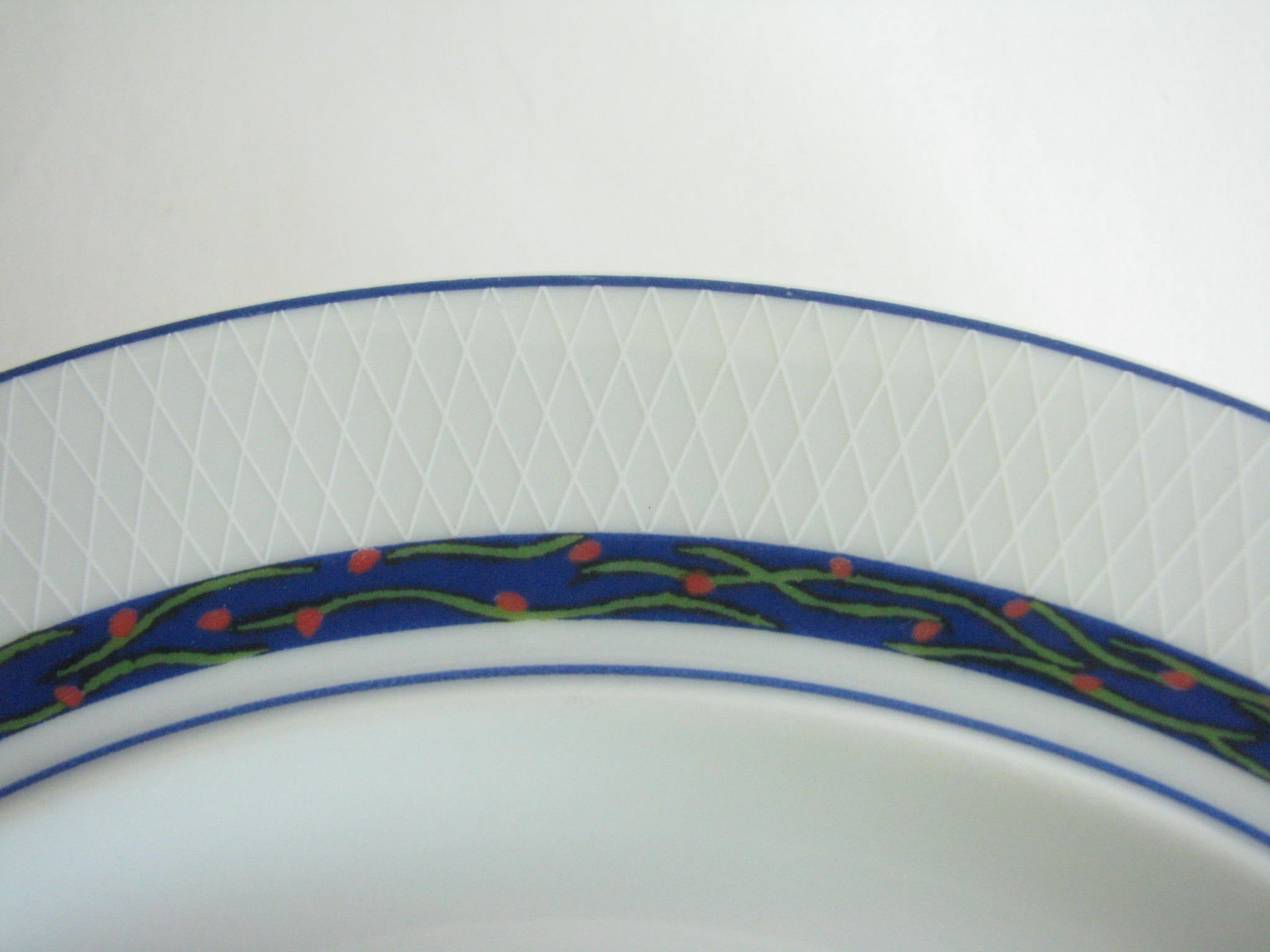 Vintage set of 6 Dansk New Scandia salad plates with blue trim and raised lattice edges.