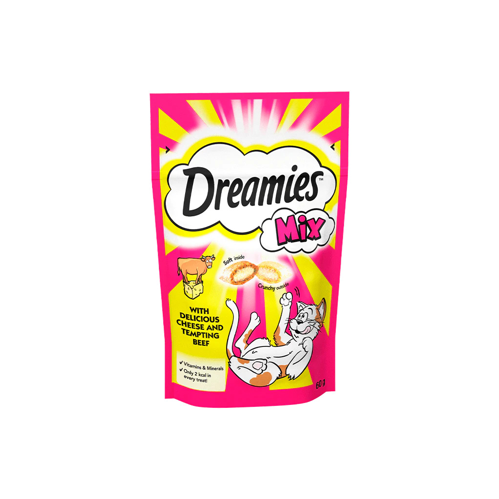 Cats go mad for the irresistible taste of DREAMIES™. So we’ve decided to go a little crazy too. Introducing Mix, two great flavours in one bag. Deliciously crunchy on the outside, soft on the inside. We’ve jam-packed lots of the yummy things cats love into these tasty treats. So go on, give the bag a shake and watch your cat come running.