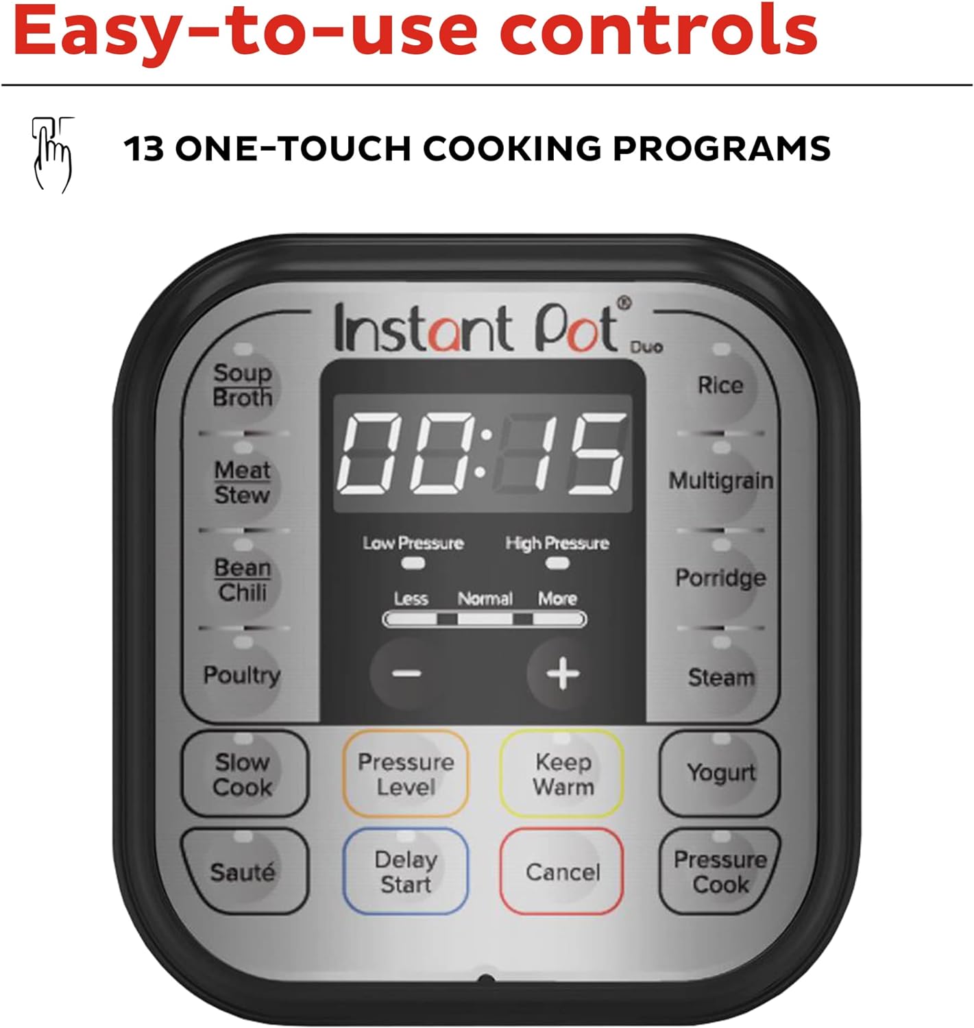 QUICK ONE-TOUCH COOKING: 13 customizable Smart Programs for pressure cooking ribs, soups, beans, rice, poultry, yogurt, desserts and more.