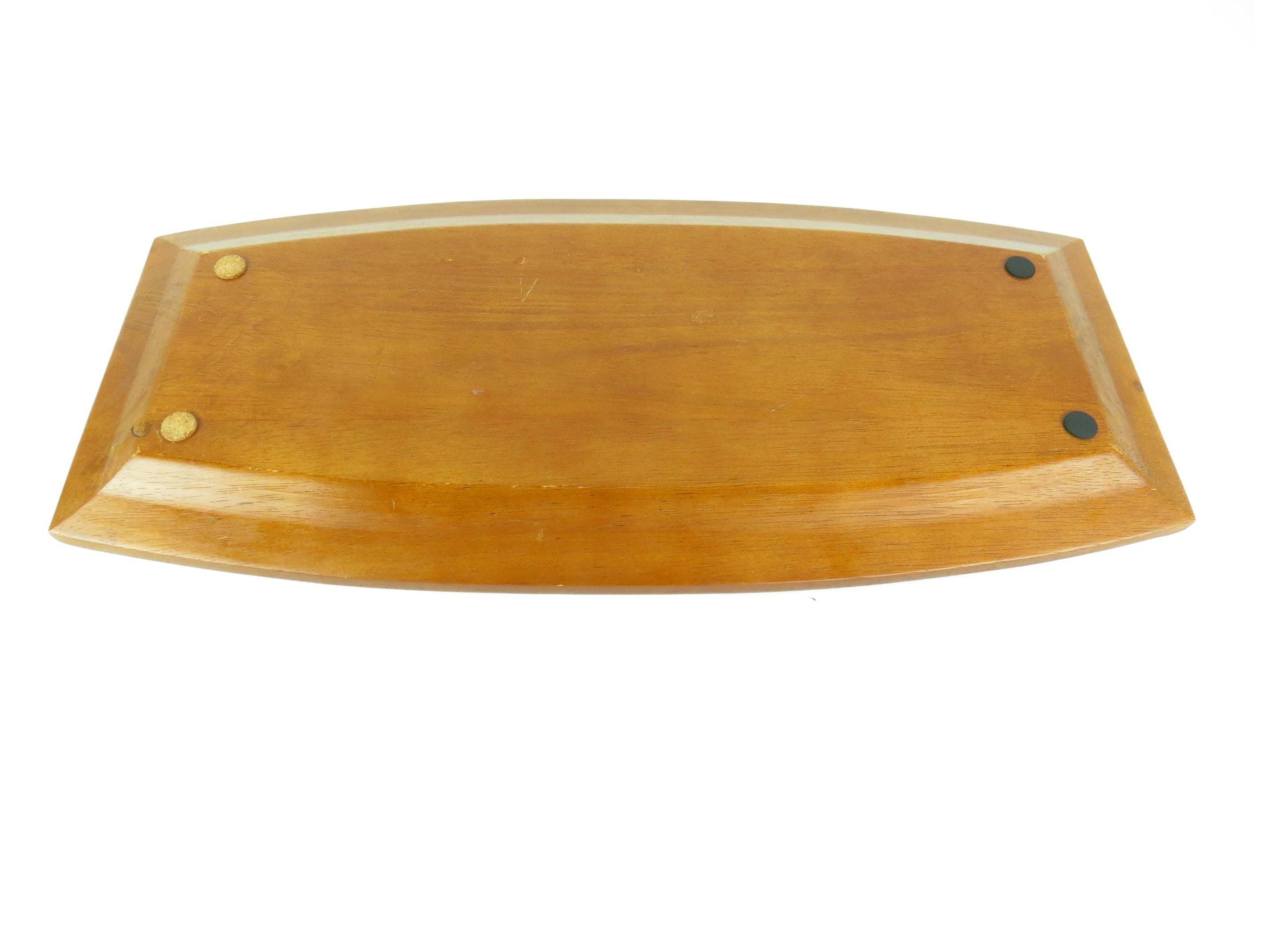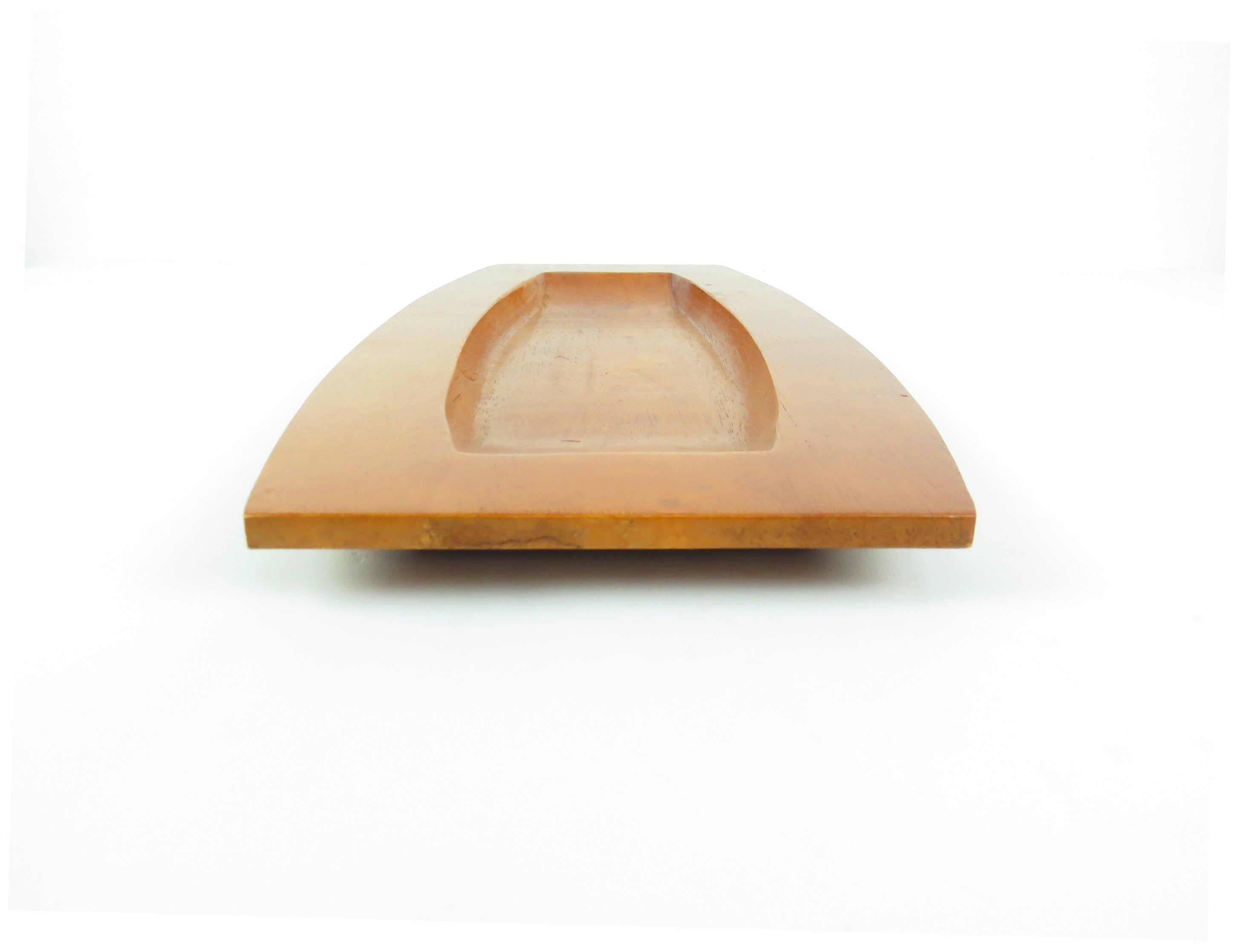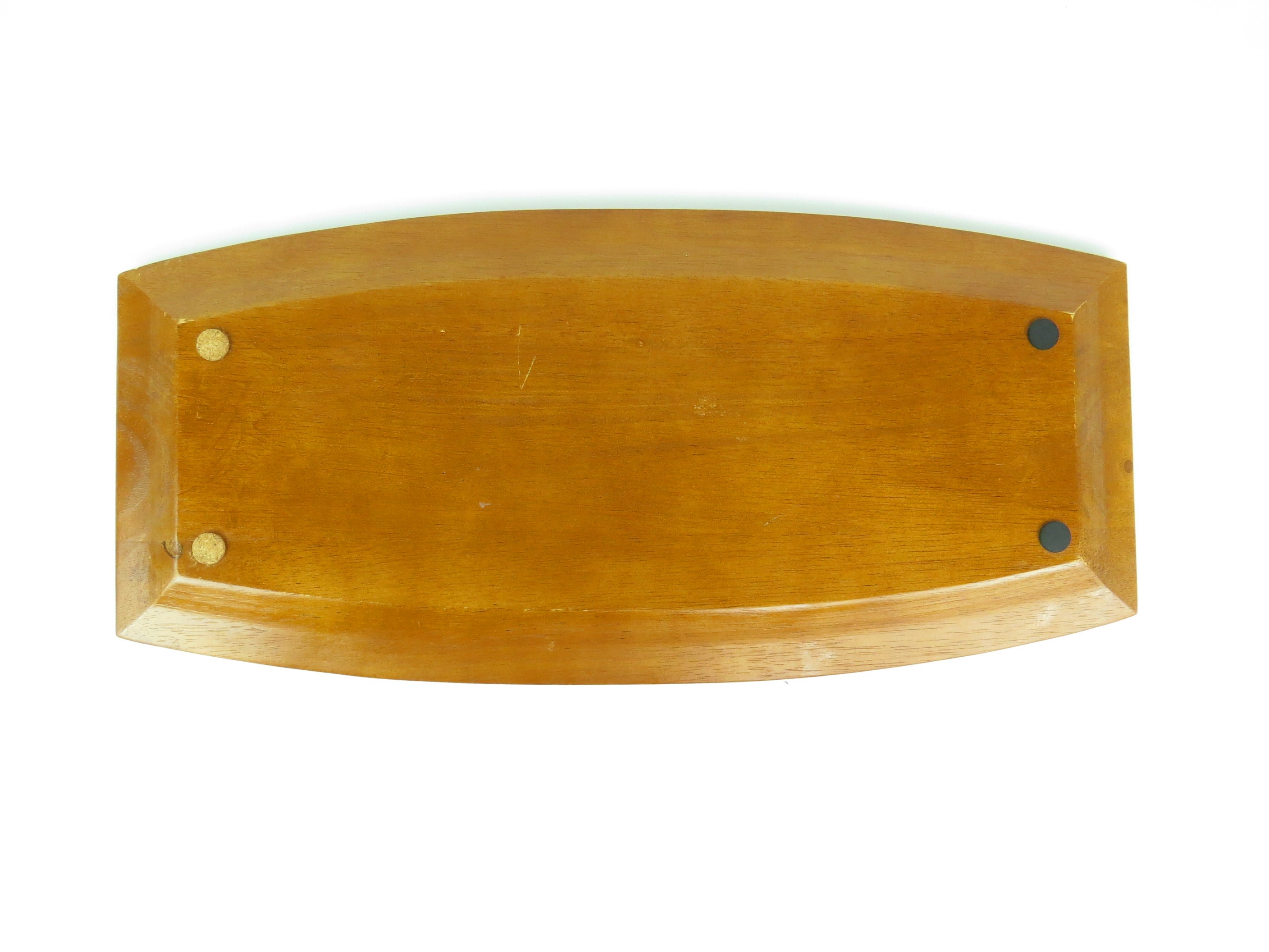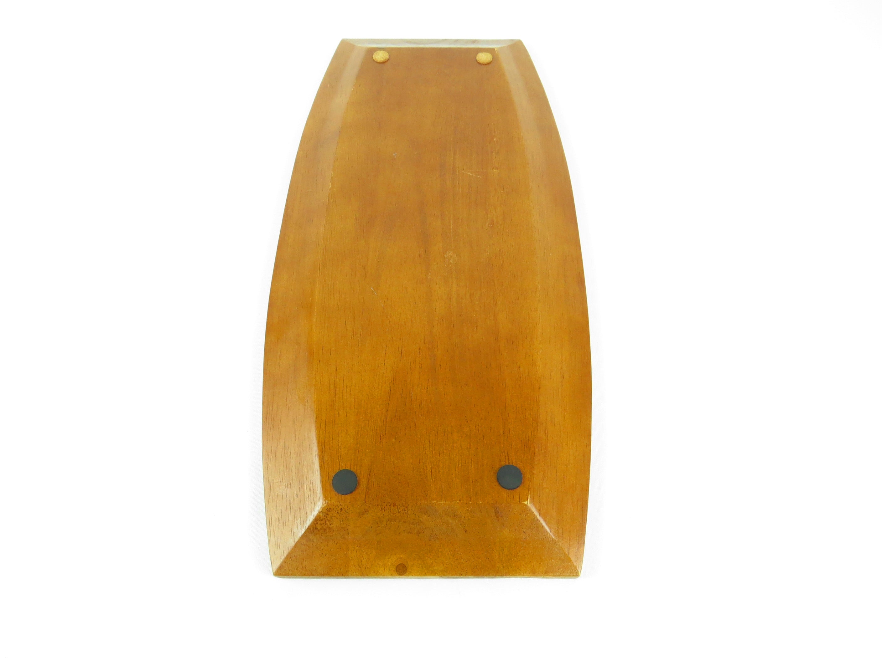 Vintage solid teak sculptural serving tray with boat shape. Faux lemons not included.