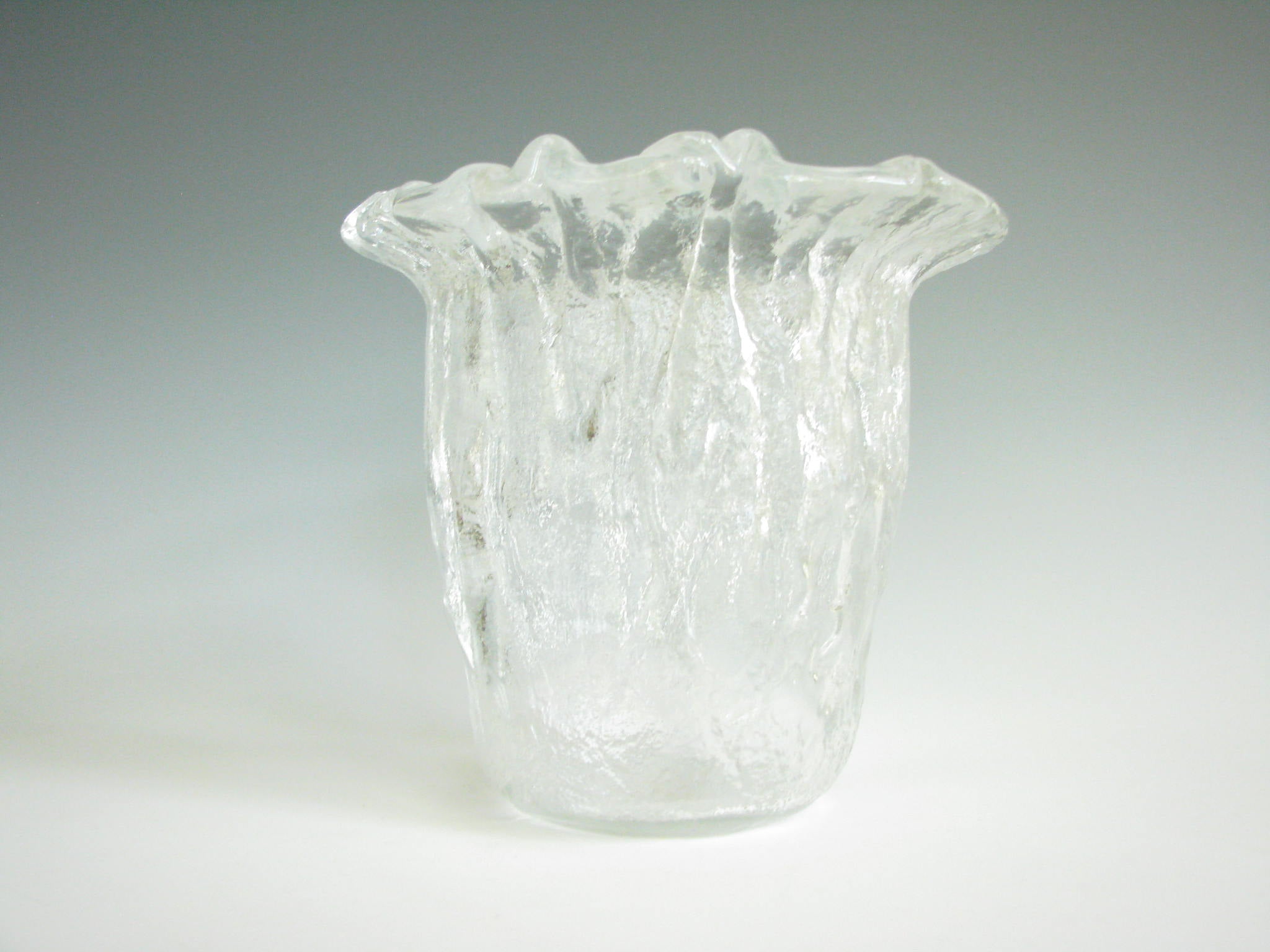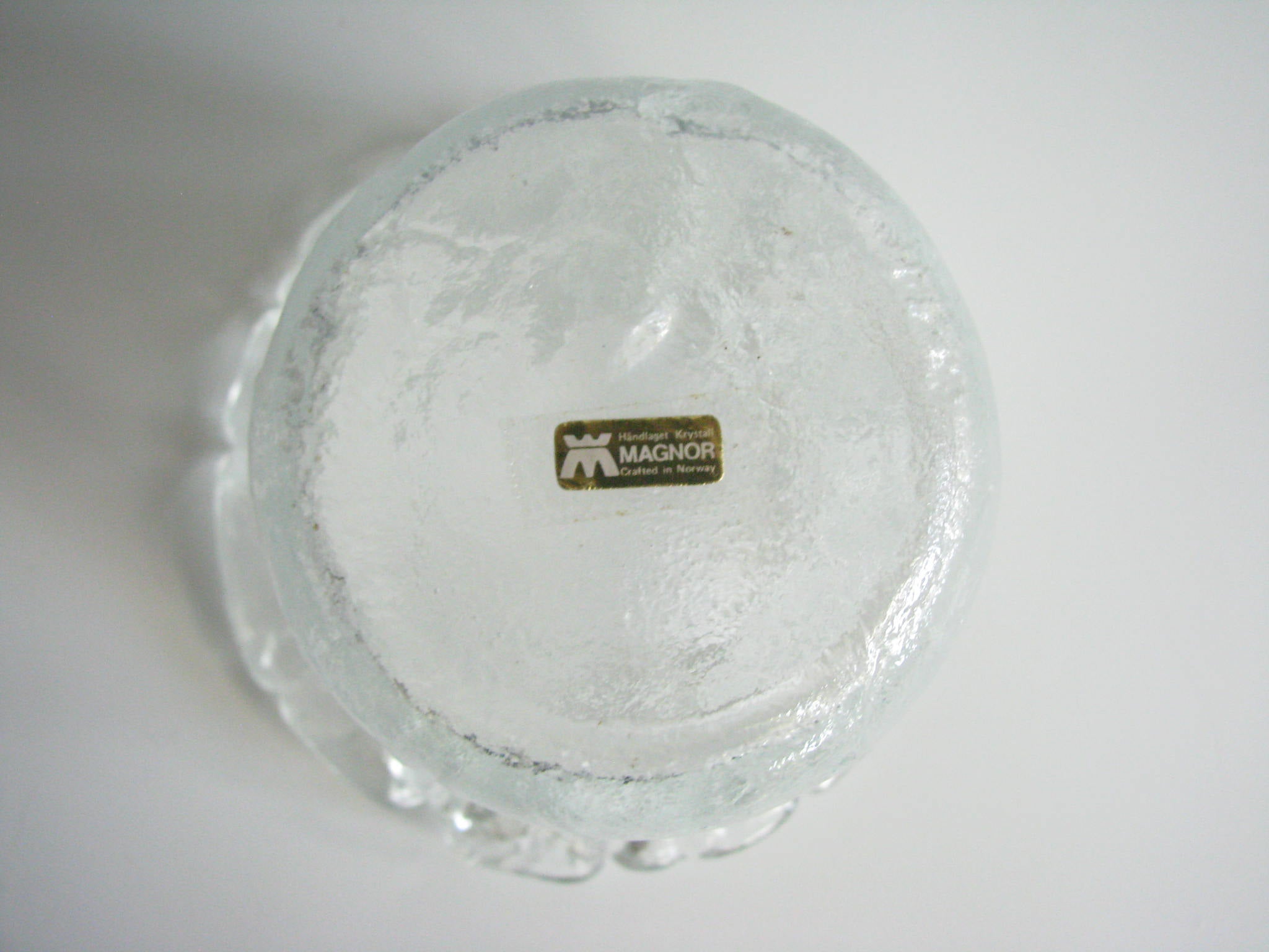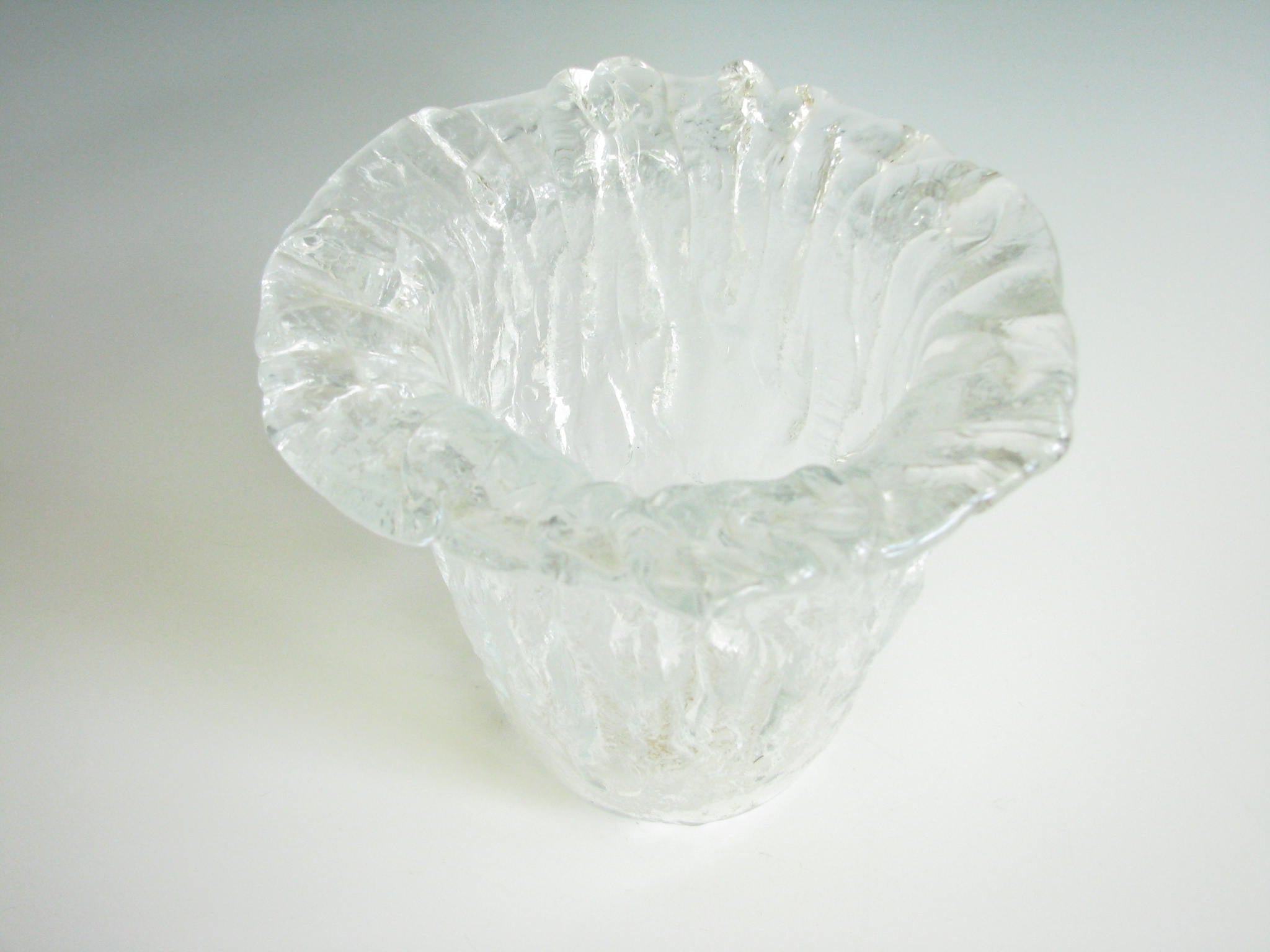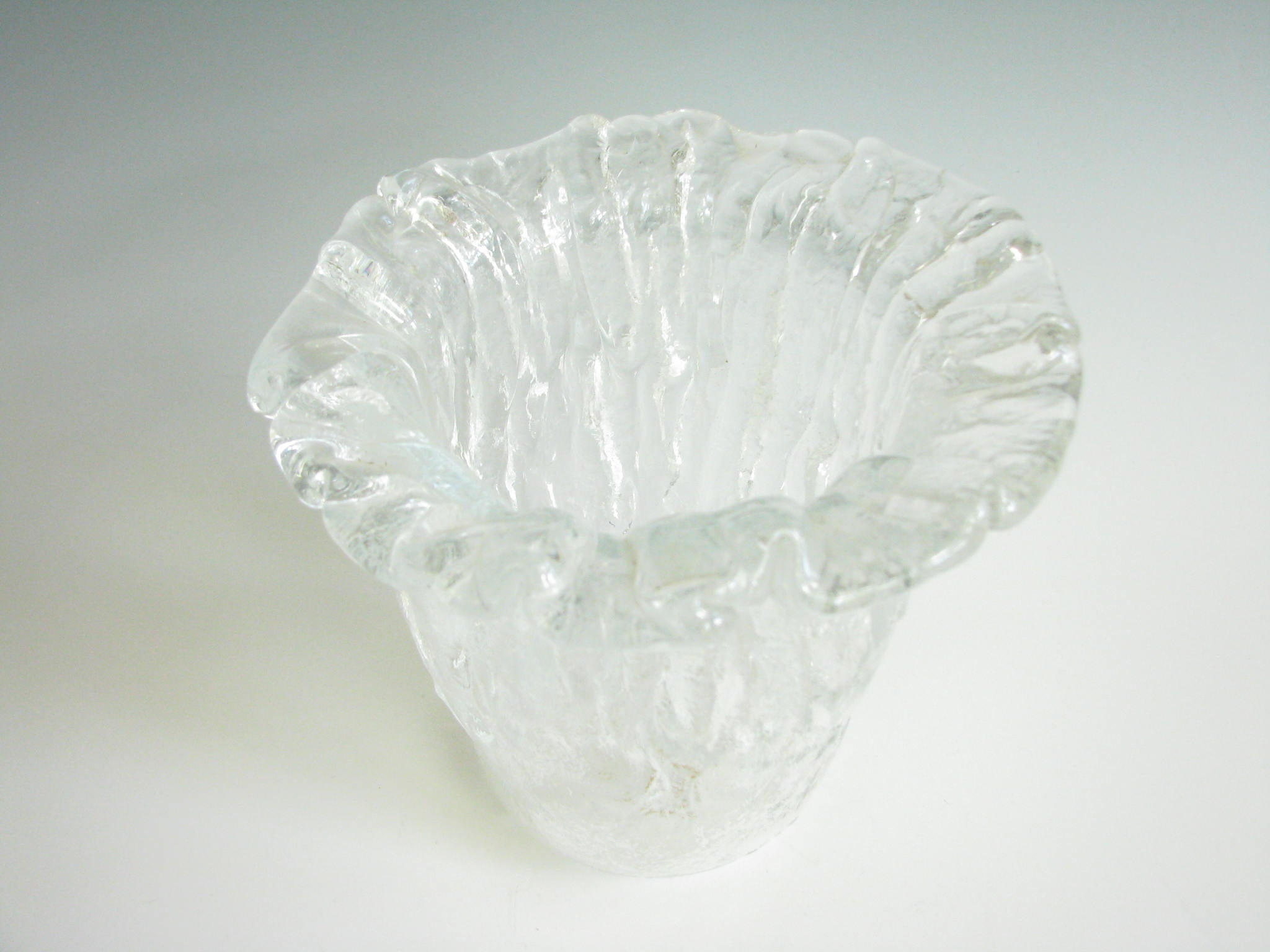 Vintage Magnor thick textured glass vase made in Norway. The crinkled / ice style is similar to designs by Tapio Wirkkala.