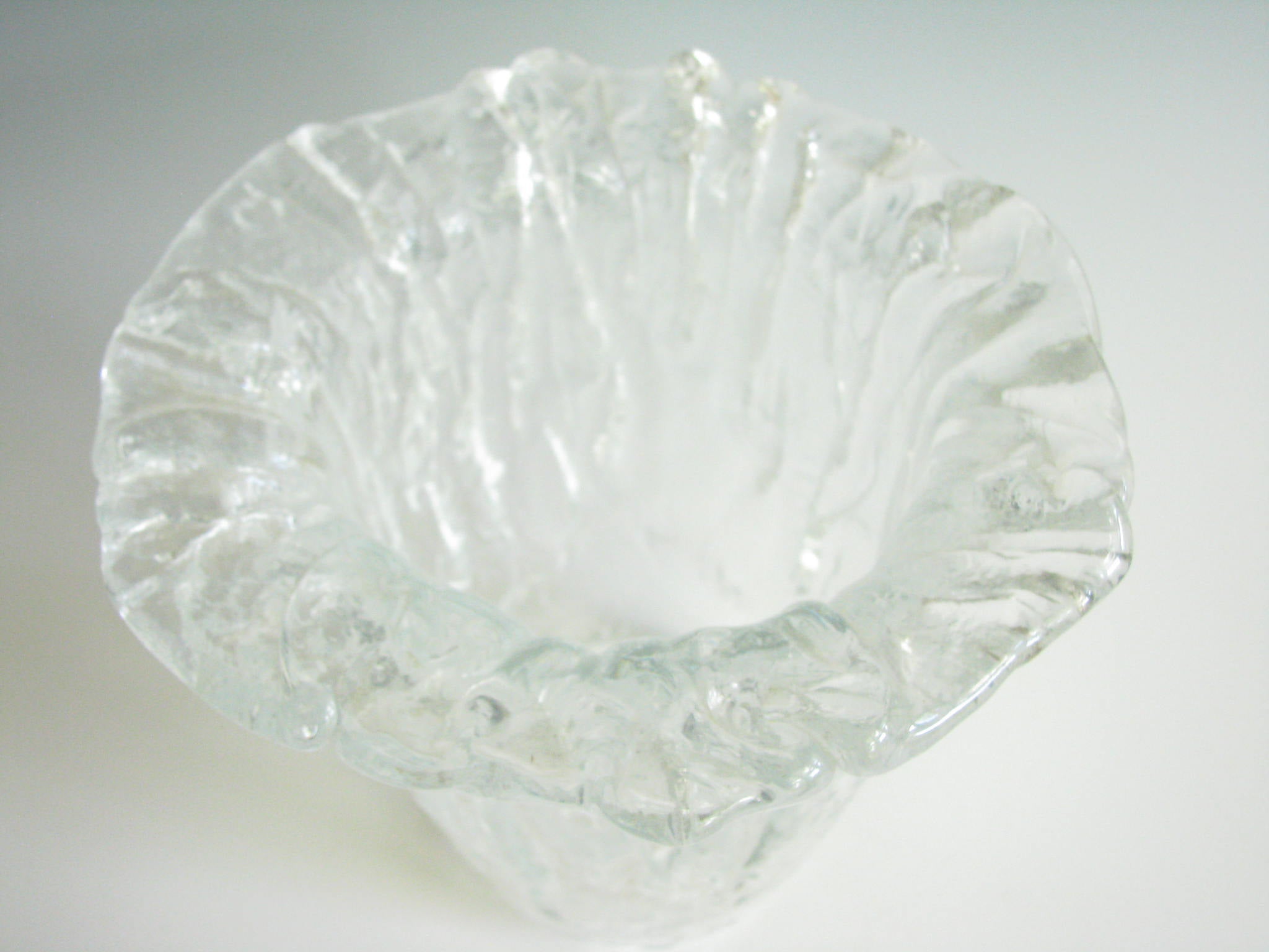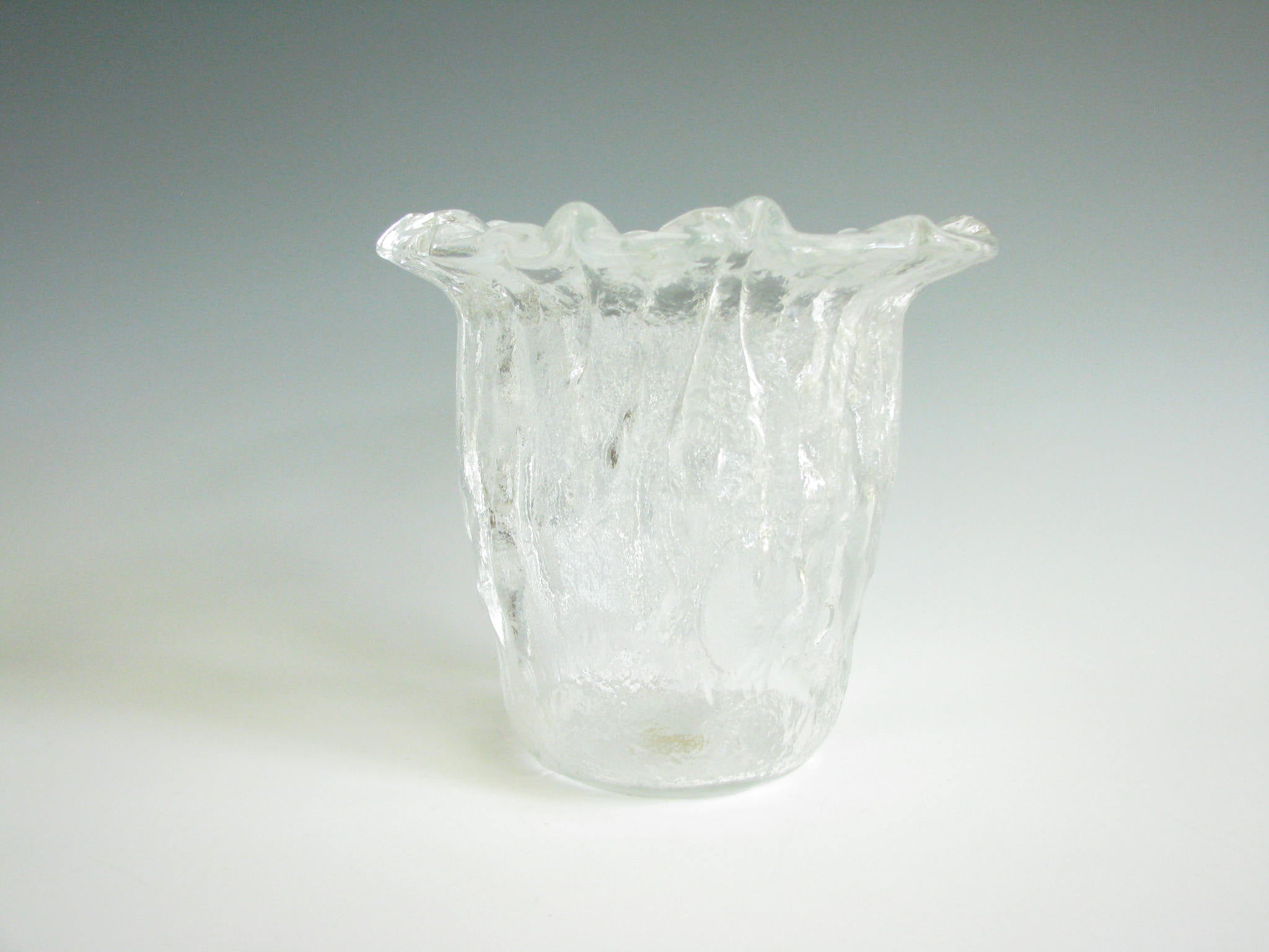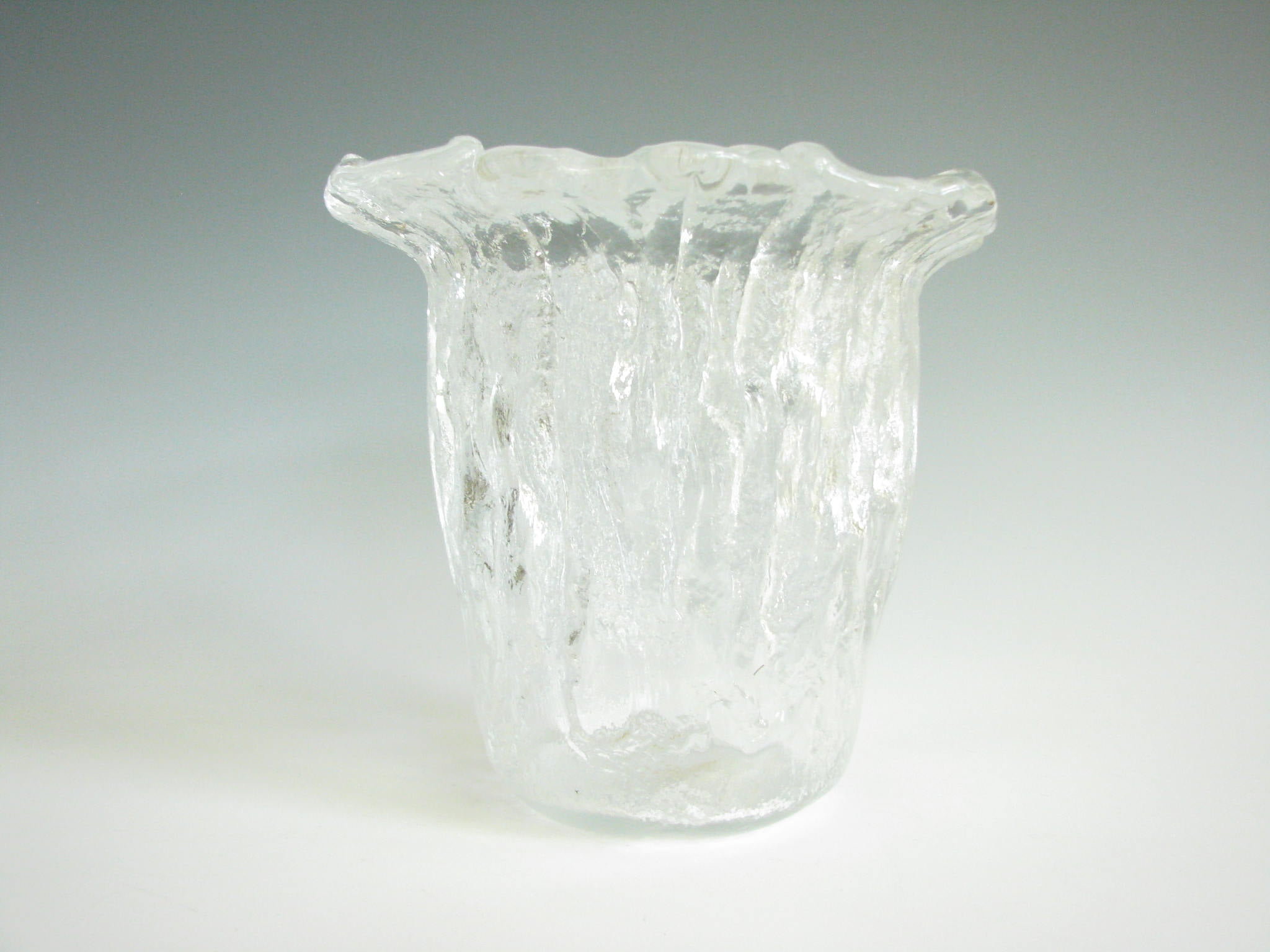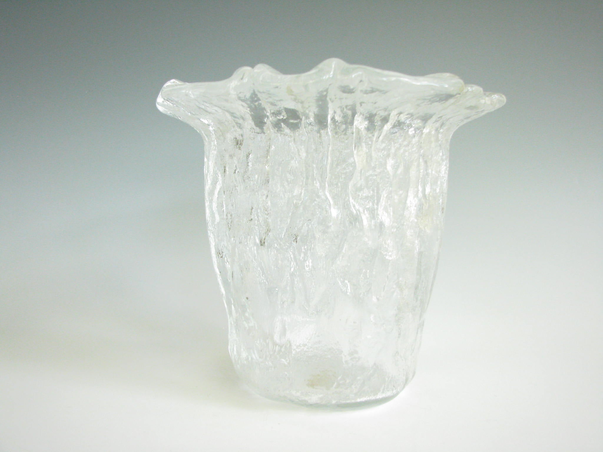 Vintage Magnor thick textured glass vase made in Norway. The crinkled / ice style is similar to designs by Tapio Wirkkala.