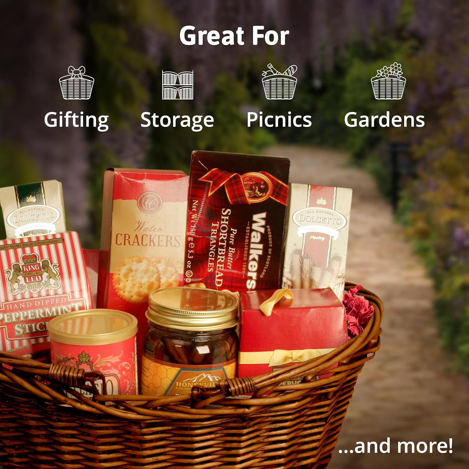 WICKER BASKET: Create an attractive gift basket for family and friends. Our small willow picnic basket has folding handles that fold down for storage or up for easy carrying, so you can take it with you anywhere or use it as storage and organization for household items.