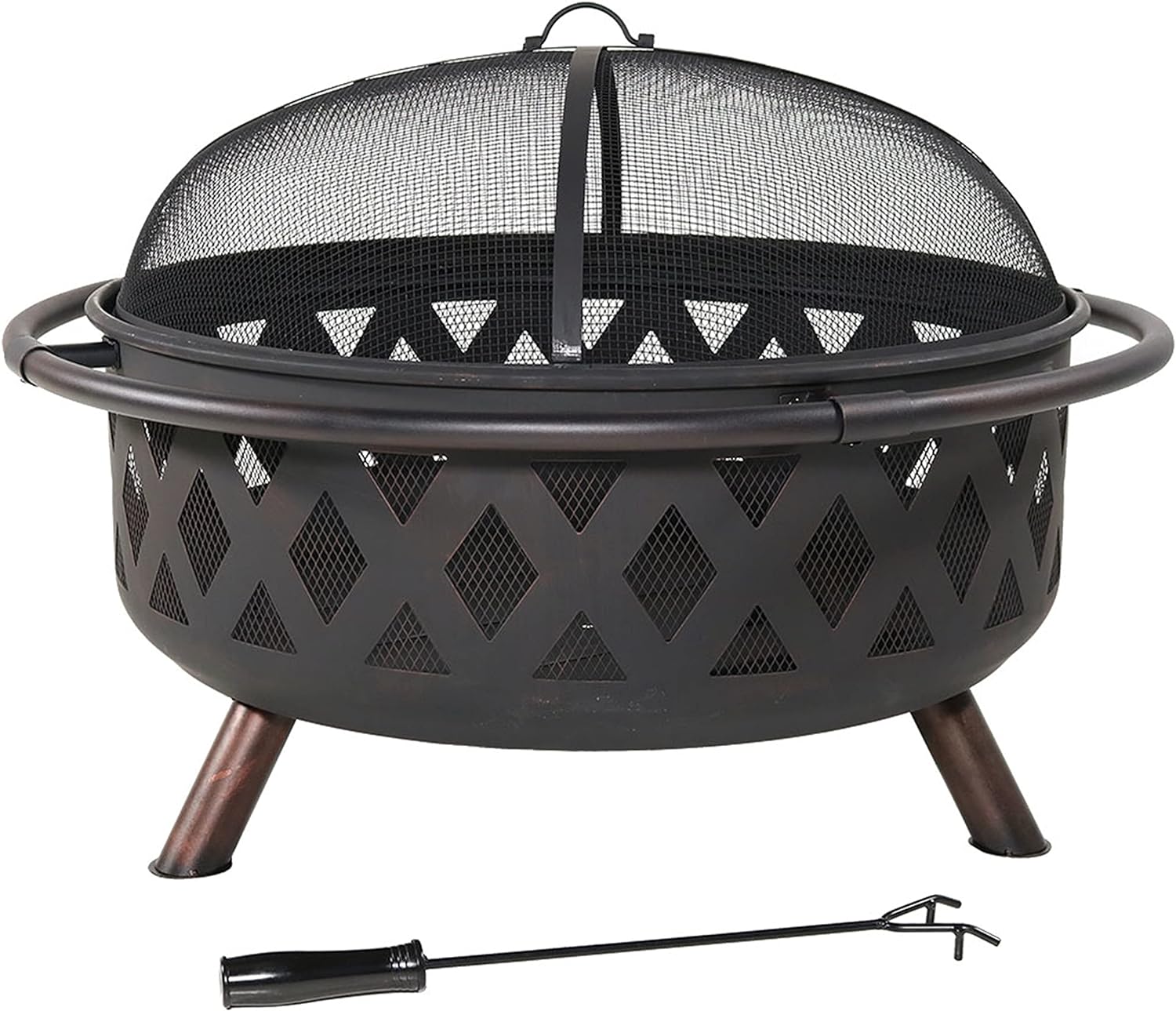 Durable, rust-resistant design: This heavy-duty fire pit is made from durable 1.7-millimeter gauge steel. Finished with black high-temperature paint, this fire pit is made for long-lasting use and resistance to rust. The portable function allows this wood-burning outdoor fireplace to be moved anywhere. This fire pit also features a decorative crossweave pattern that complements any outdoor decor style.