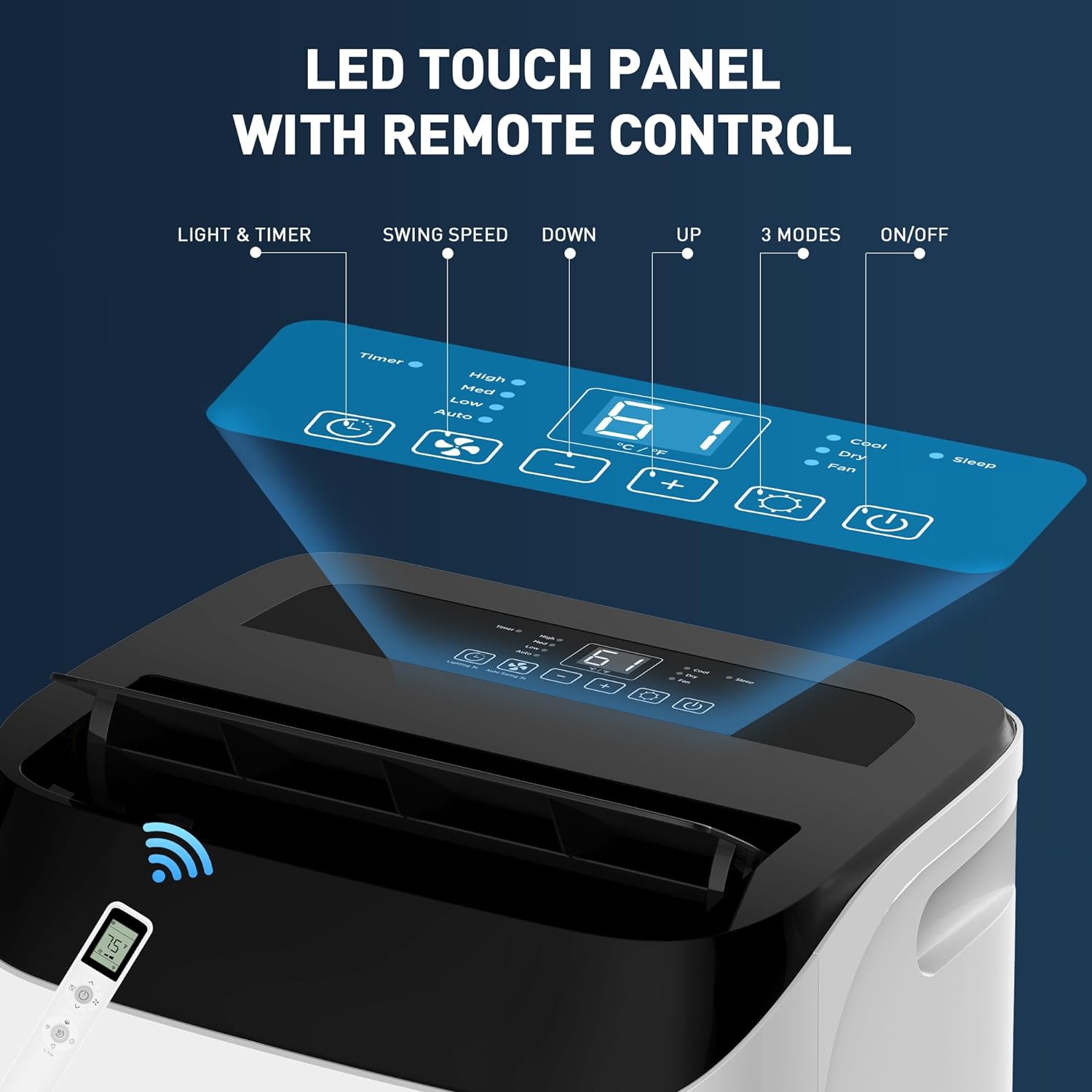 [Smart Sensors] The ac unit features a consistent cooling system and performance, as well as a digital display and comes with a 28ft effective distance a full-function remote control, which can be easily controlled and adjusted to meet your comfort needs.