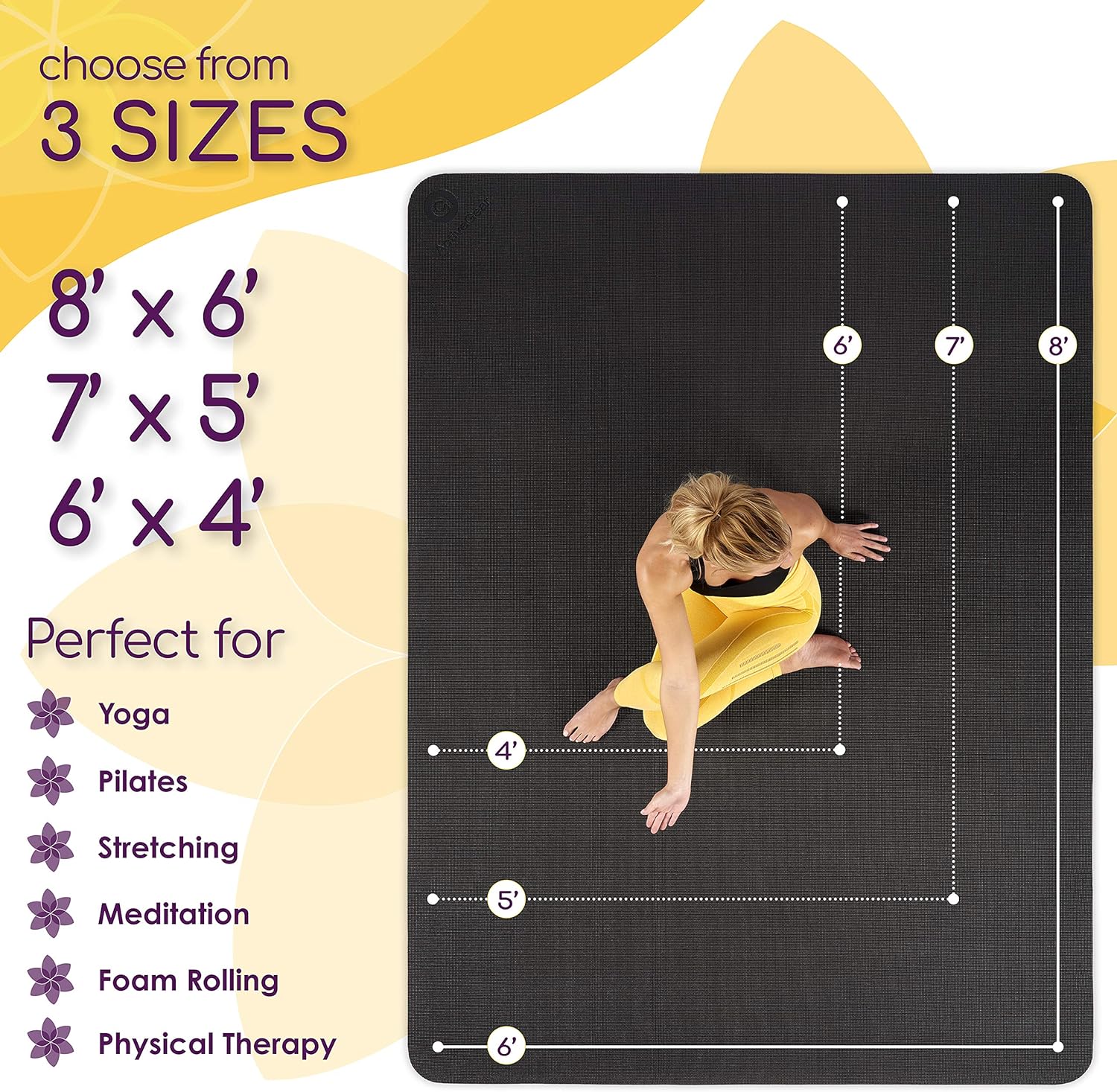 Your Personal Yoga Studio: Our wide yoga mat turns any room or floor into a home workout space. A 7x5 mat ideally suited for low-impact (NO SHOES) exercise such as Yoga, Pilates, Stretching and movement. A non slip yoga mat designed for BAREFOOT exercise.
