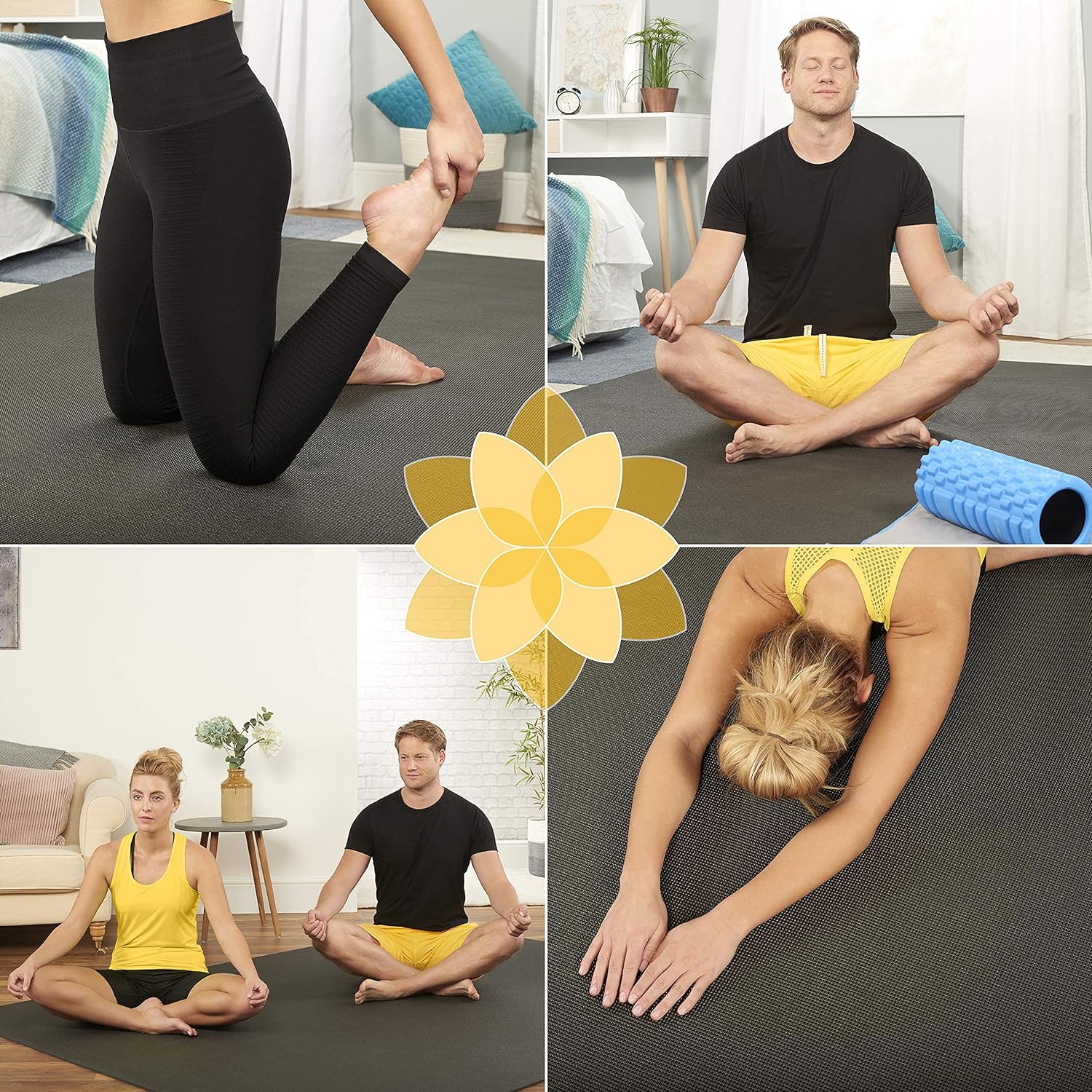 Double-Sided Non-Slip Surface: Strong, secure grip for barefoot poses or gymnastics floor work on any surface: tile, carpet, wood or concrete. The textured non-slip surfaces and large size makes it an ideal yoga mat for men, women or partner yoga.