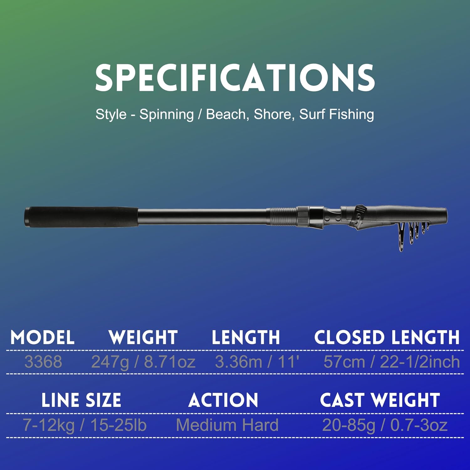 Compact and Travel-Friendly - This travel fishing rod retracts to a convenient size, fitting easily into your car trunk, boat hatch, or backpack. Never miss an opportunity to fish your favorite spots or explore new waters.