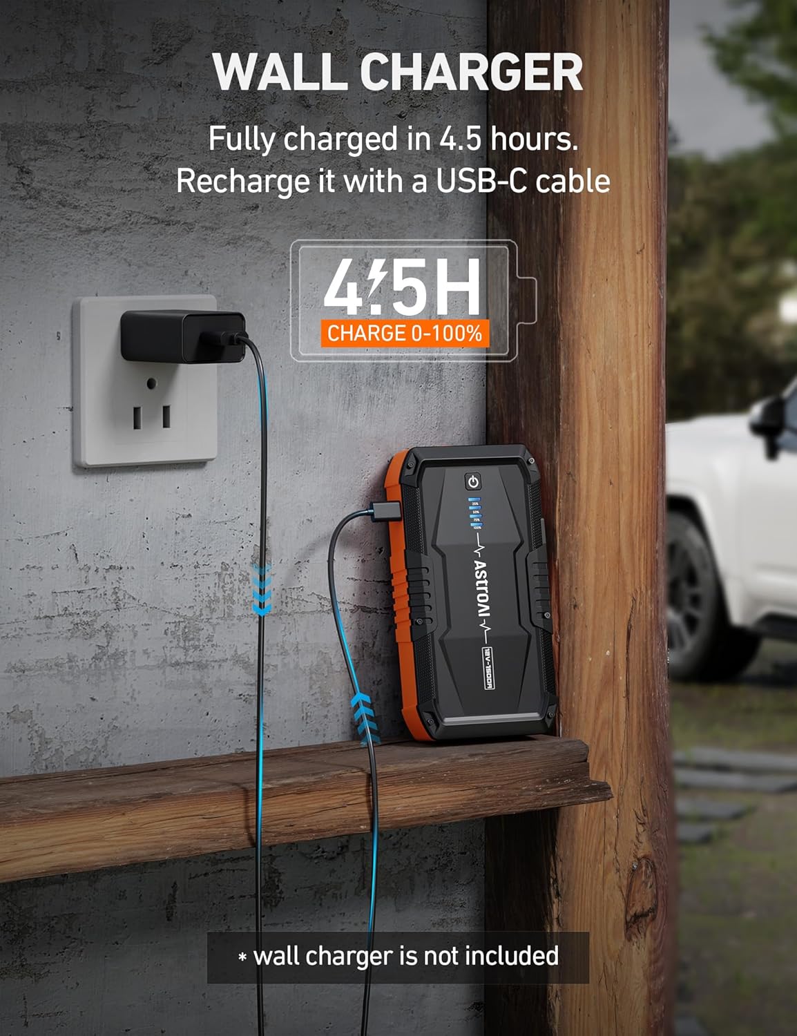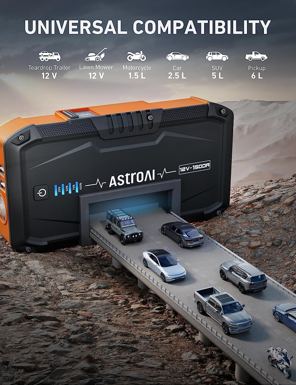 5-IN-1 MULTIFUNCTION - This device functions as a jump starter, portable power bank, and an LED flashlight with 3 modes (flashlight, strobe, SOS). The AstroAI Lithium Battery Jump Starter is your reliable, all-around trip companion here to gear you up for every adventure.