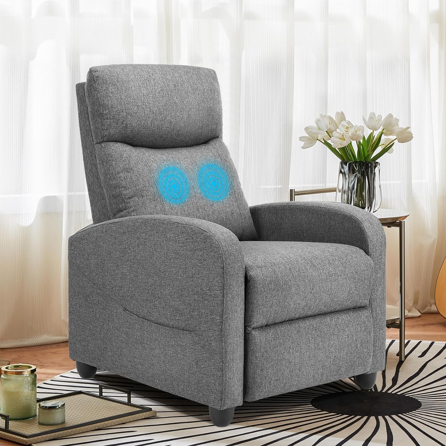 【Massage Mode】:This recliner has 2 points on the waist for power massage, 8 features to give you the best massage, and has 3 strength recliners for optimal relaxation. Enjoy it.
