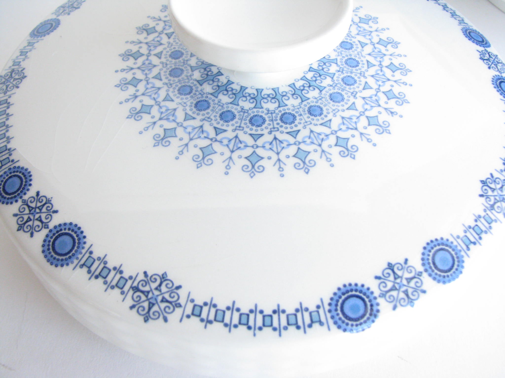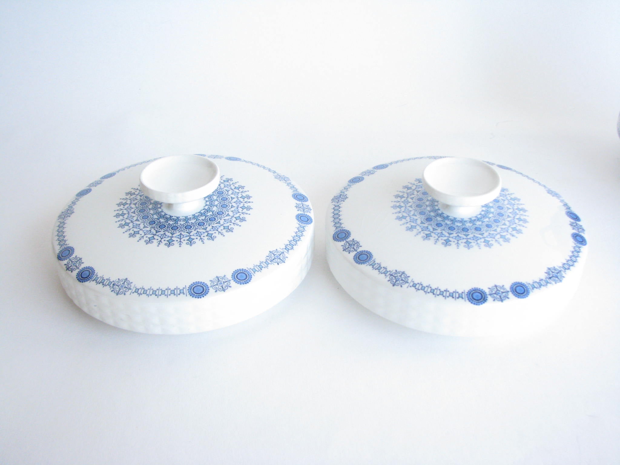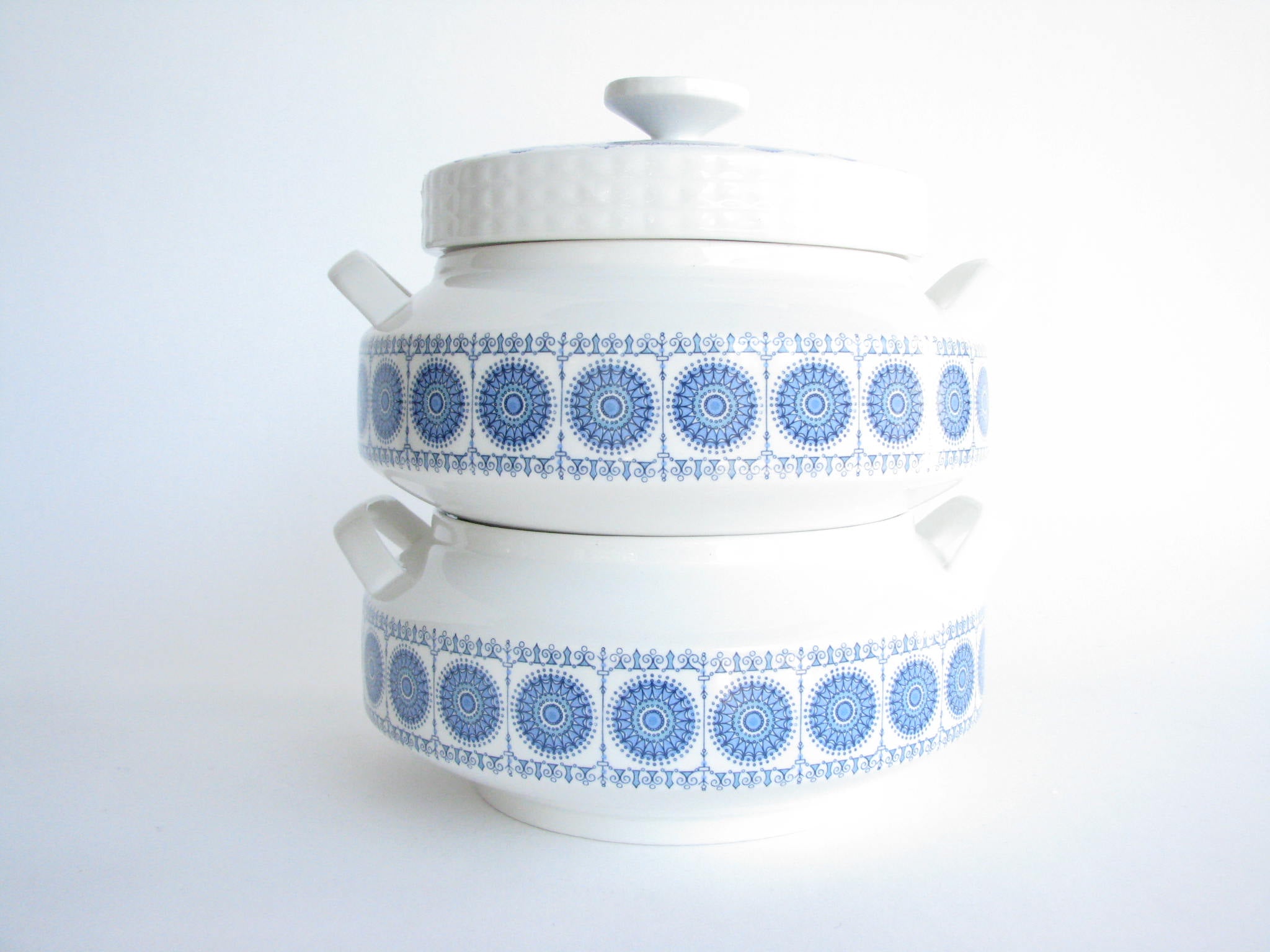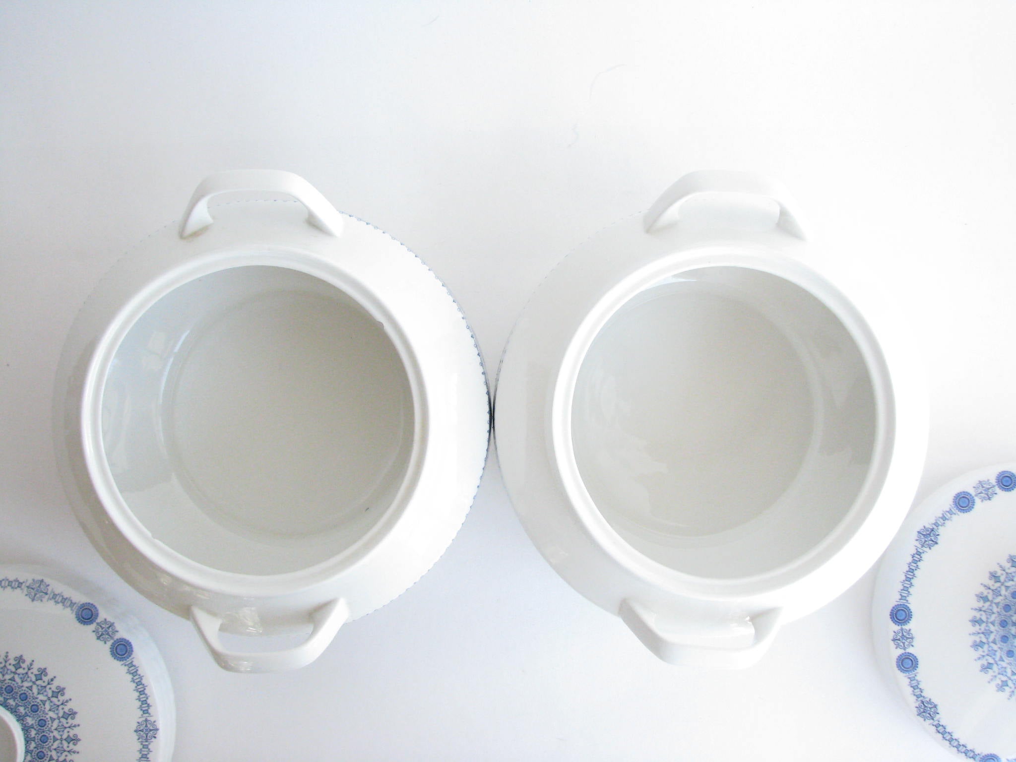 Set of 2 1960s Pontesa Castillian Collection Granada ironstone lidded vegetable / serving dishes. Beautiful blue and white medallion design.