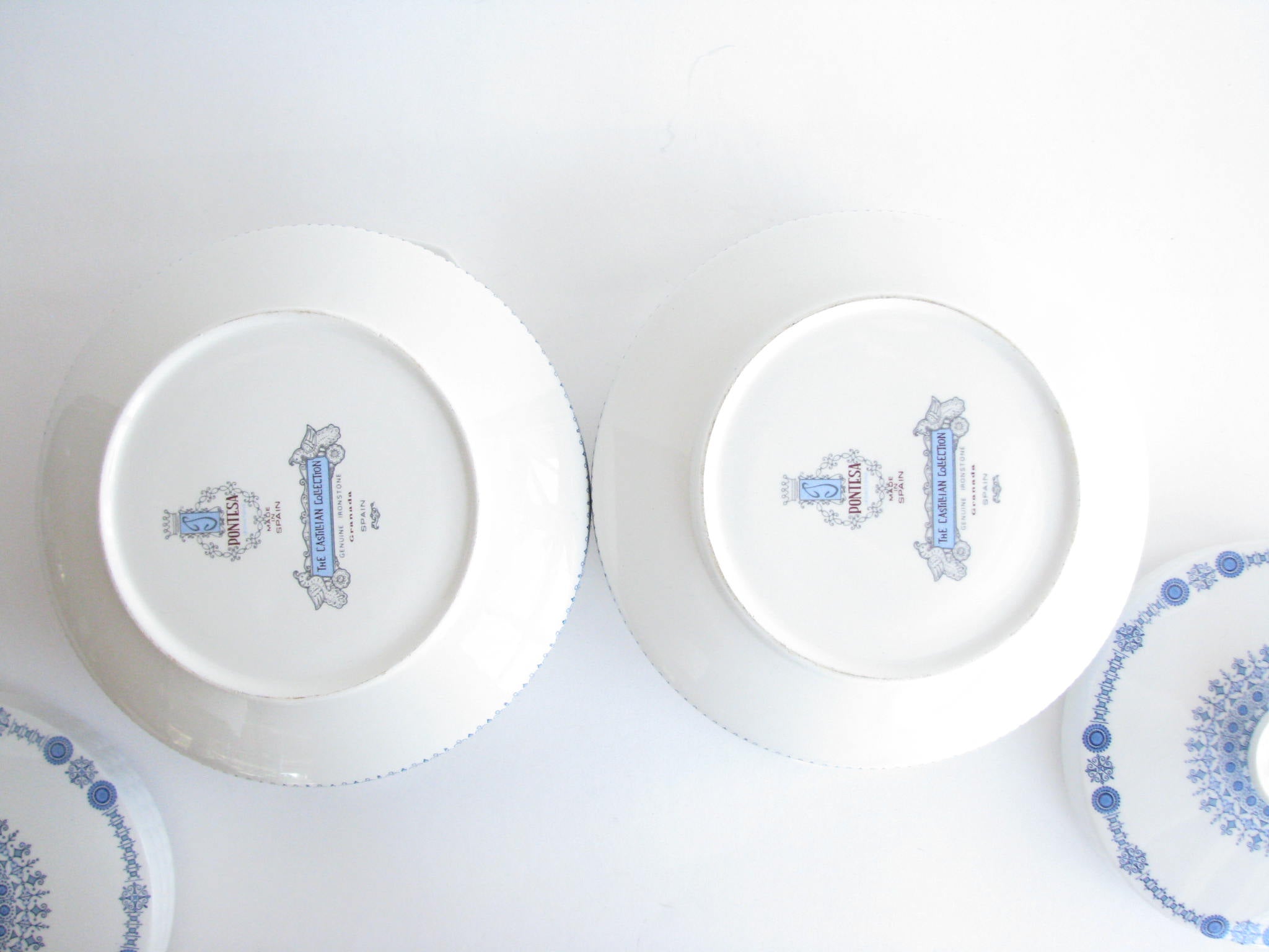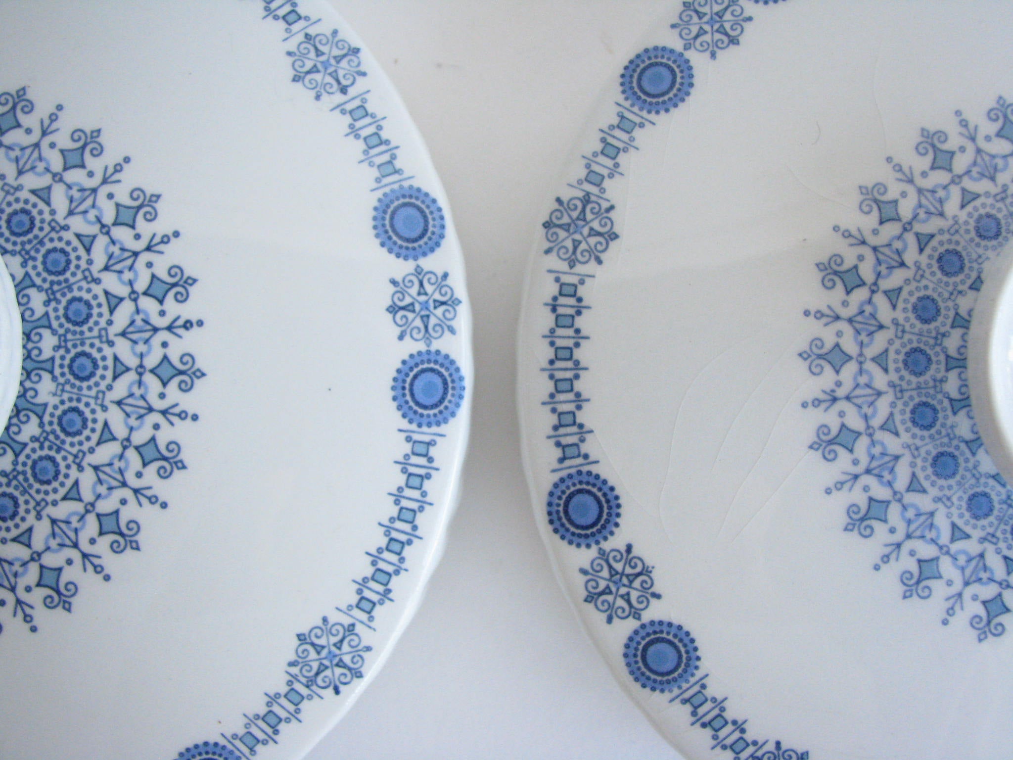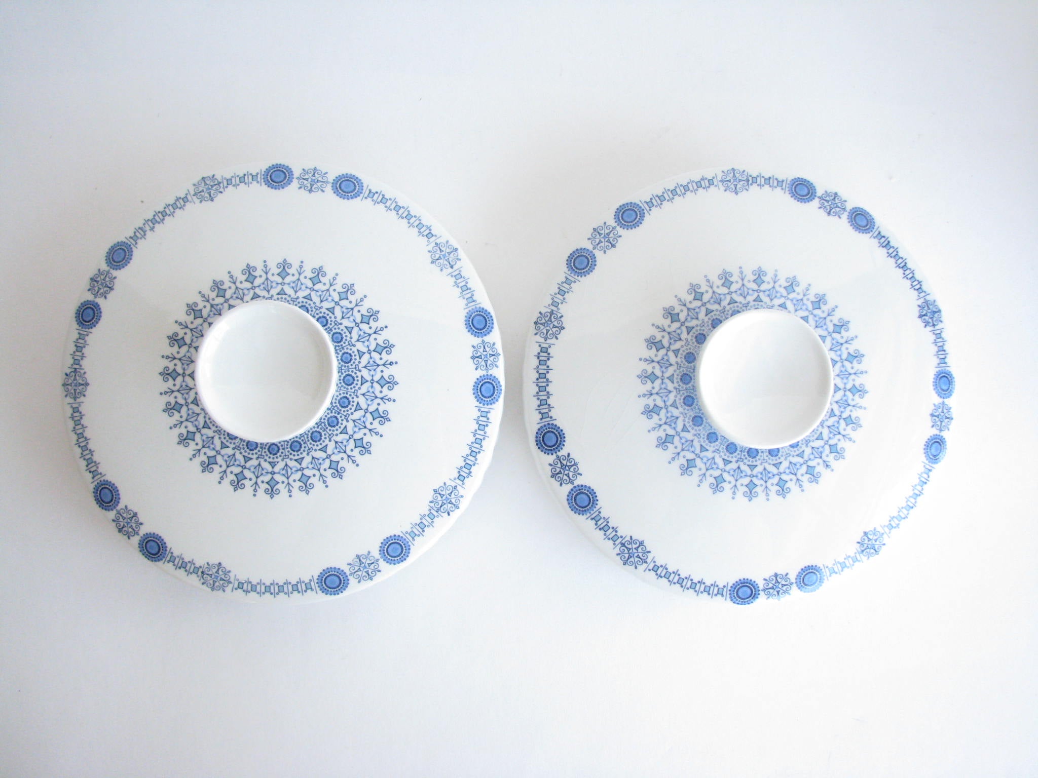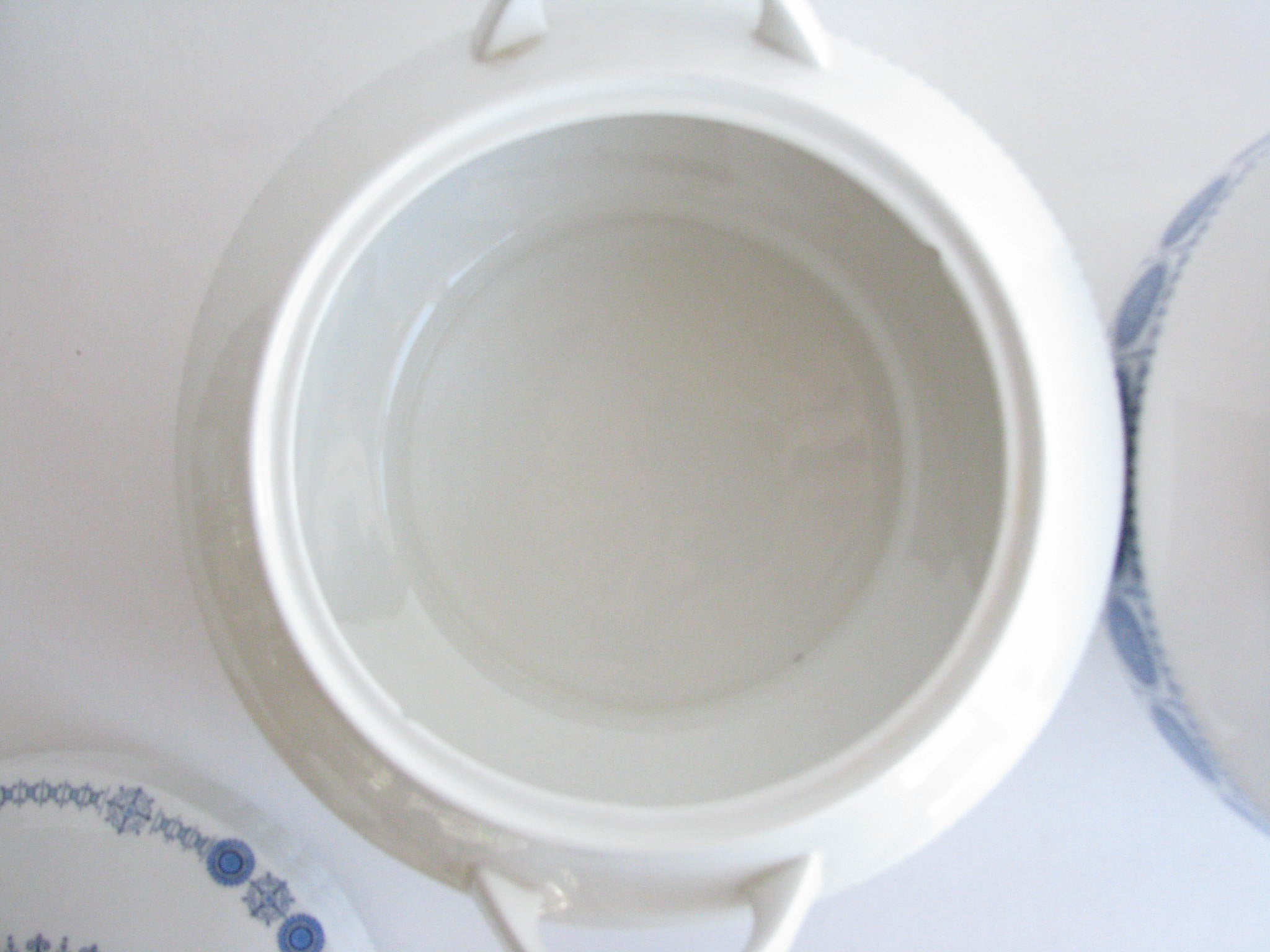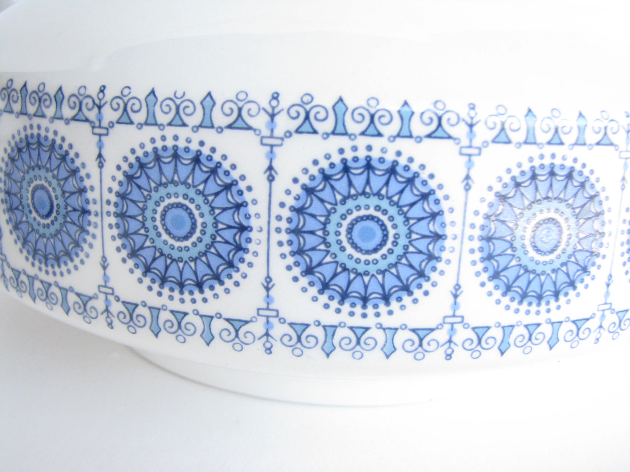 Set of 2 1960s Pontesa Castillian Collection Granada ironstone lidded vegetable / serving dishes. Beautiful blue and white medallion design.