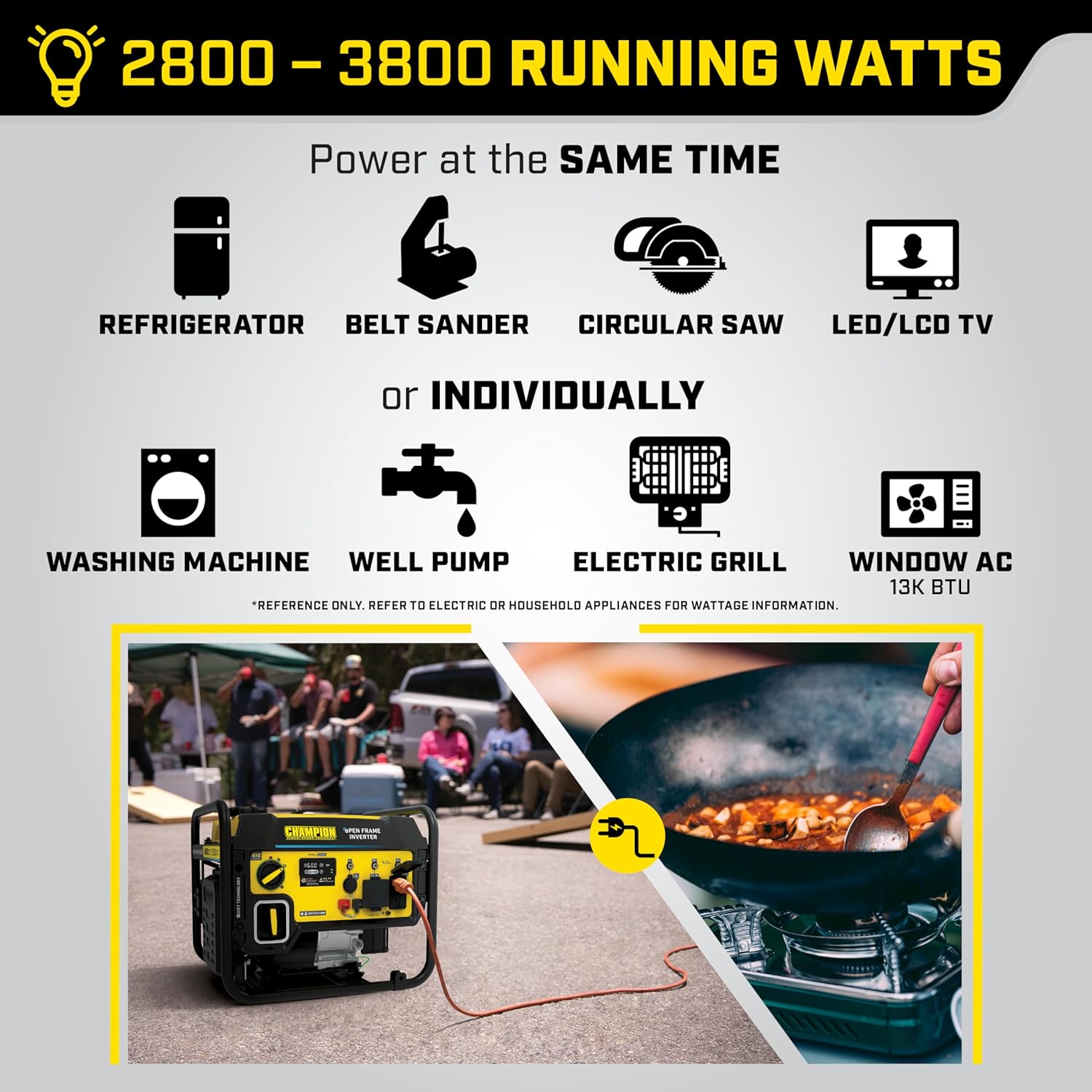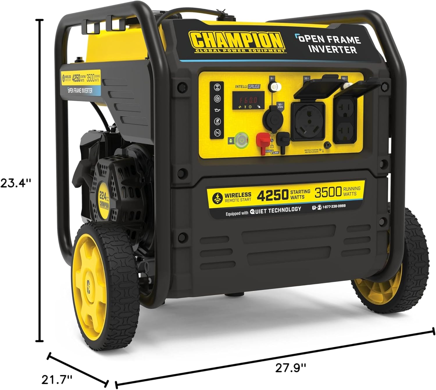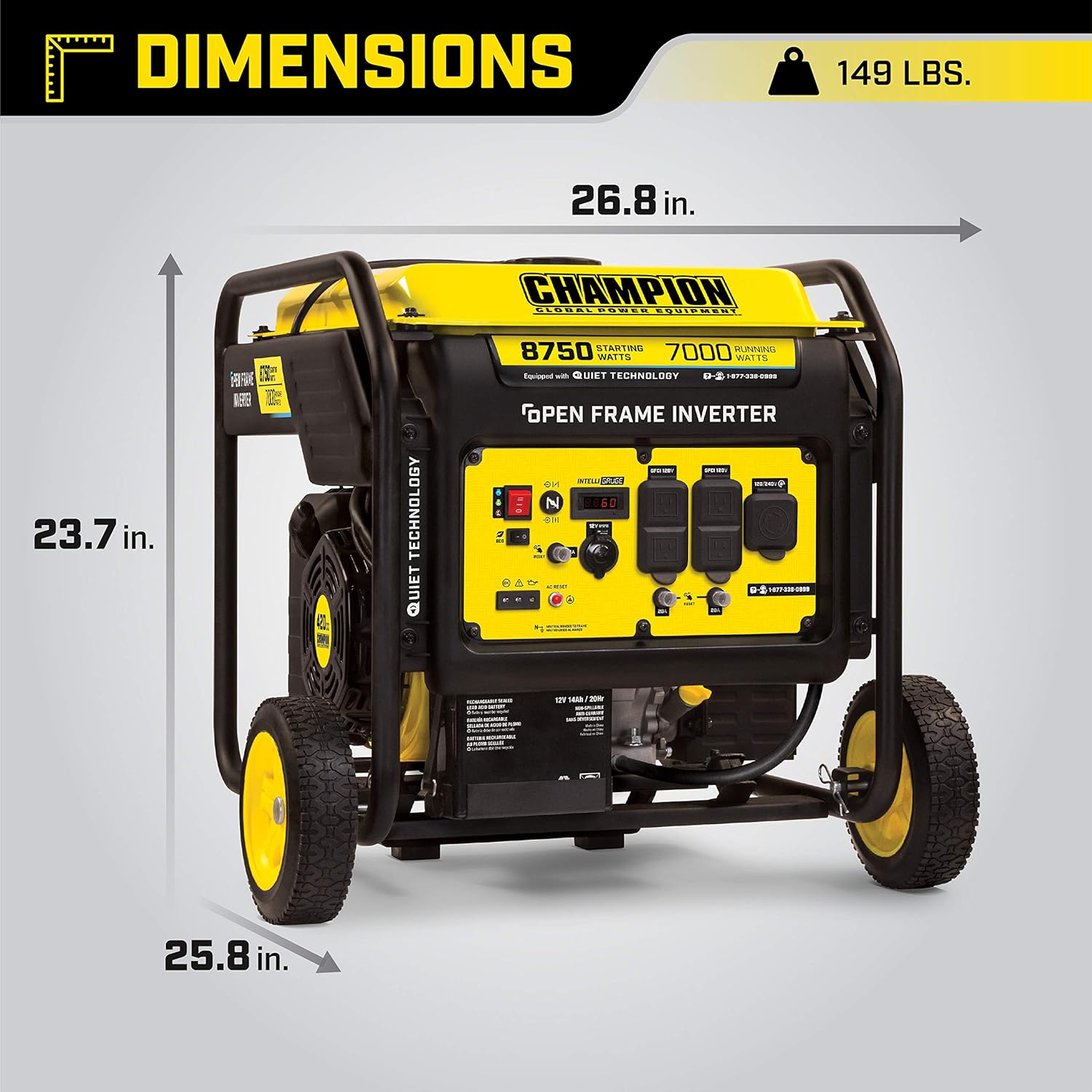 QUIET TECHNOLOGY AND EXTENDED RUN TIME: 64 dBA is great for RVs, tailgating, your next project or home backup