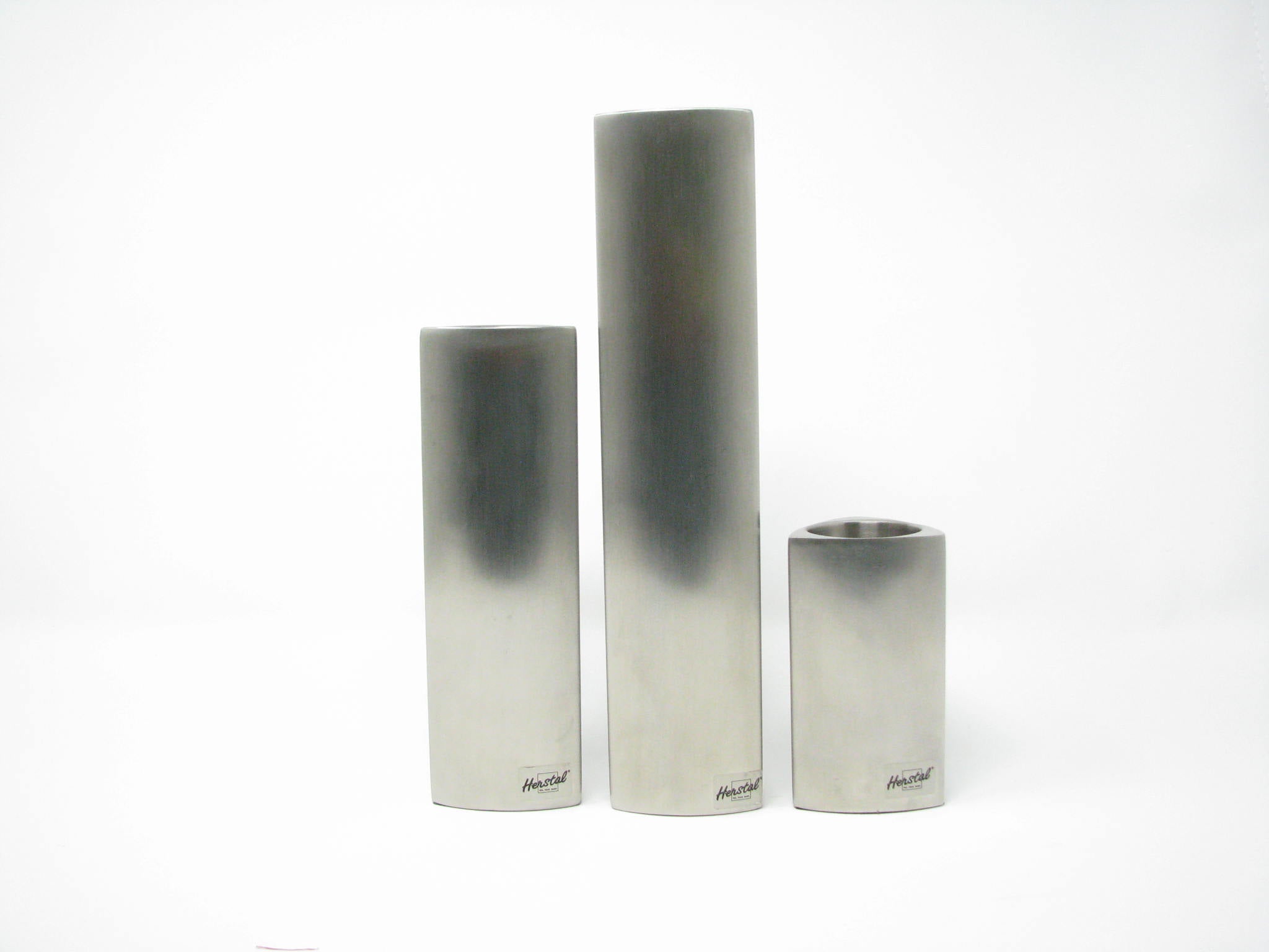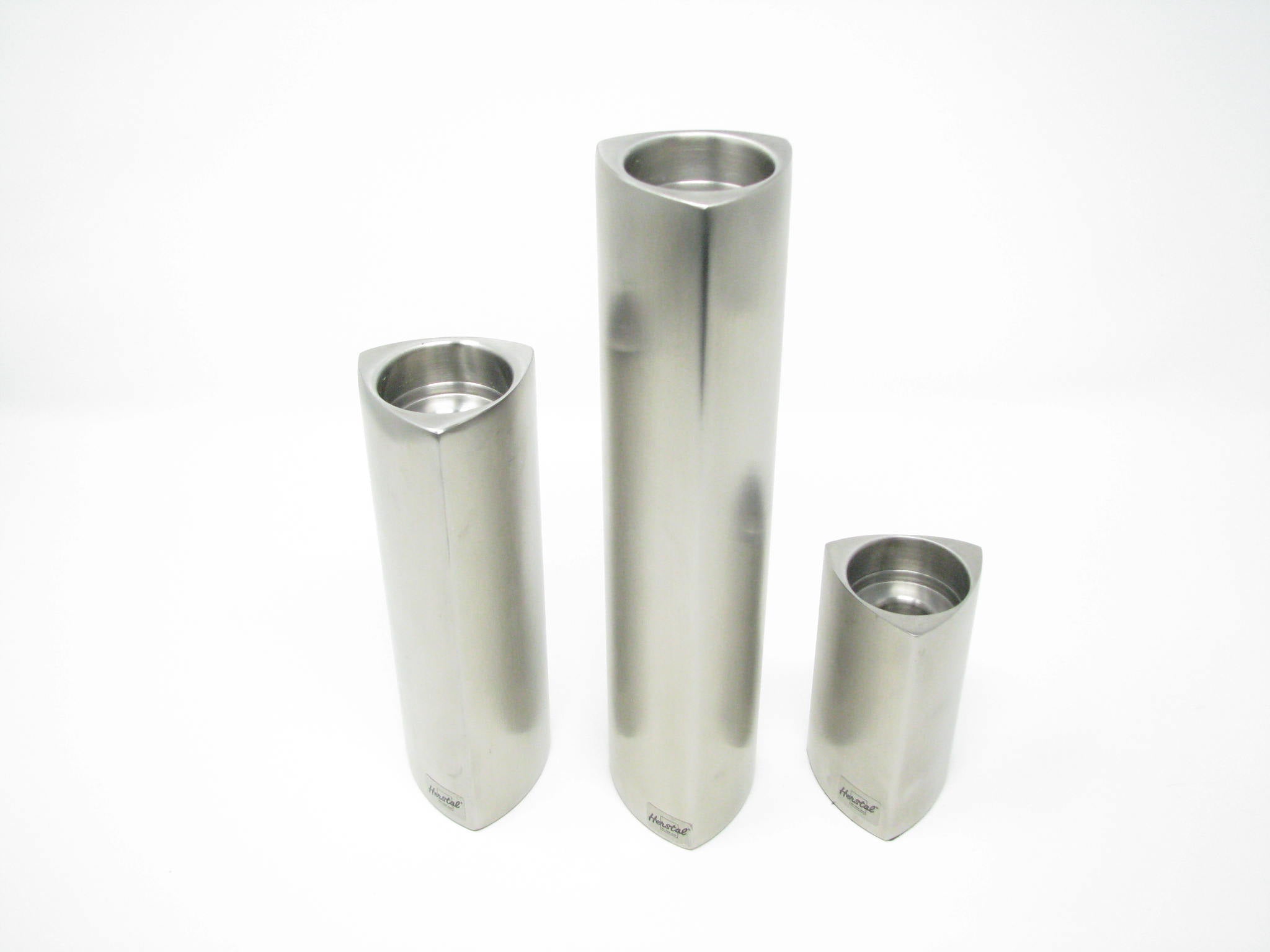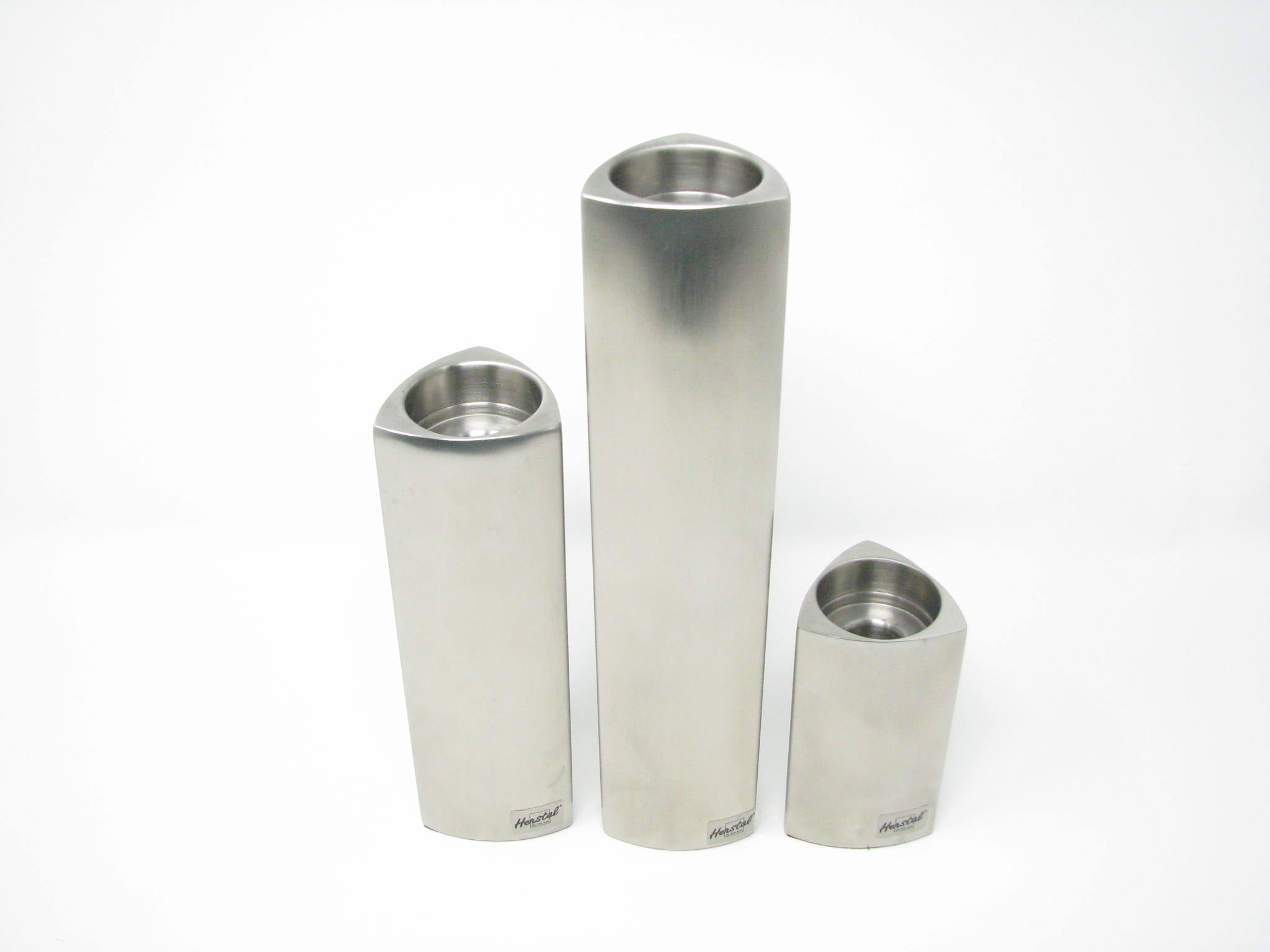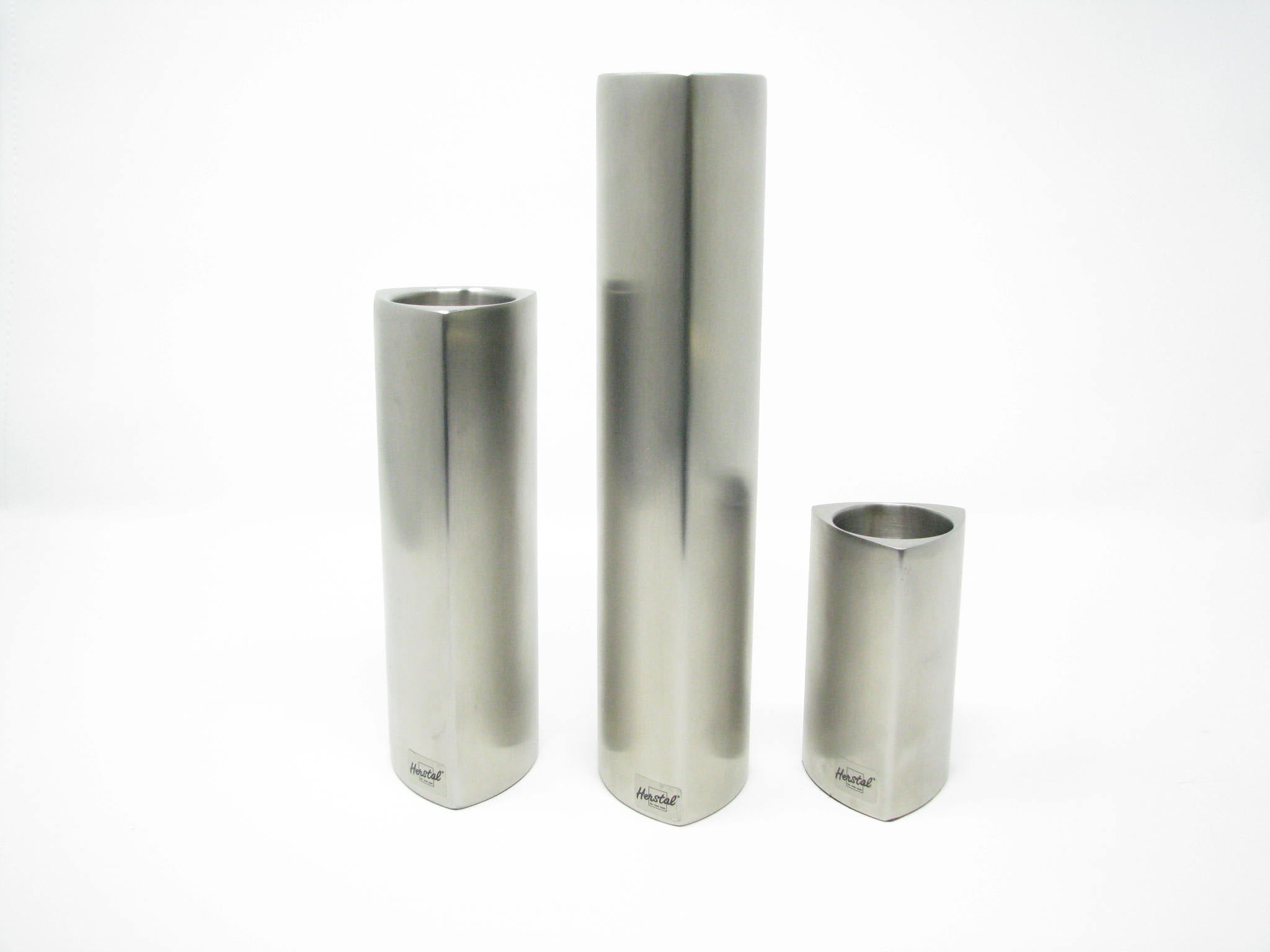 Vintage set of 3 brushed stainless steel candle / tealight holders by Herstal of Denmark.