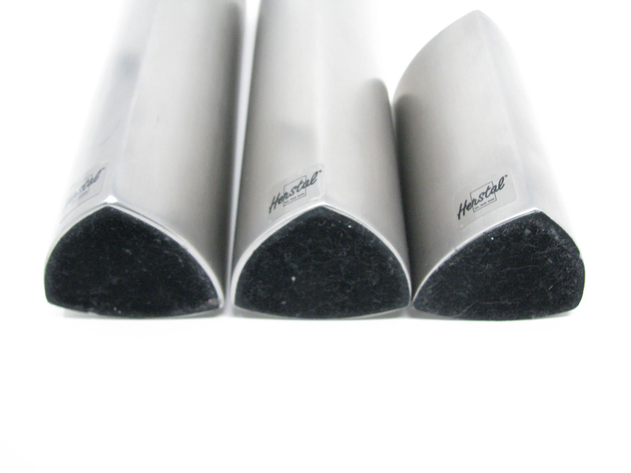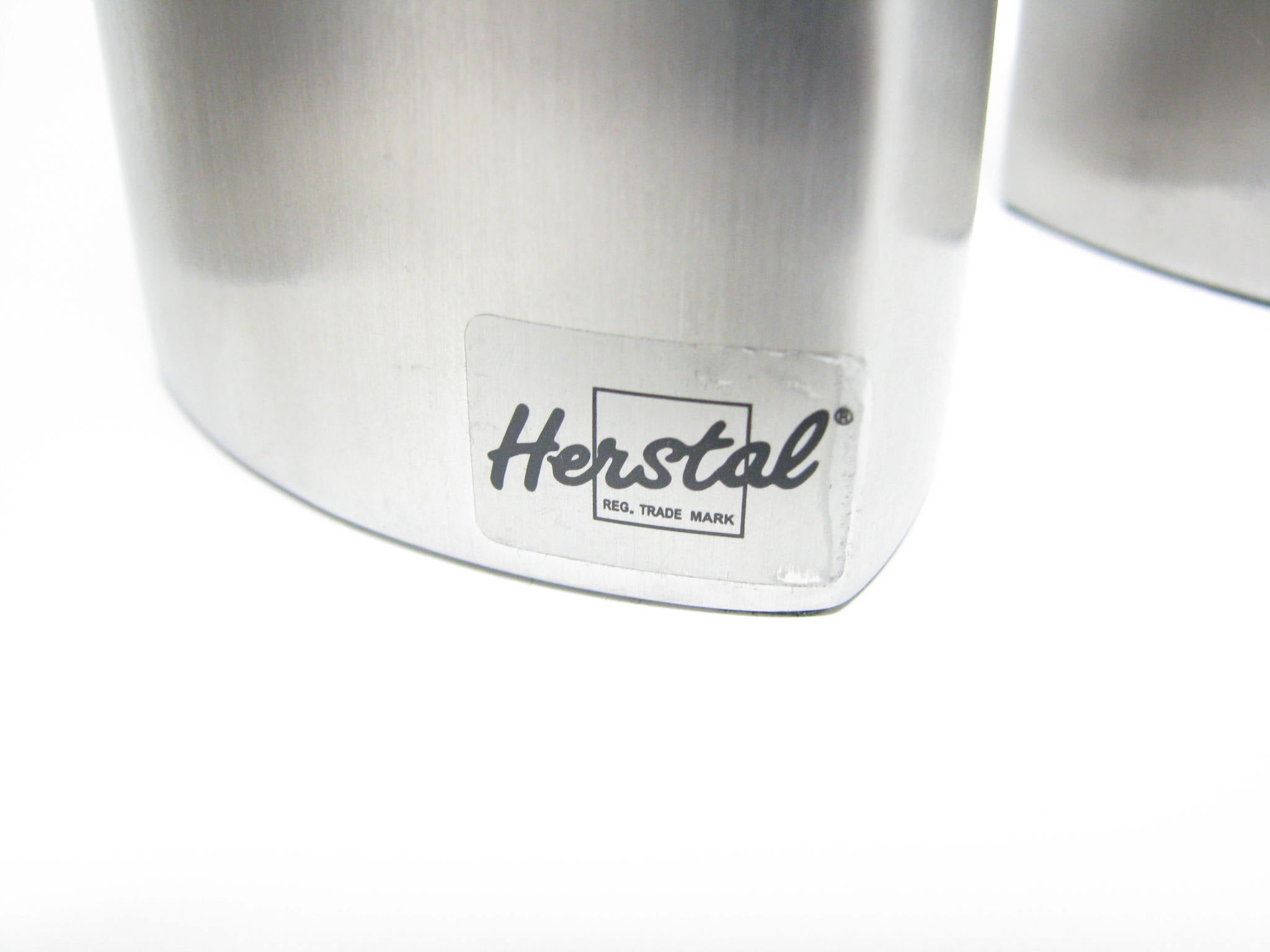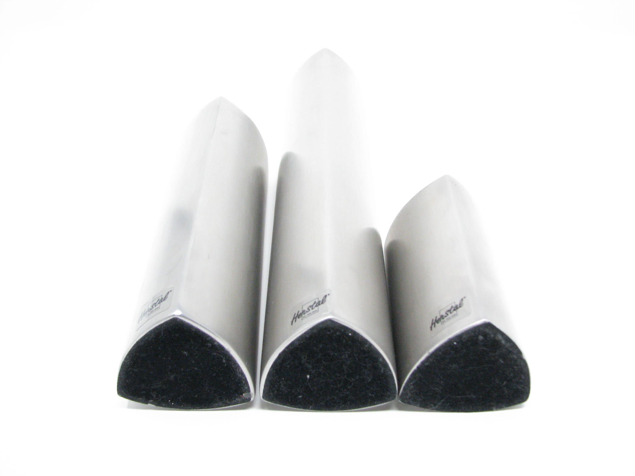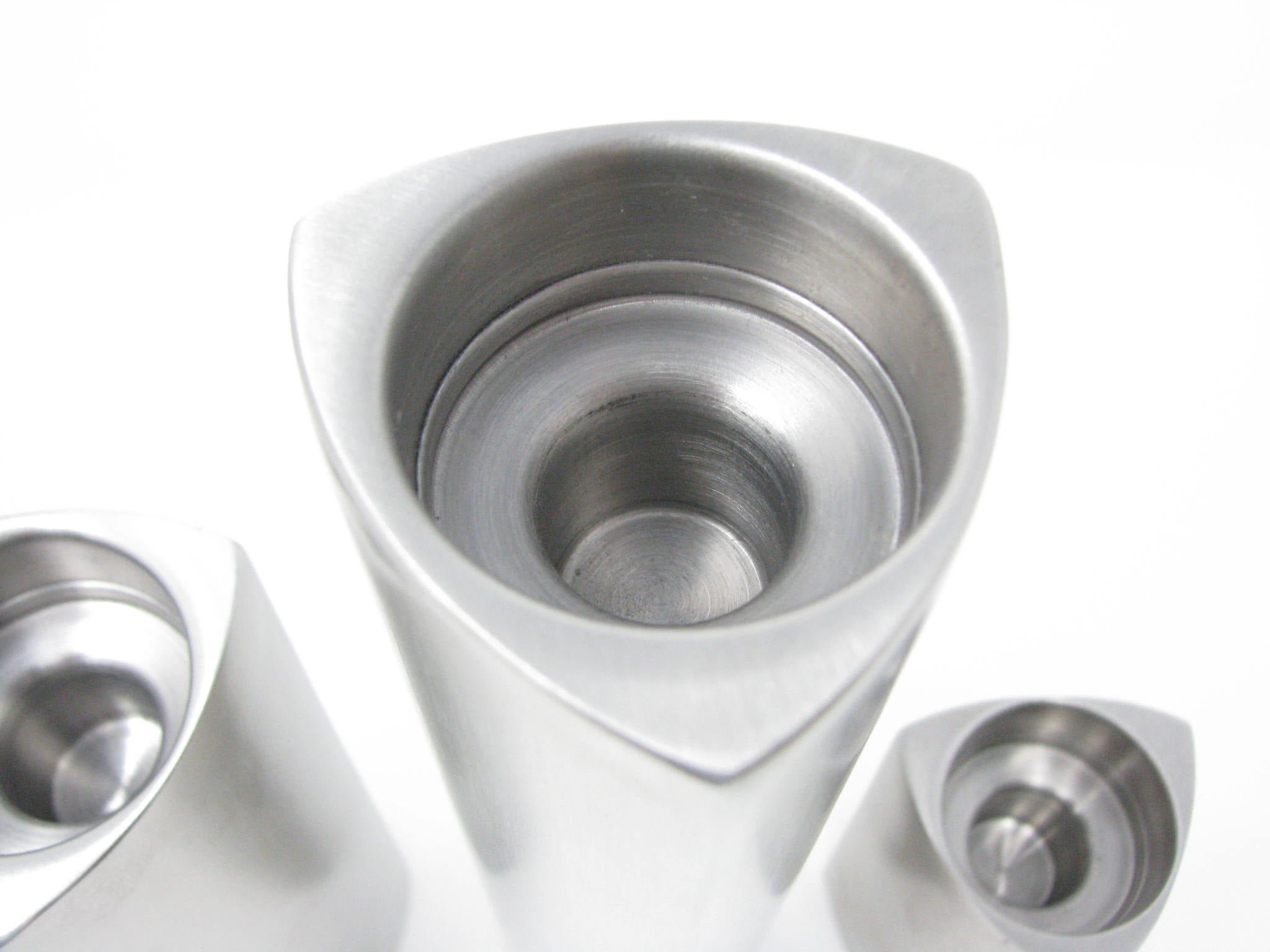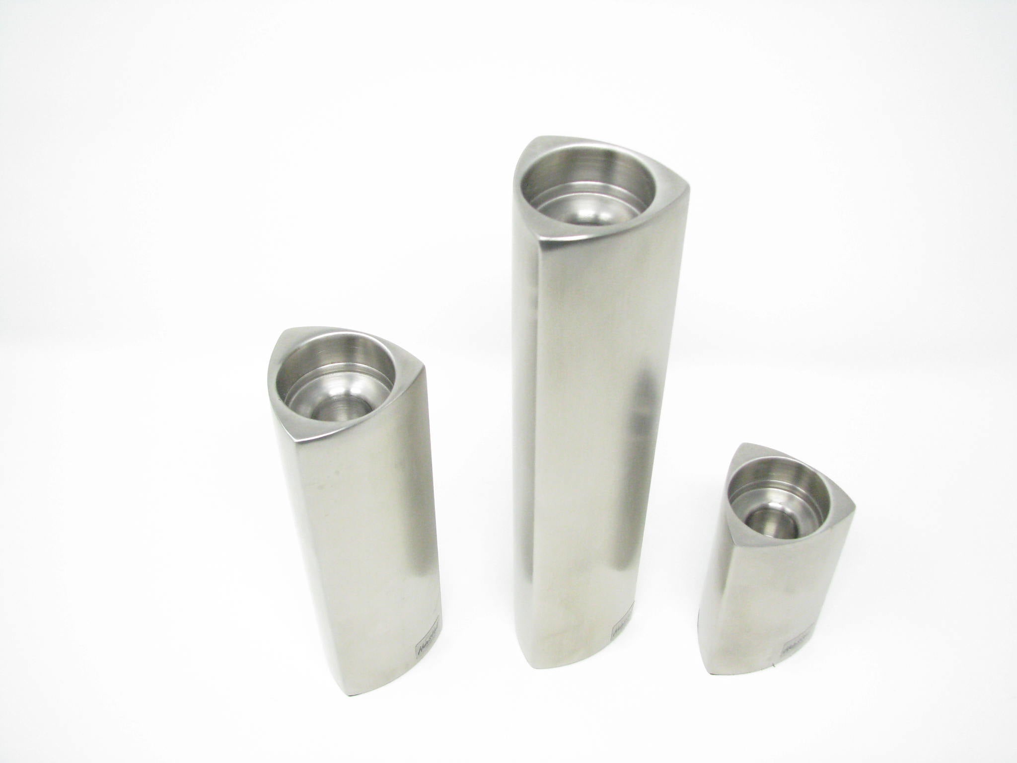 Vintage set of 3 brushed stainless steel candle / tealight holders by Herstal of Denmark.