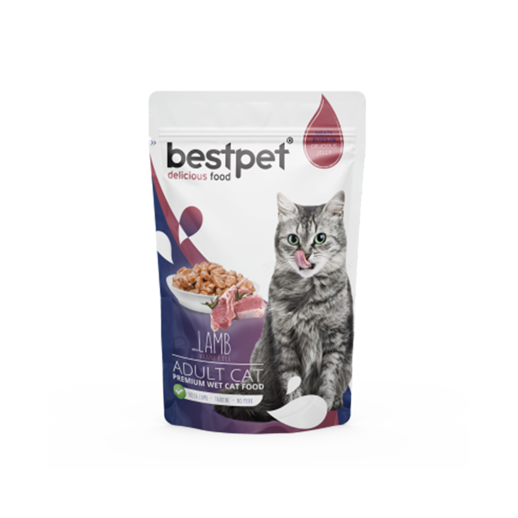 Grain-free wet food with lamb pieces in jelly that will enchant cats. Your cat will first lick the jelly without looking up, and then eat the grains one by one with appetite and pleasure. Suitable for all cats 1 year and older.