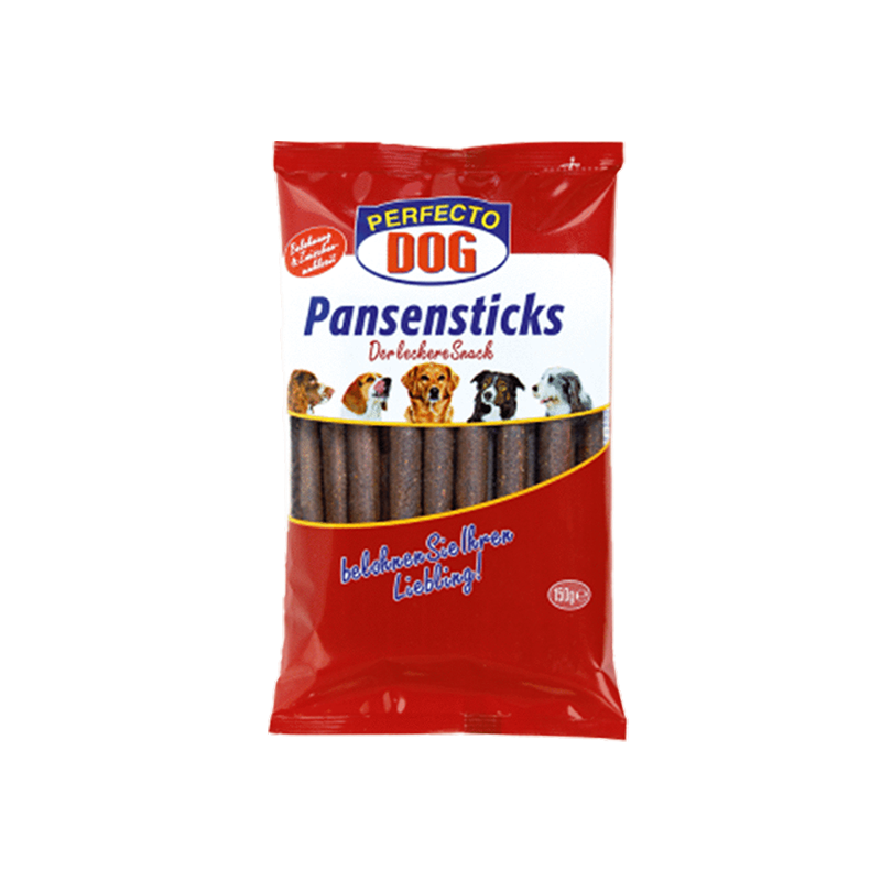 Supplementary feed for adult dogs. Your dog will love the small snack in stick form with rumen! The Perfecto rumen sticks are great as a small snack or as a reward while training and playing.