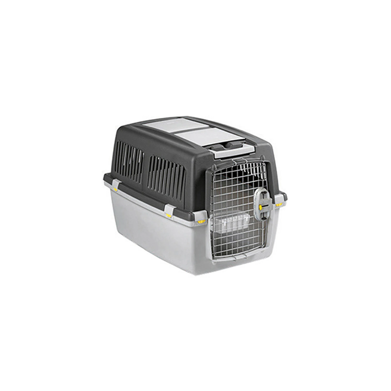 Practical pet carrier equipped with anti-push elements in the metal grille of the door on the rotation side, a lateral bolt on the closing side and a safety fixing kit, to allow the complete safe transport of your pet. Built according to IATA regulations. The 4-wheel set completes the product.