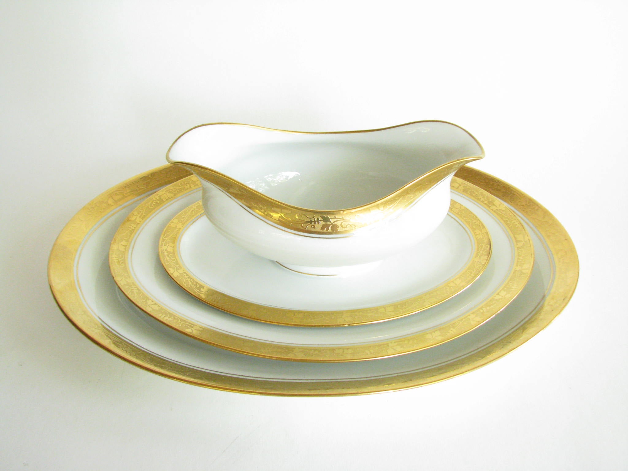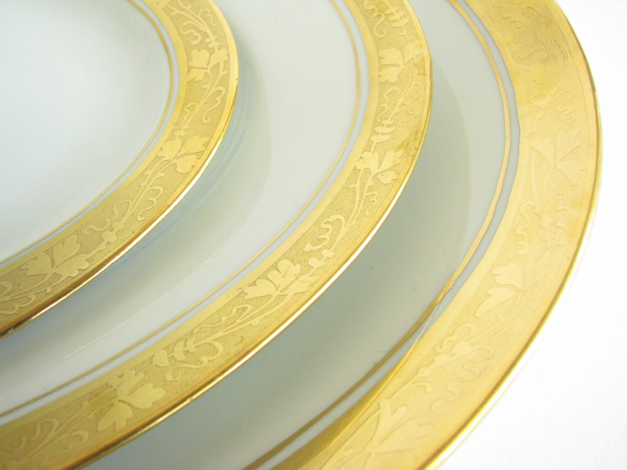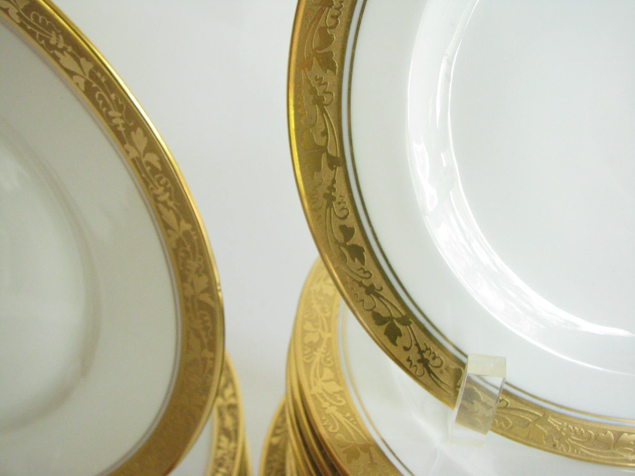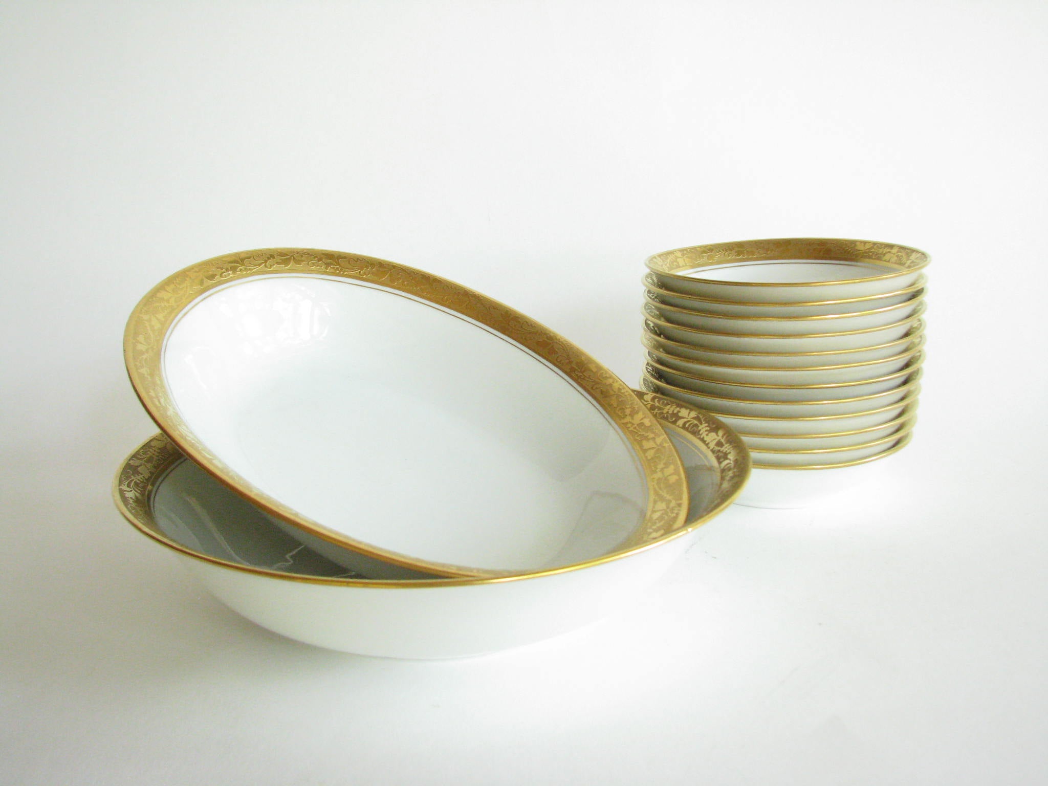 1990s Nancy Calhoun Coronado white ceramic rimmed bowls. Large in size with a fabulous finish.