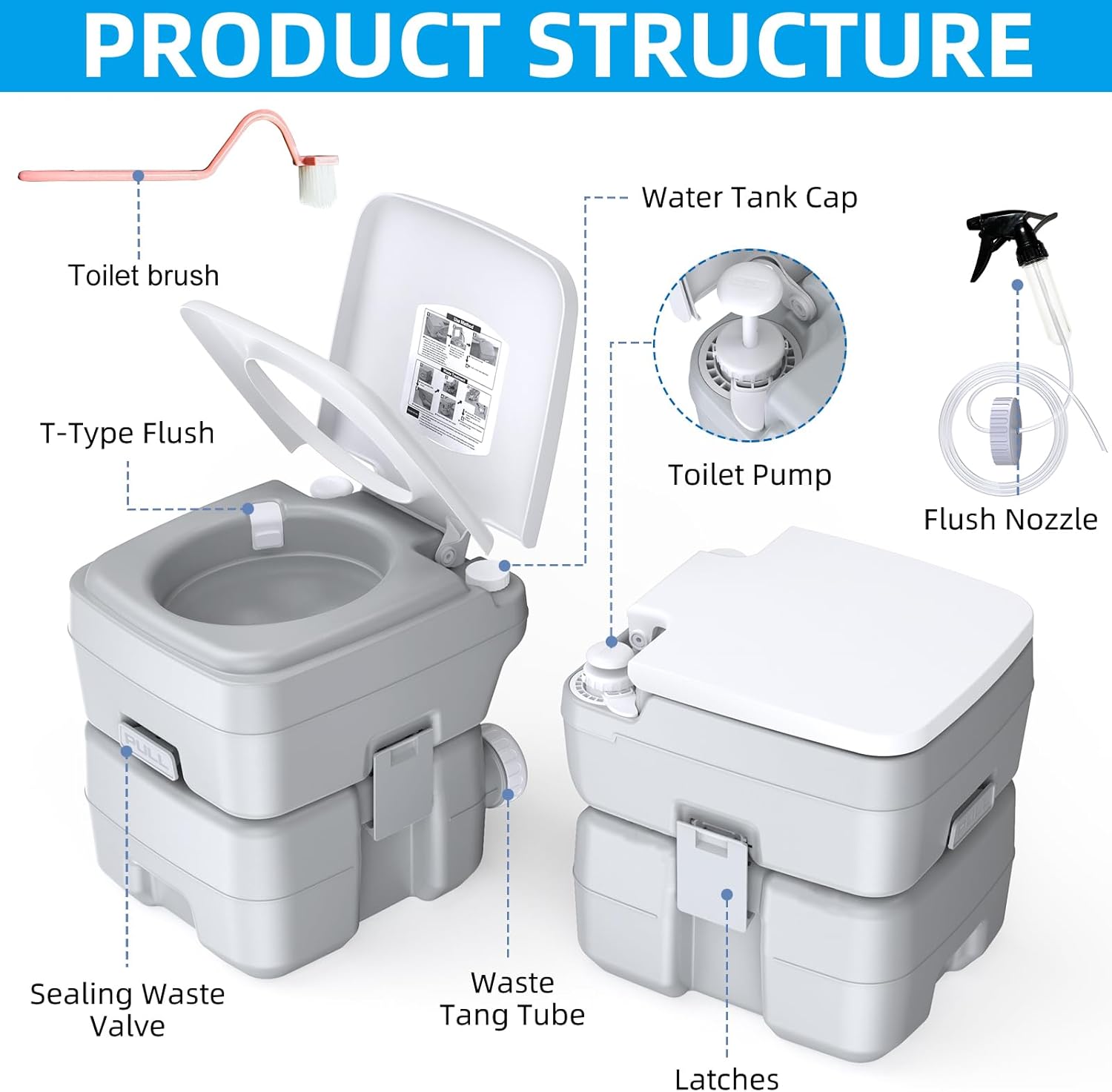 【Detachable Large Toilet】The whole dry flush toilet is detachable, very easy to carry