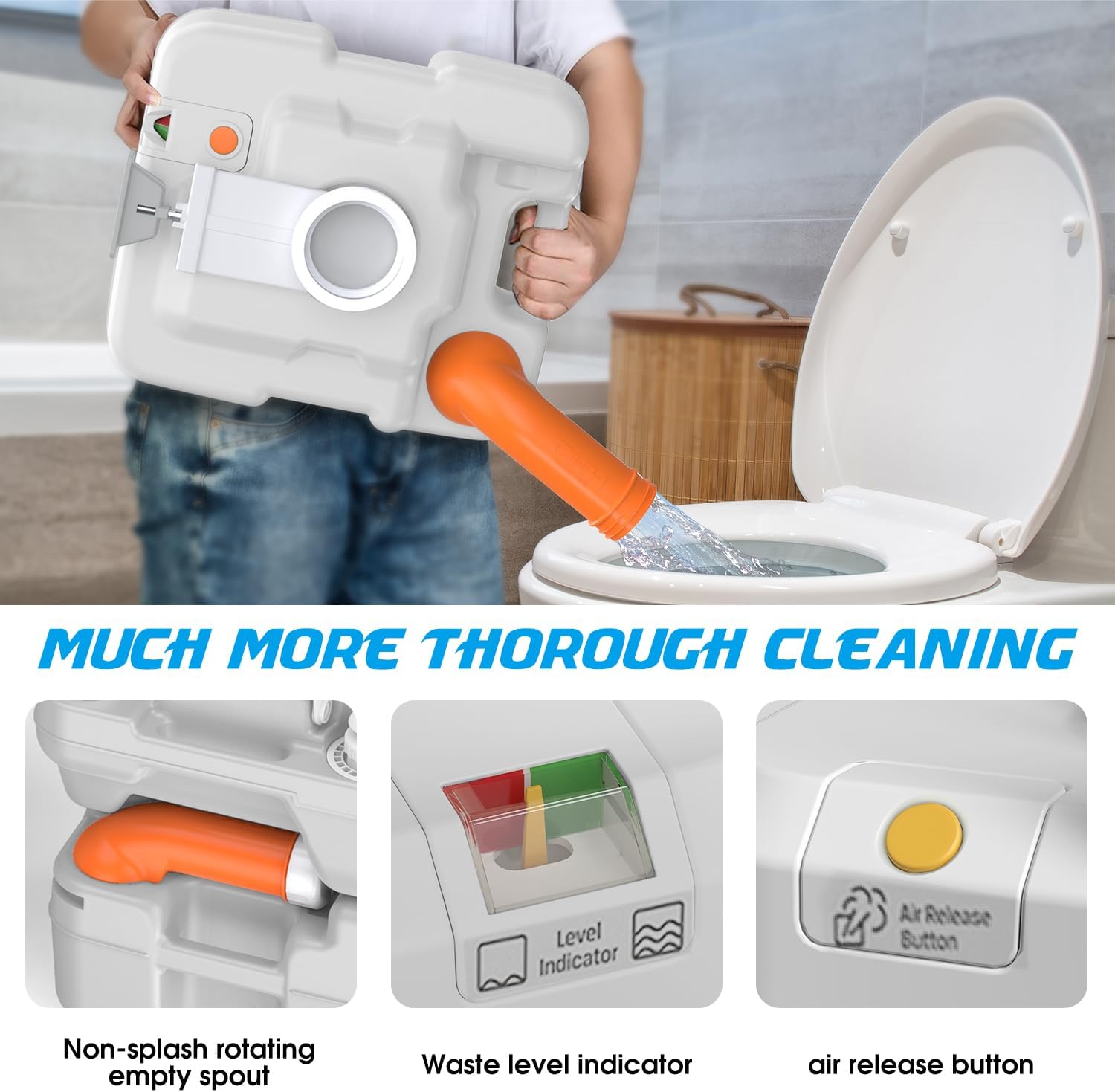 【Wash System】 T type full-coverage water outlets design makes camping portable toilet is easy to wash.