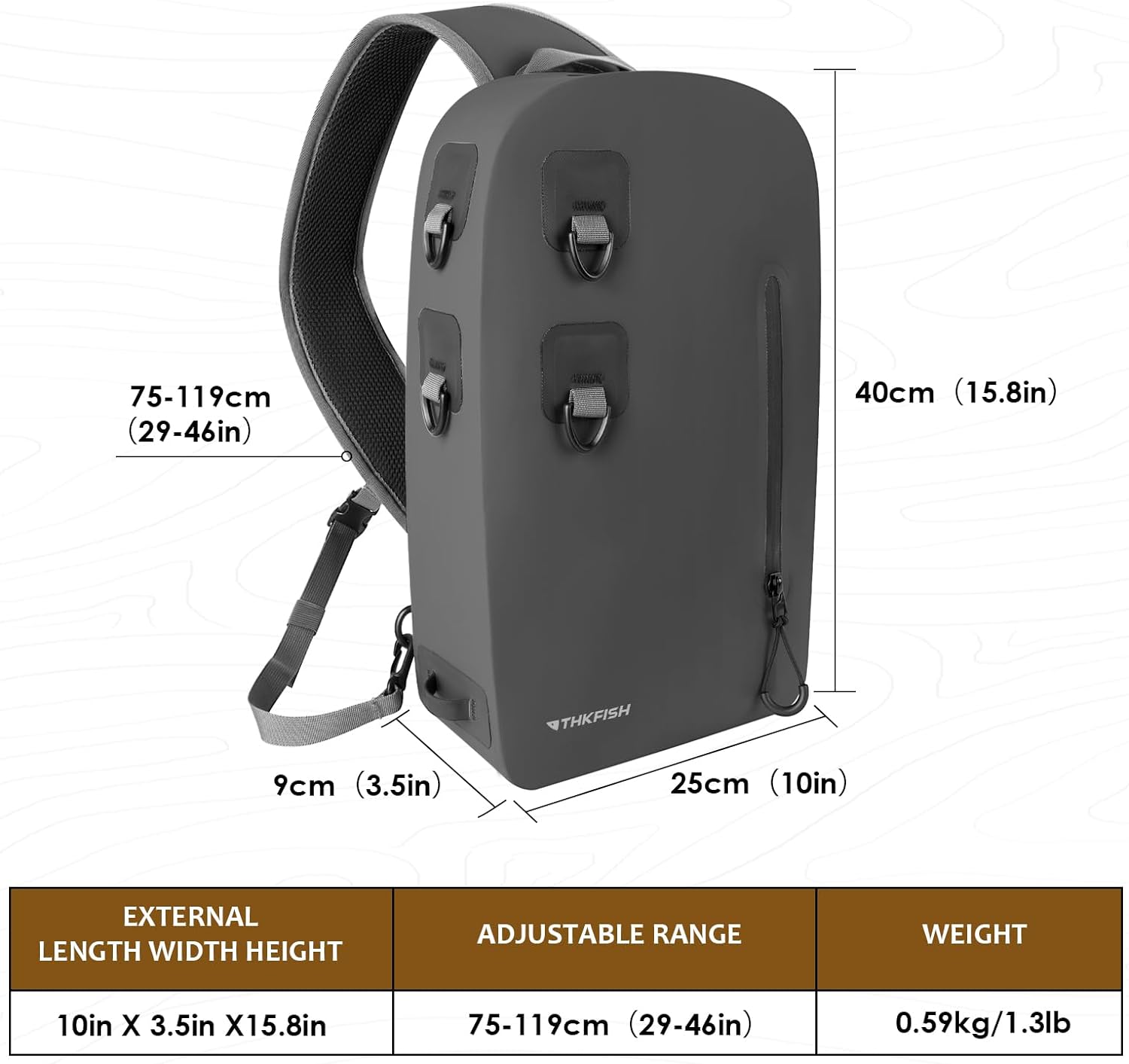 Large Capacity:Our fly fishing backpack waterproof can store your favorite fishing gear, such as bait and lure boxes, pliers, line, and other accessories.This fly fishing bag can hold up to 9L. Interior mesh pockets provide quick access to ID, credit cards, cash, phone or passport, and are guaranteed not to get wet in the rain. The waterproof zippered pocket on the back can't be submerged in water for long periods of time, so keep important items in the main compartment pocket.