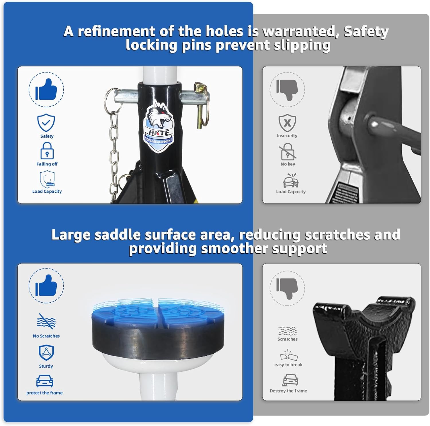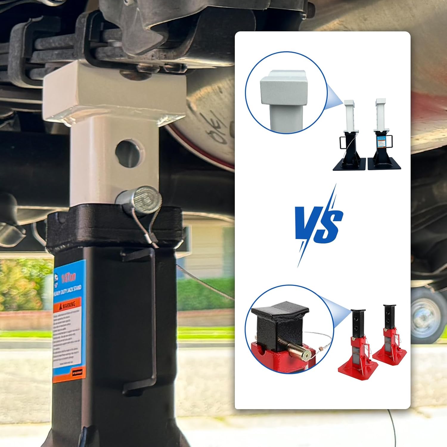 Pin-Style Safety: The reliable pin-style mechanism combined with a heavy-gauge extension tube prevents distortion and ensures secure placement under your vehicle.