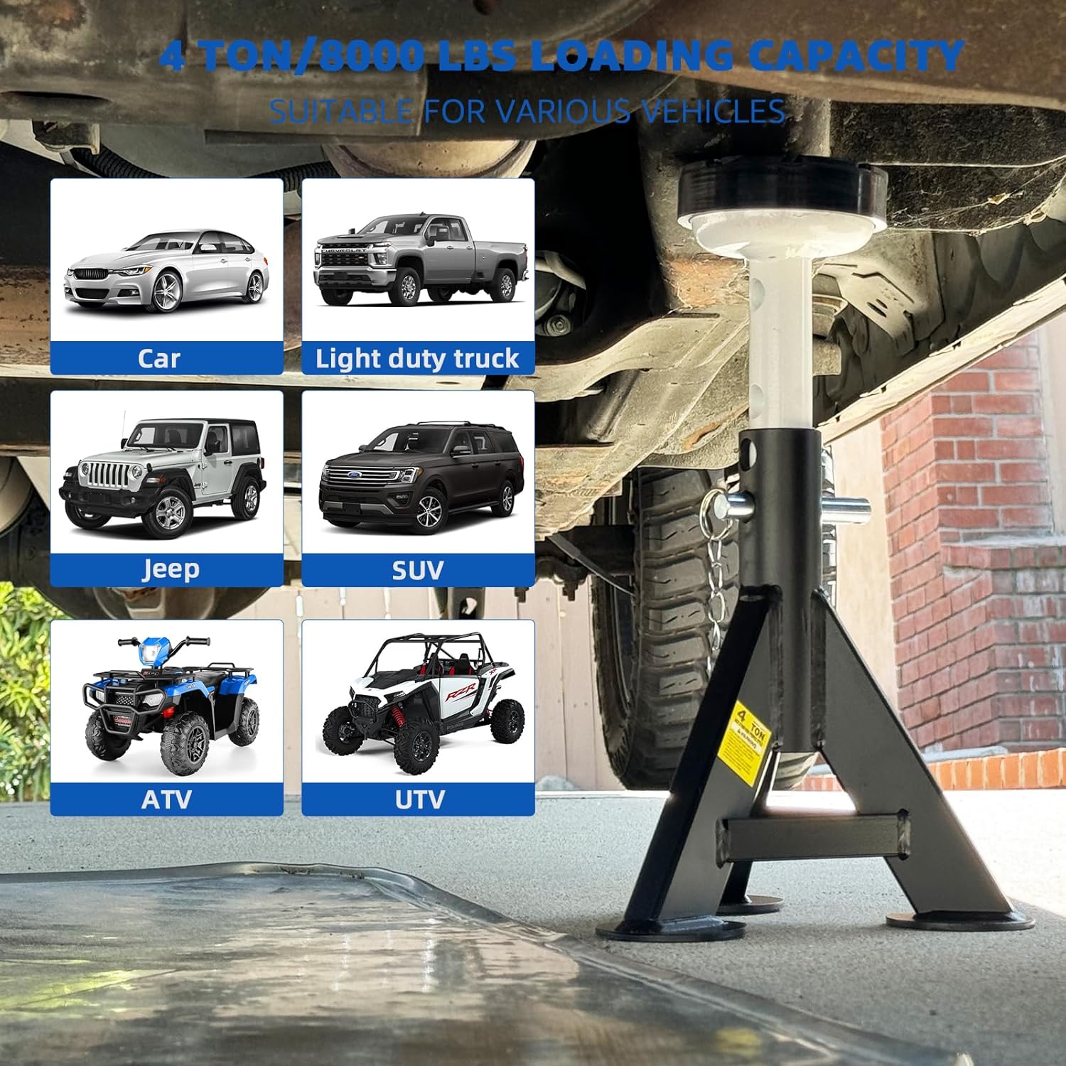 Durable Steel Construction: Built with sturdy welded steel, these jack stands ensure long-lasting performance and maximum safety.