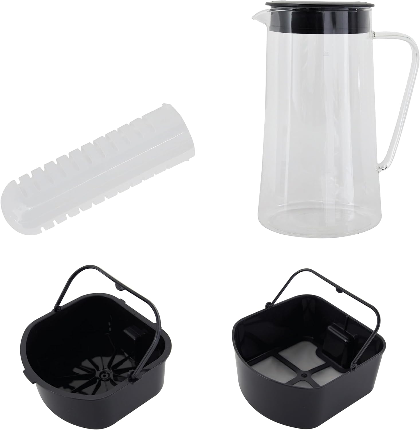 GLASS PITCHER: 2.75-quart glass pitcher makes enough coffee or tea to satisfy everyone and comes with a brew-through lid for storage