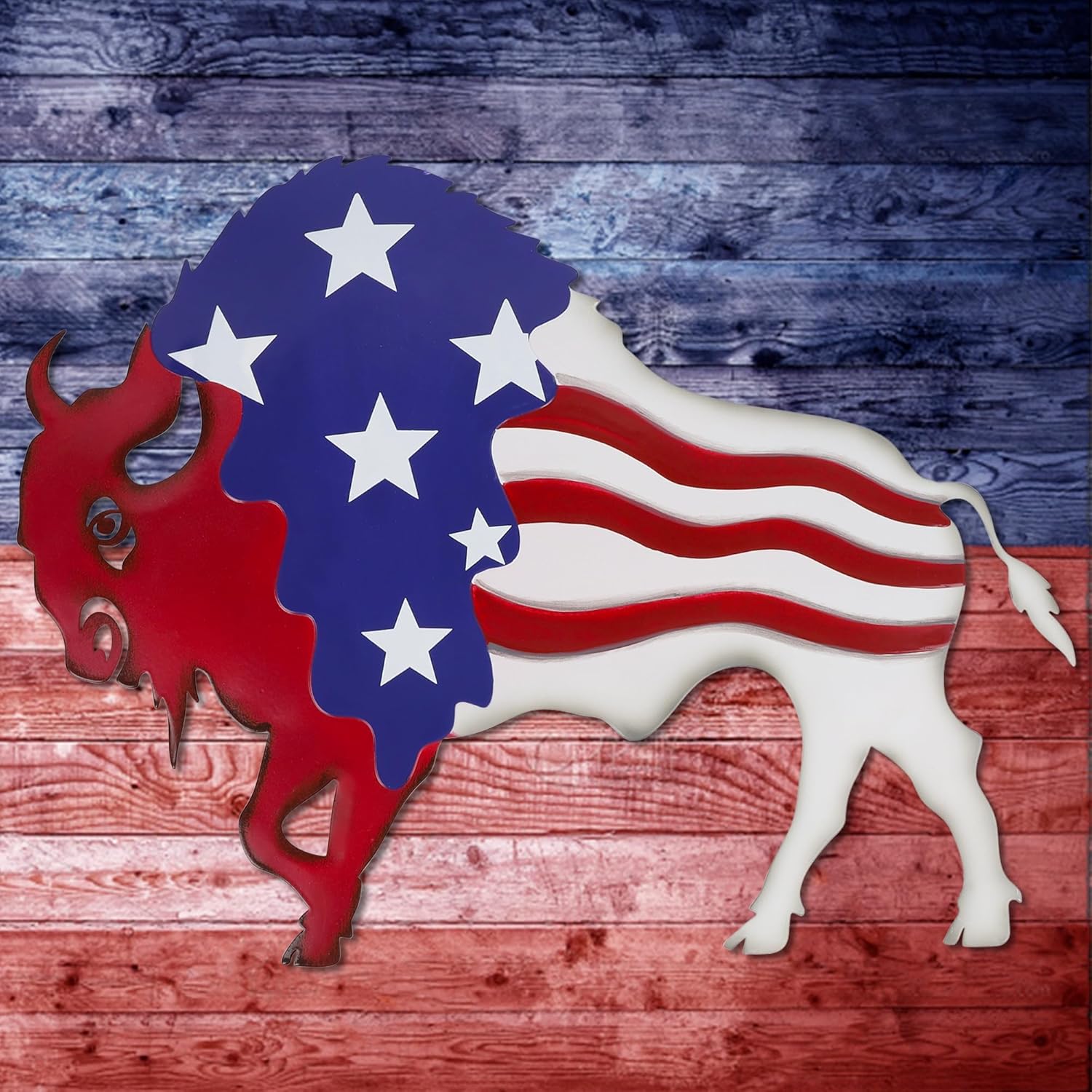 Wall Art Metal American Bison Wall Decor, Independence Day American Flag Decor for Indoor Outdoor Bedroom Office (12.6" x 17")