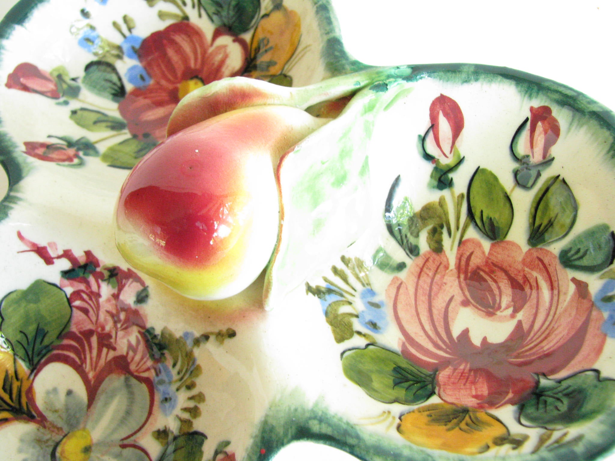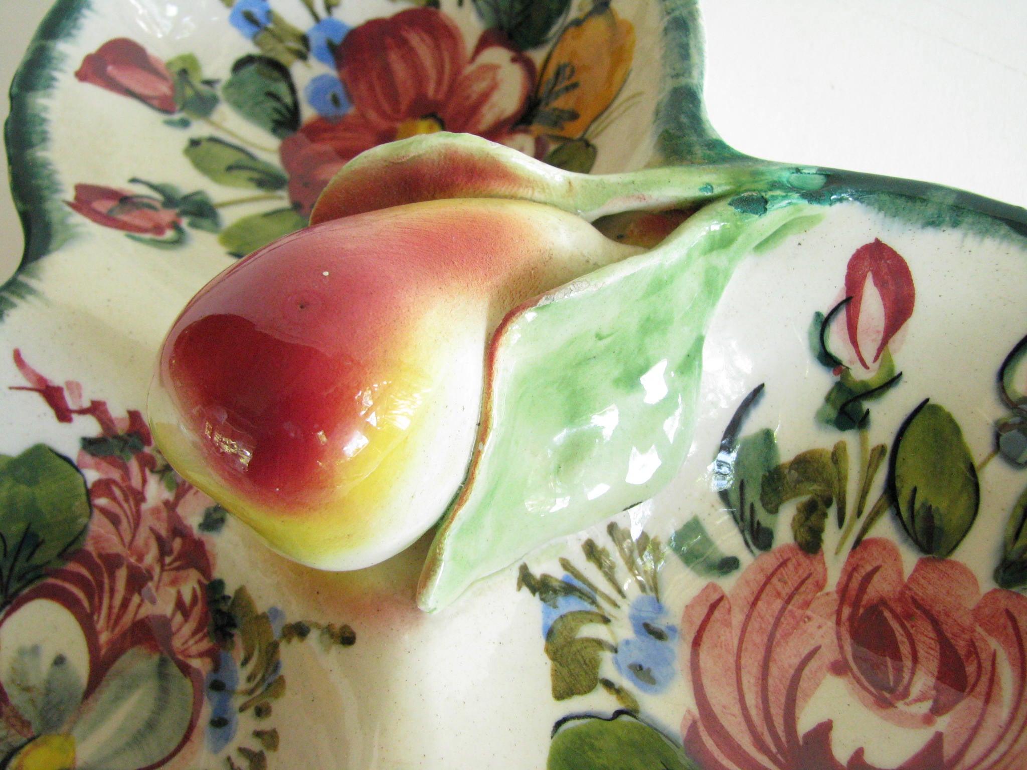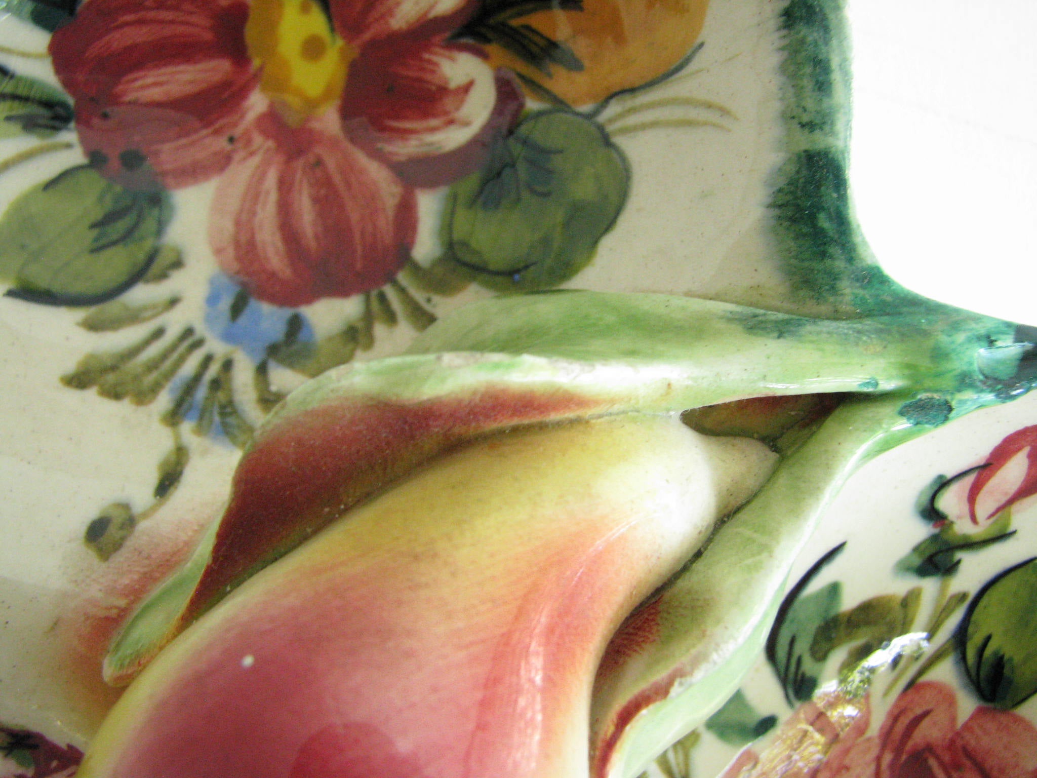 Unique vintage metal cornucopia fruit basket /decorative basket painted yellow. Tomatoes not included. :)