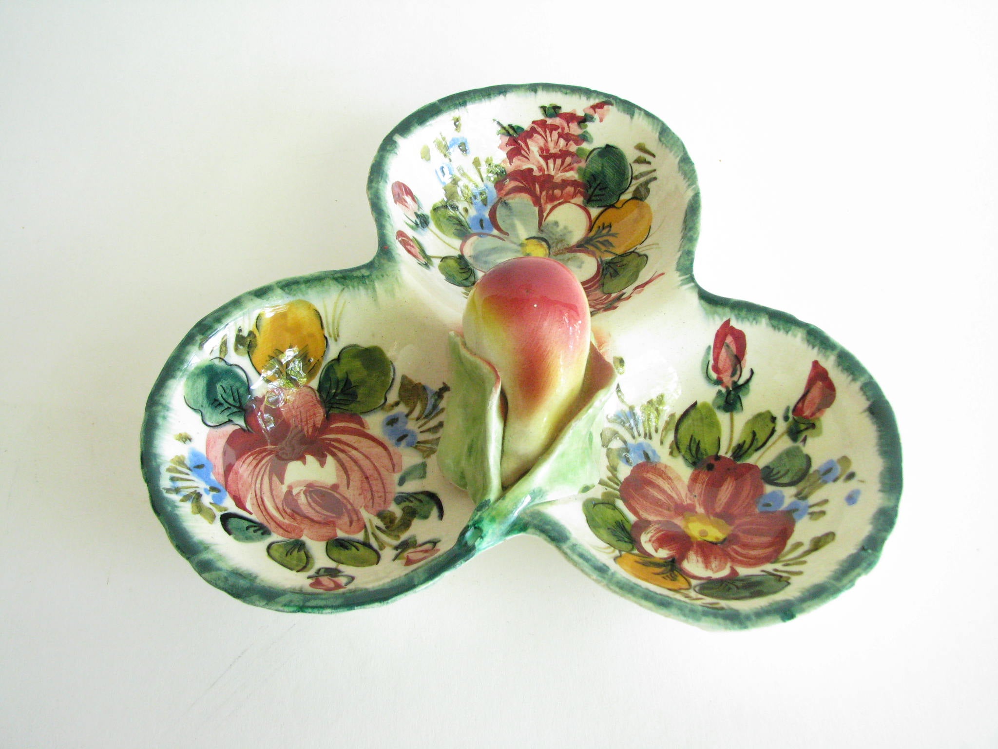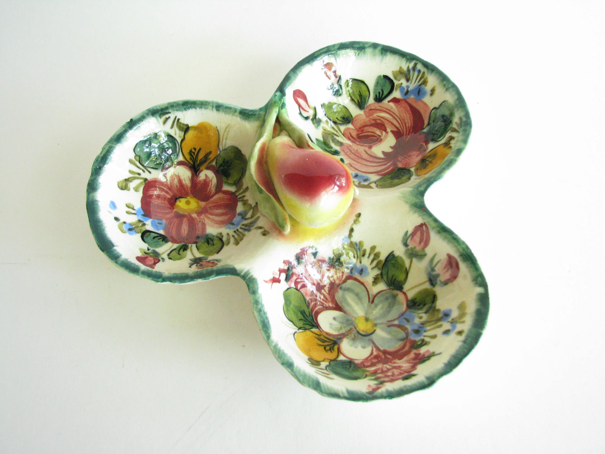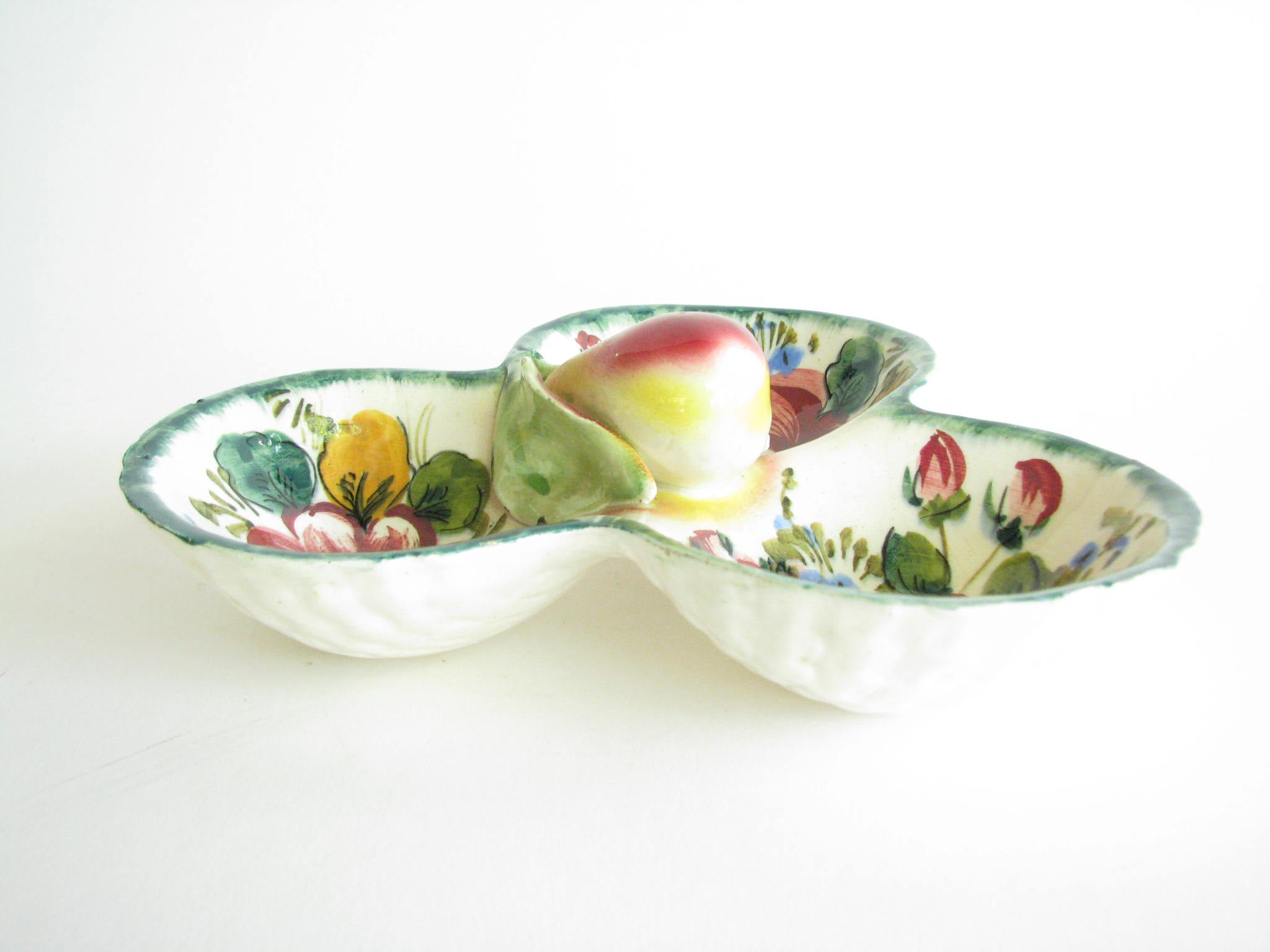 Unique vintage metal cornucopia fruit basket /decorative basket painted yellow. Tomatoes not included. :)